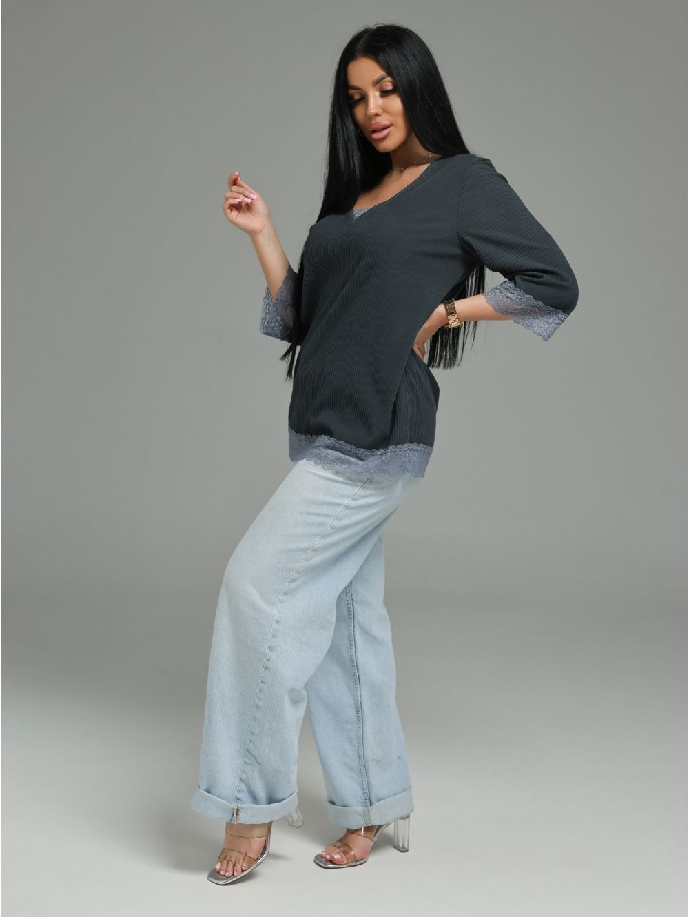 Женская футболка из кашемира «лапша» с кружевной отделкой.