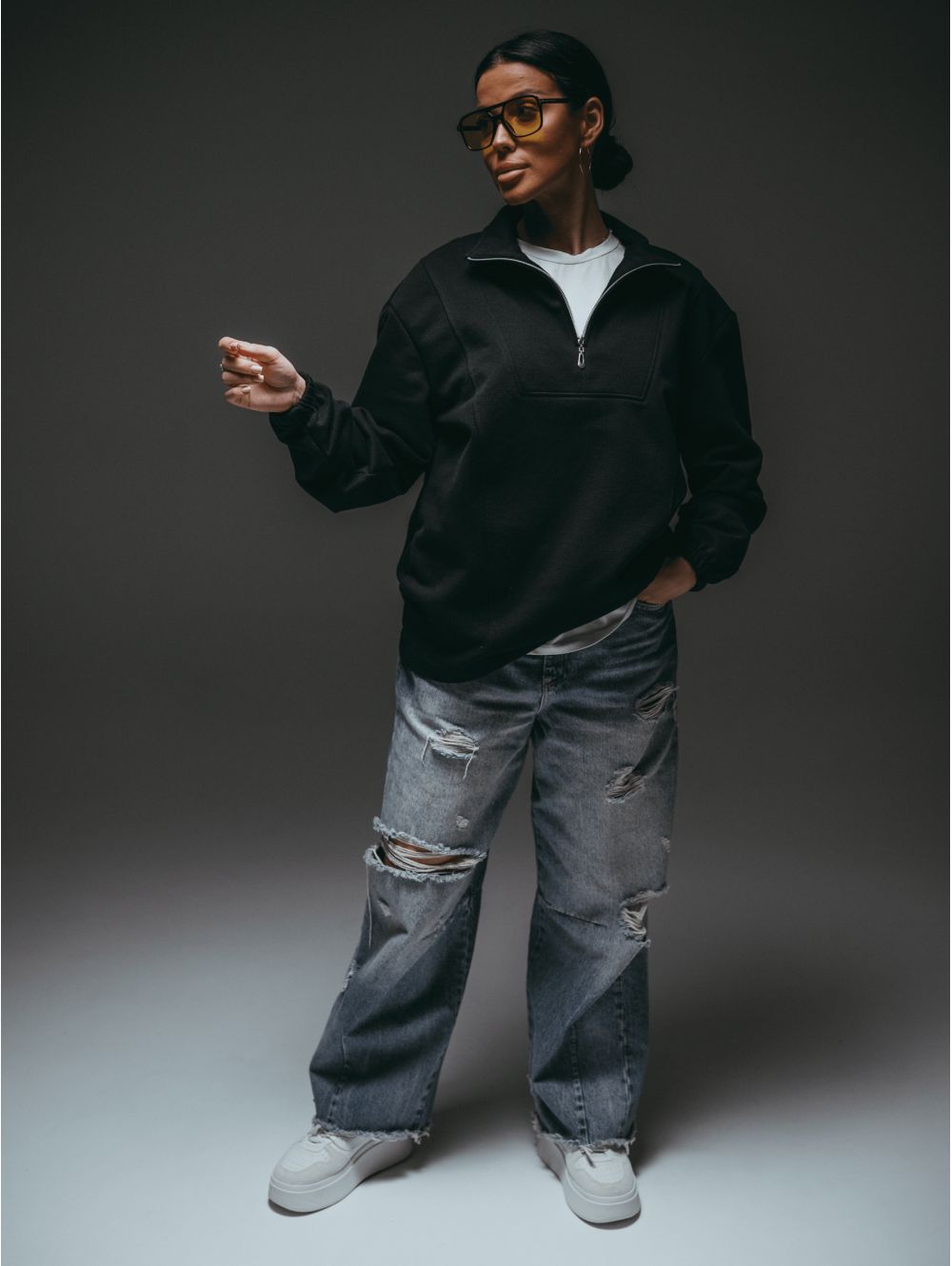 Свитшот женский с воротником стойкой на молнии — стильная и практичная модель для повседневных образов.