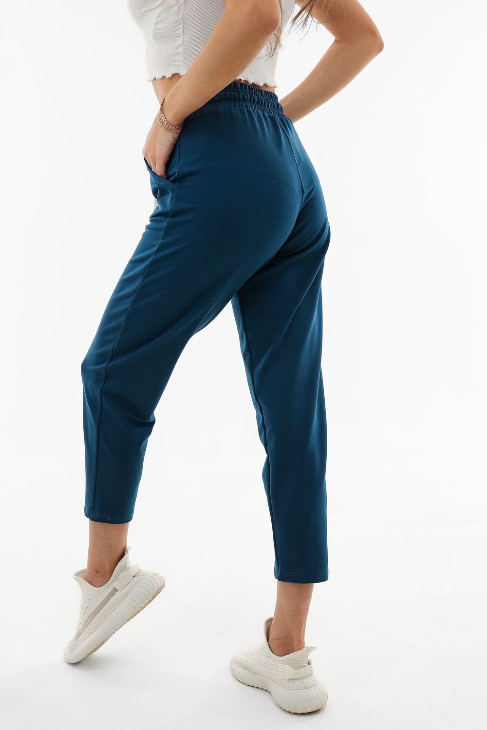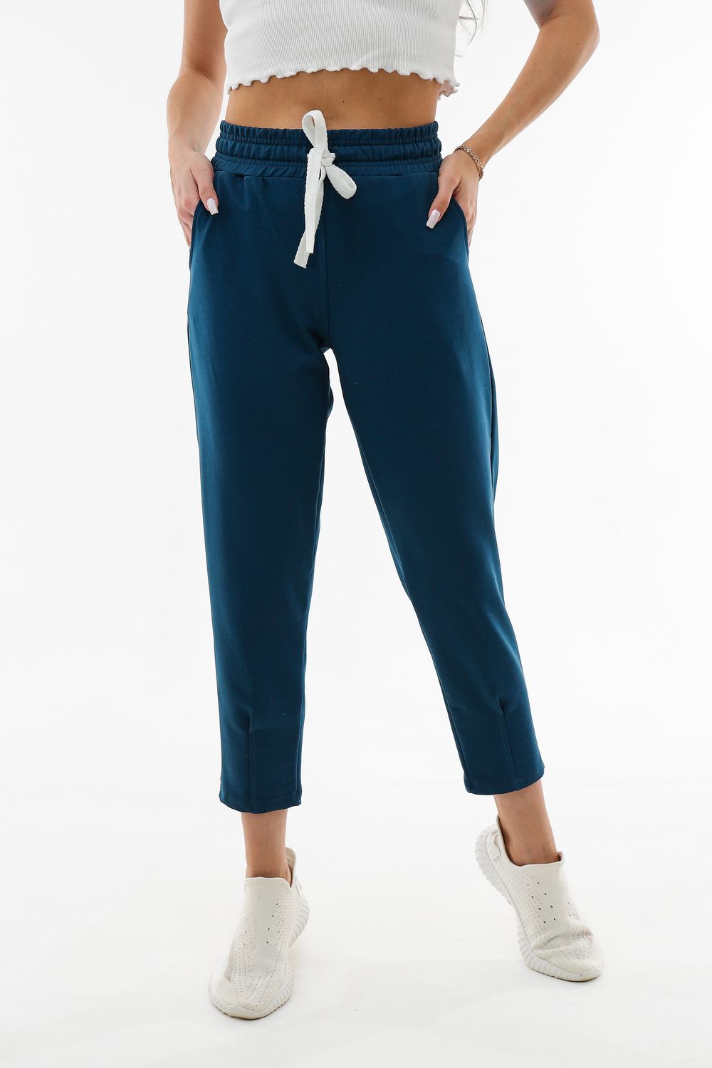 Moses. Брюки-трико (2-х нитка) женские 3/4 трикотажные. В данной модели имеется два функциональных кармана, пояс на резинке с регулируемым шнурком. Отлично подходят для повседневной носки, спорта и отдыха.