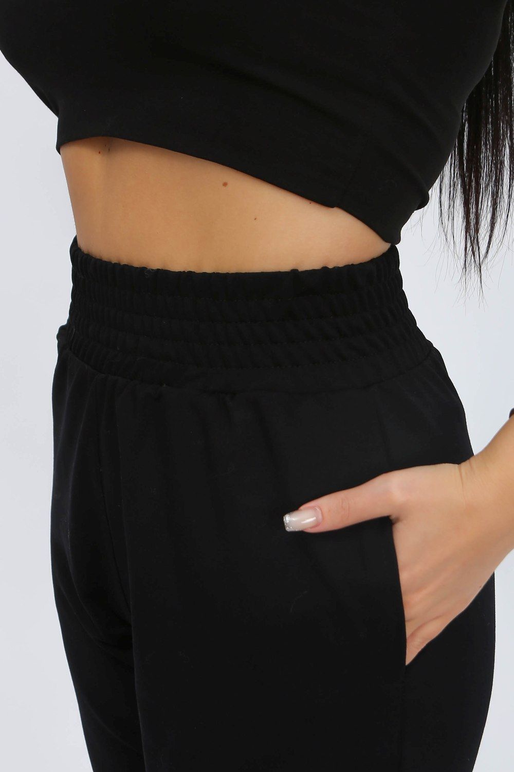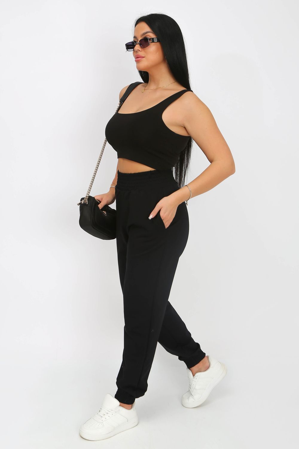 Брюки женские спортивные трикотажные, с высокой посадкой на резинке, по бокам карманы с отрезным бочкам, низ также на резинке. Отличная посадка, хорошо подойдут высоким и невысоким девушкам. Базовая модель подойдет спорта, для дома, для отдыха. Ткань 2-х нитка компакт пенье. Рост модели на фото 160 см, размер 44