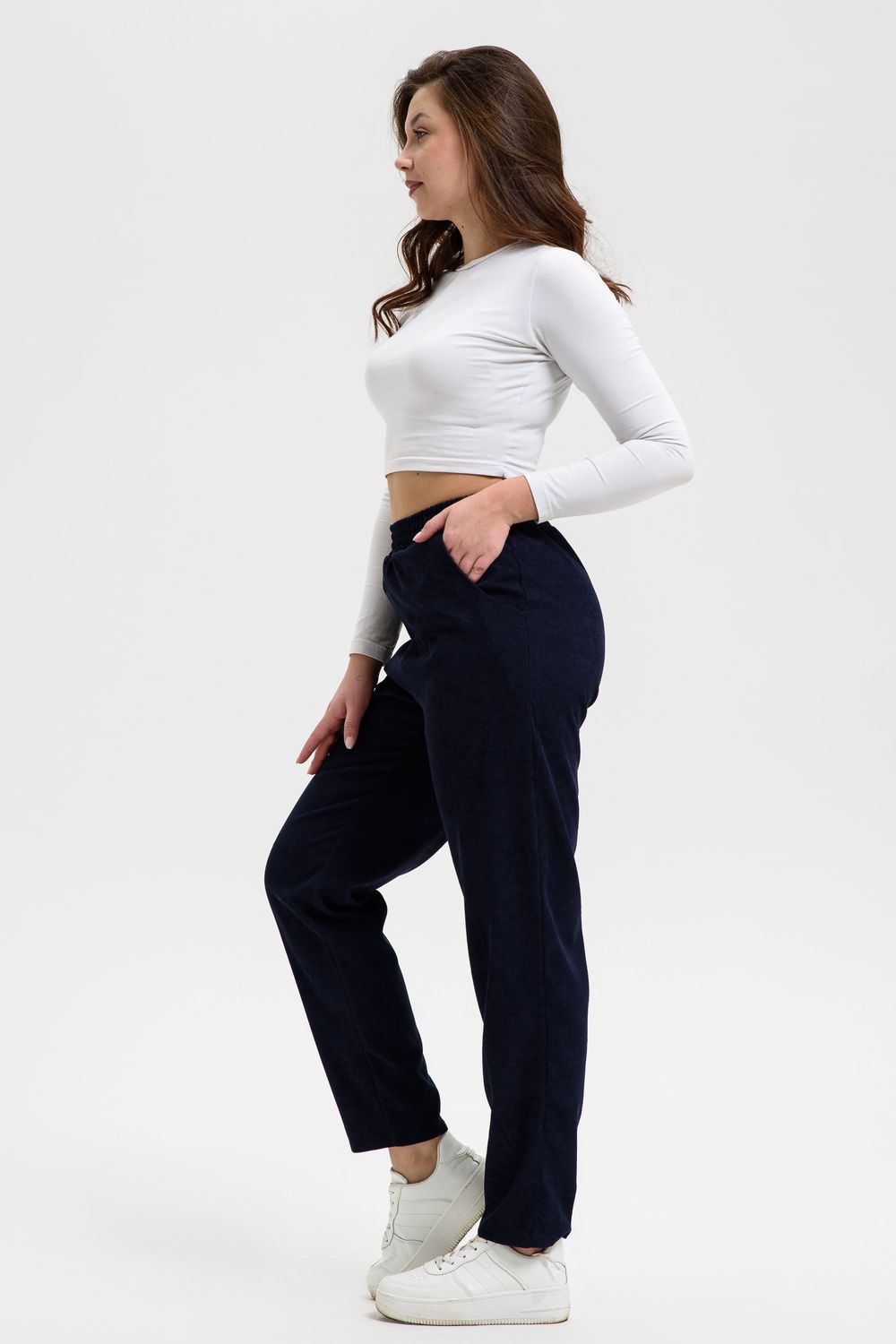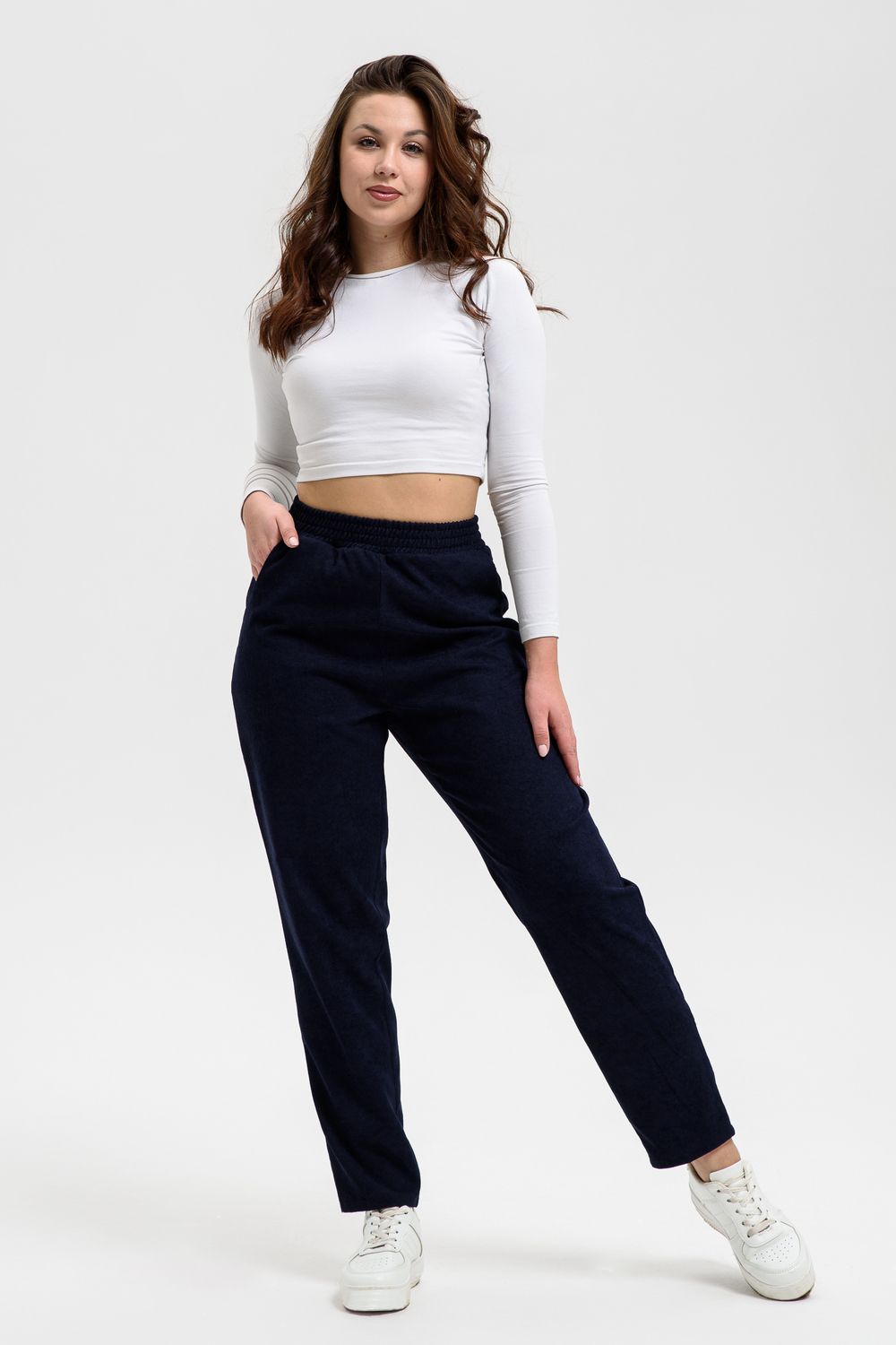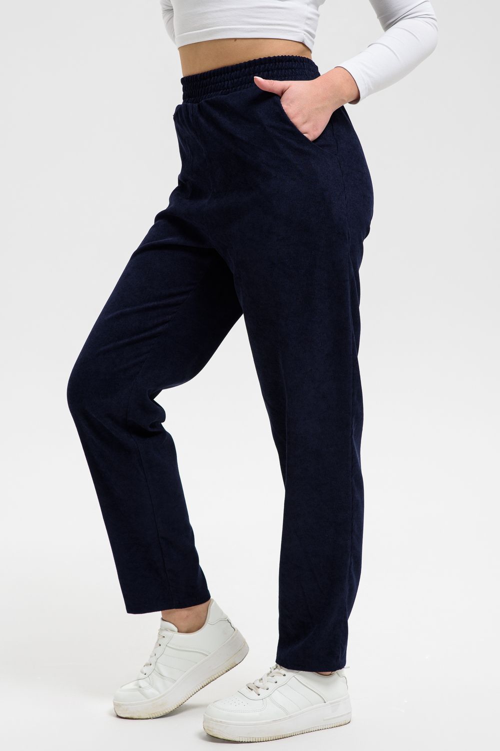 Удобные повседневные брюки из микровельвета на все случаи жизни станут приятным дополнением к вашему осеннему гардеробу. Высокая посадка и широкая резинка на поясе обеспечит комфорт при носке. Брюки не мнутся, хорошо смотрятся и со спортивной обувью, и с демисезонными полусапожками. По бокам внутренние карманы, полноценная длина, обхват талии в размерной сетке соответствует длине резинки в растянутом виде.