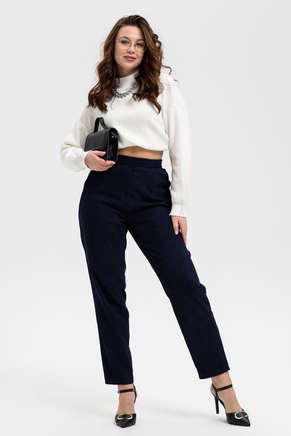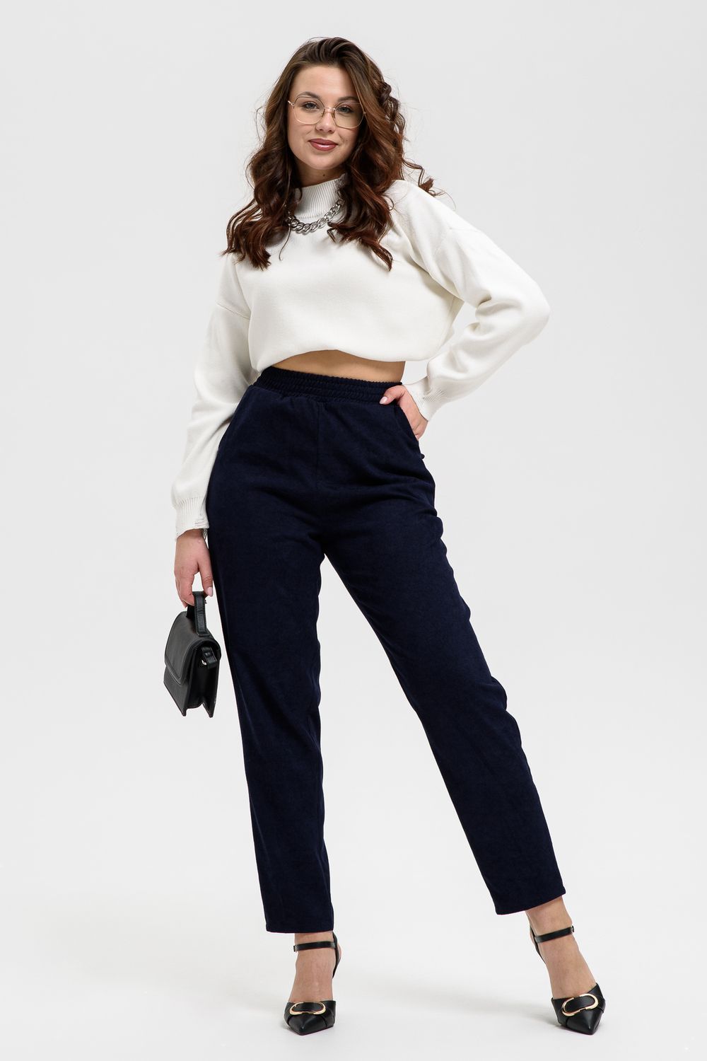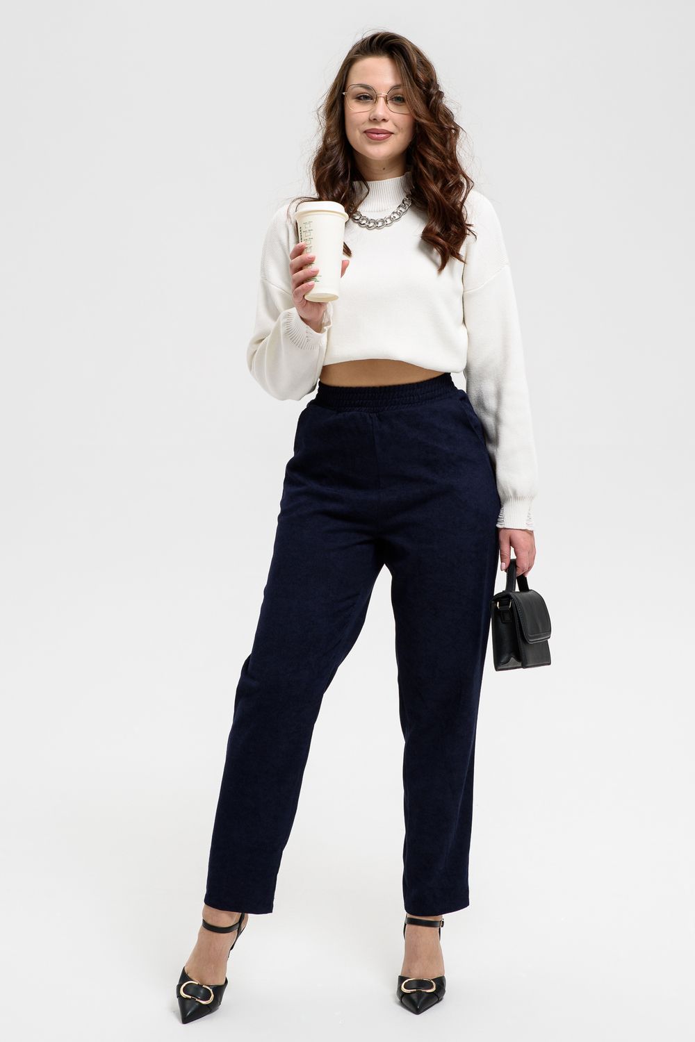 Удобные повседневные брюки из микровельвета на все случаи жизни станут приятным дополнением к вашему осеннему гардеробу. Высокая посадка и широкая резинка на поясе обеспечит комфорт при носке. Брюки не мнутся, хорошо смотрятся и со спортивной обувью, и с демисезонными полусапожками. По бокам внутренние карманы, полноценная длина, обхват талии в размерной сетке соответствует длине резинки в растянутом виде.