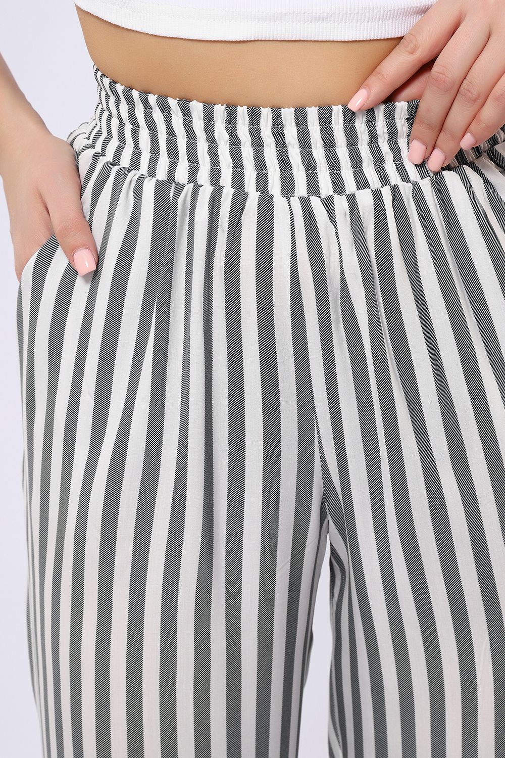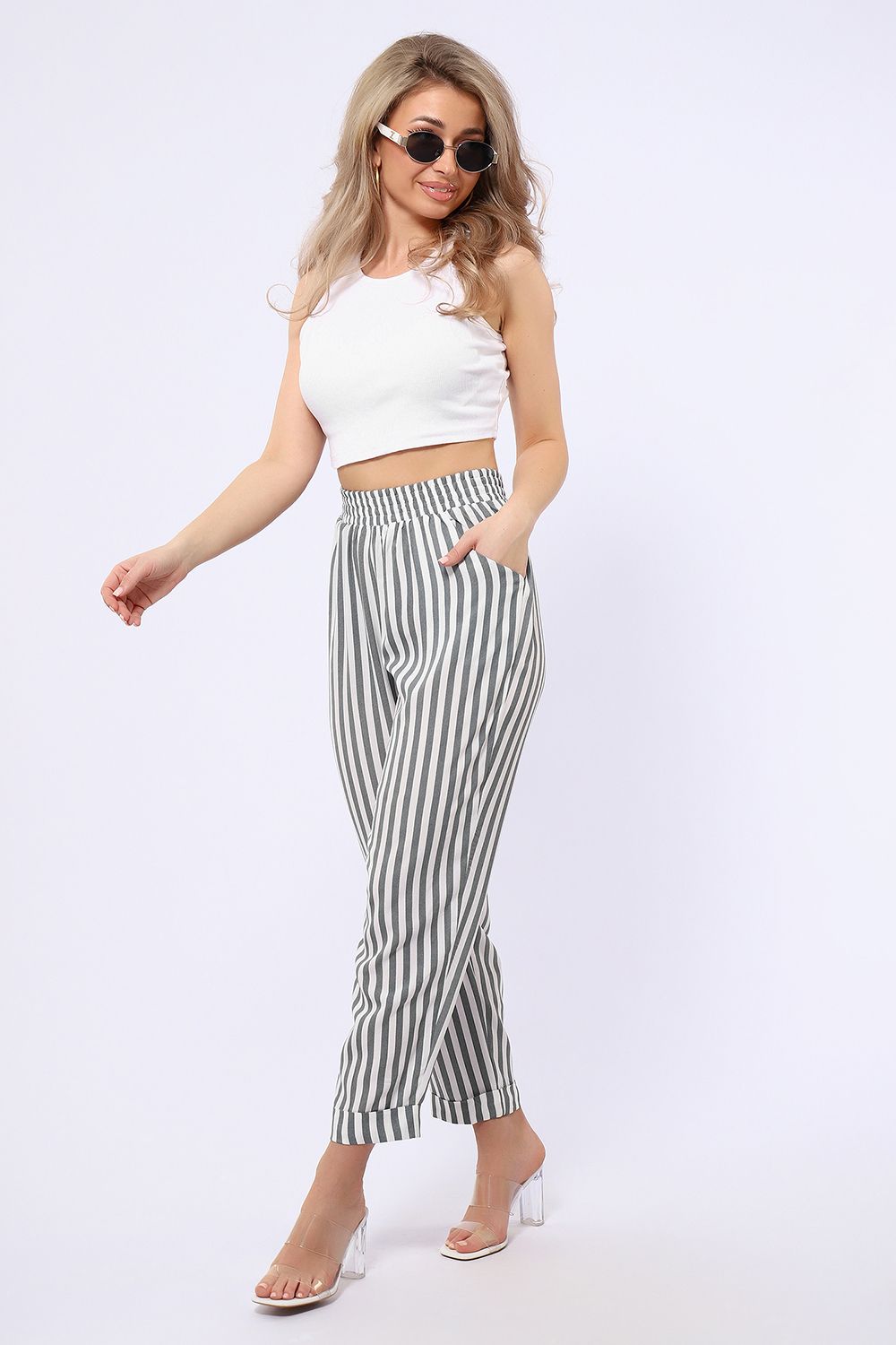 Летние женские брюки из тонкой воздухопроницаемой ткани штапель. Брюки свободного кроя, слегка зауженные к низу, имеют полуприлегающий силуэт. Нетугая резинка пояса позволяет регулировать посадку так, как вам удобно. Ткань штапель, состоящая из 100% вискозы не тянется, поэтому рекомендуем заказывать на размер больше того, который соответствует вашим меркам.