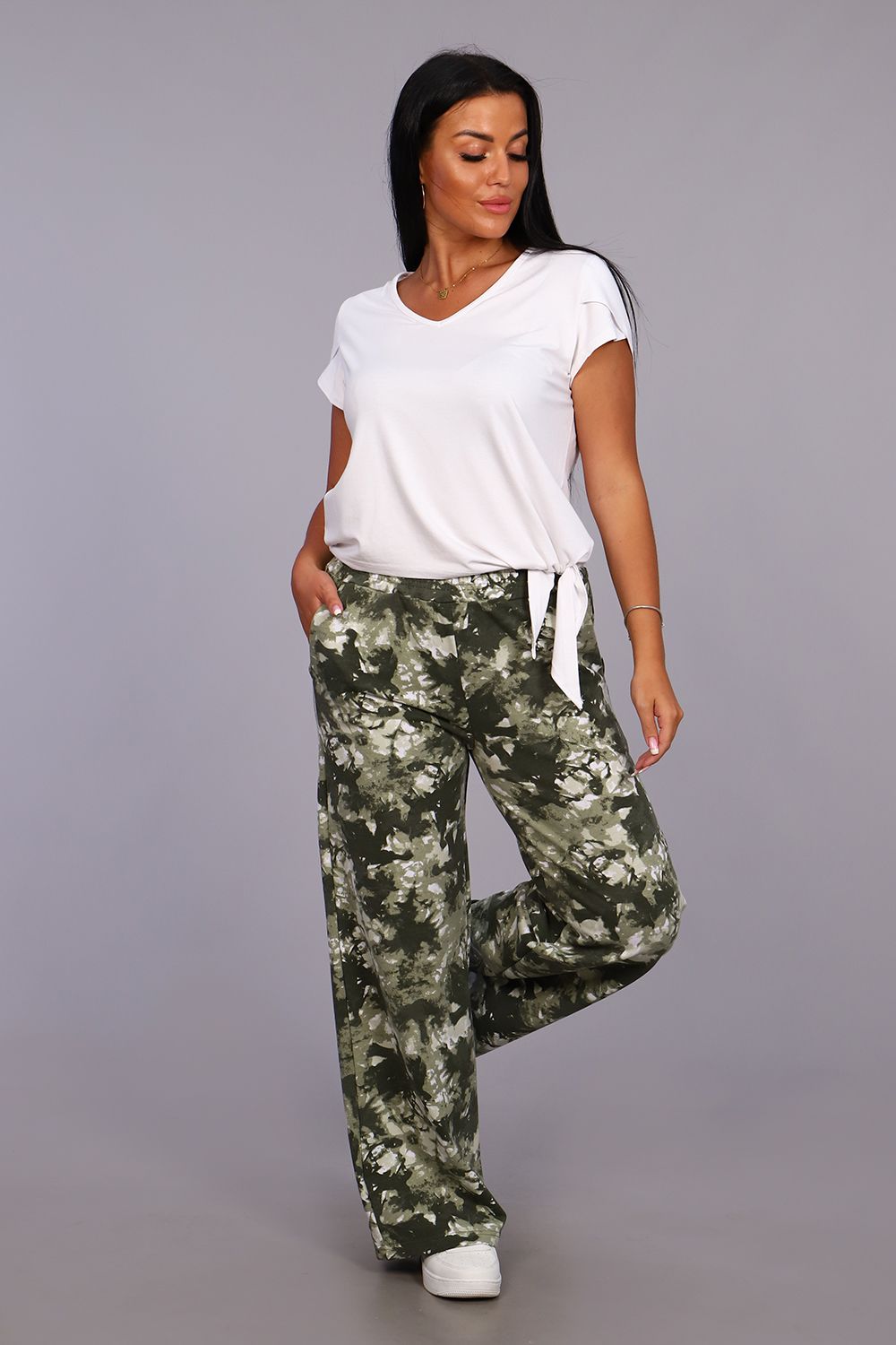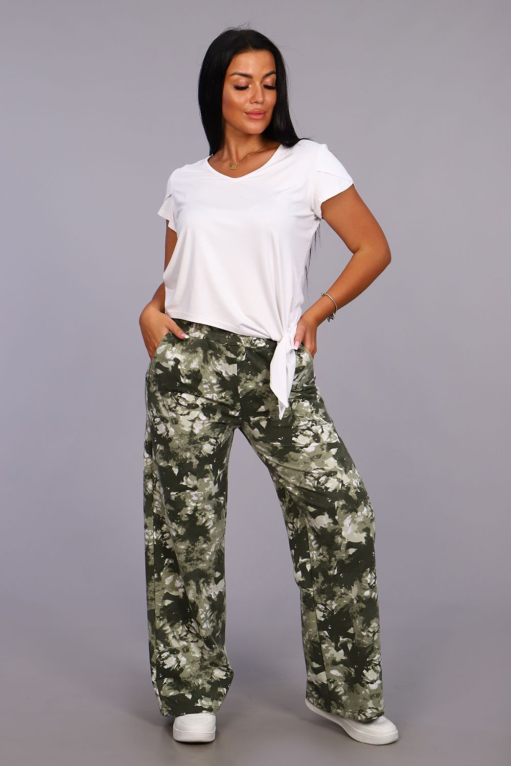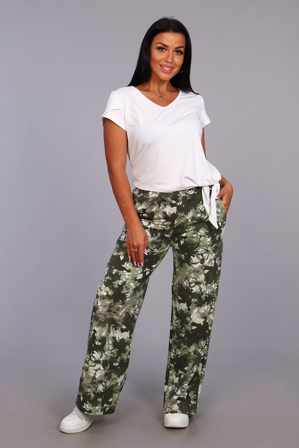Женские модные брюки-палаццо выполнены из футера в стиле тай-дай. Тай-дай стал настолько большим феноменом, что даже смог проникнуть в уличную и высокую моду, где совершенно не затерялся и получил множество интересных интерпретаций. Высокая удобная посадка, вместительные боковые карманы и качественно обработанный на специальной машине пояс - все это позволит Вам чувствовать себя максимально комфортно. В брюках такого плана Вы будете выглядеть неординарно, модно и стильно.