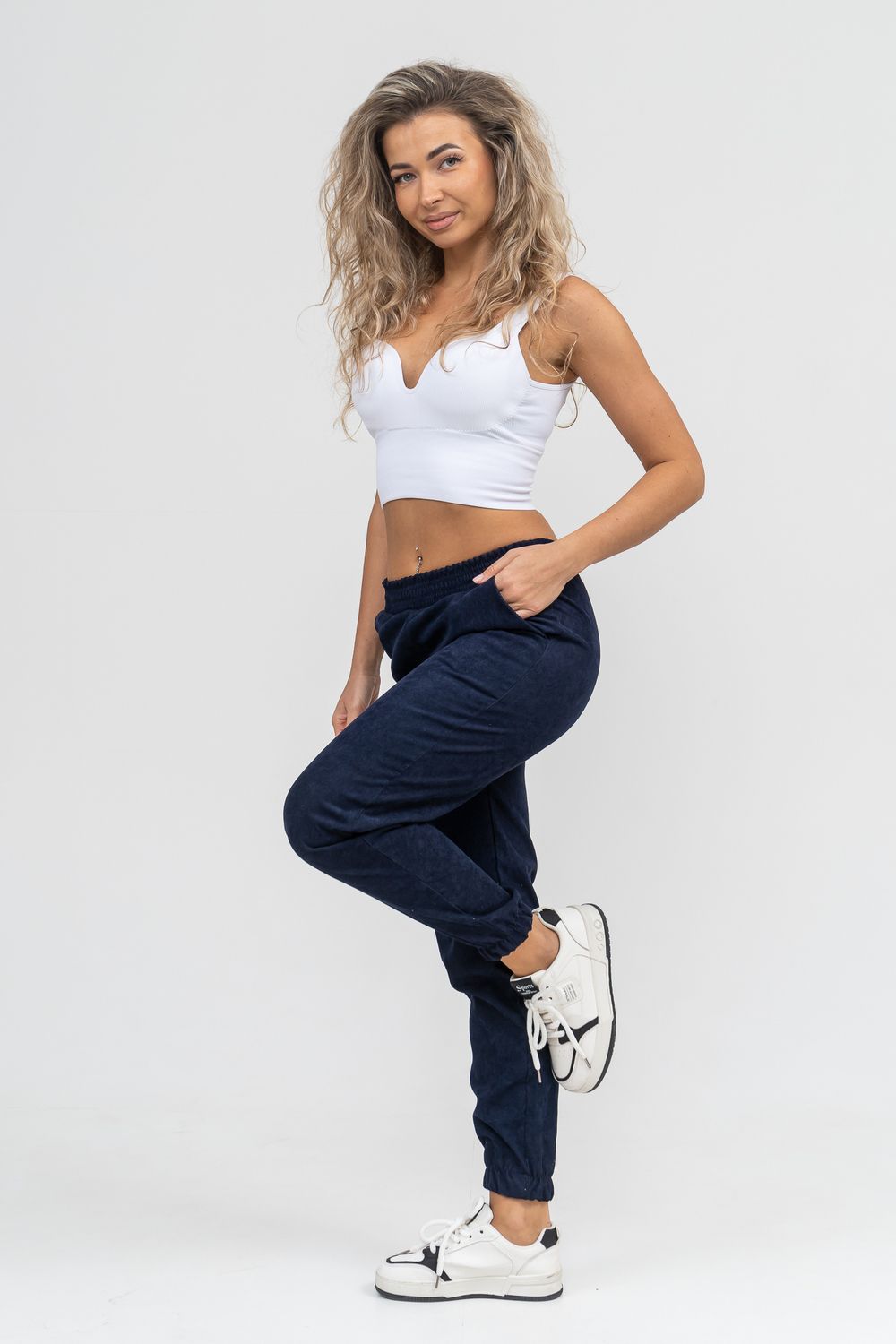 Женские стильные брюки - бананы выполнены из качественного вельвета, что увеличивает долговечность изделия, придавая ему прочность. Вельвет практичен, прост в уходе и использовании. Обладает высокой износоустойчивостью, прочностью, не деформируется и не вытягивается, приятен к телу, не мнётся и не выцветает. Материал гигроскопичен, хорошо пропускает воздух и сохраняет тепло. Высокая посадка, вместительные боковые карманы, удобный и качественно обработанный на специальной машине пояс - резинка позволит Вам чувствовать себя максимально комфортно. Такой фасон брюк формирует выразительный женственный силуэт, скрывает мелкие недостатки фигуры и гармонизирует пропорции. Всё это образует идеальное решение для лука на каждый день, проведённый вами дома, на работе, в школе и на отдыхе.