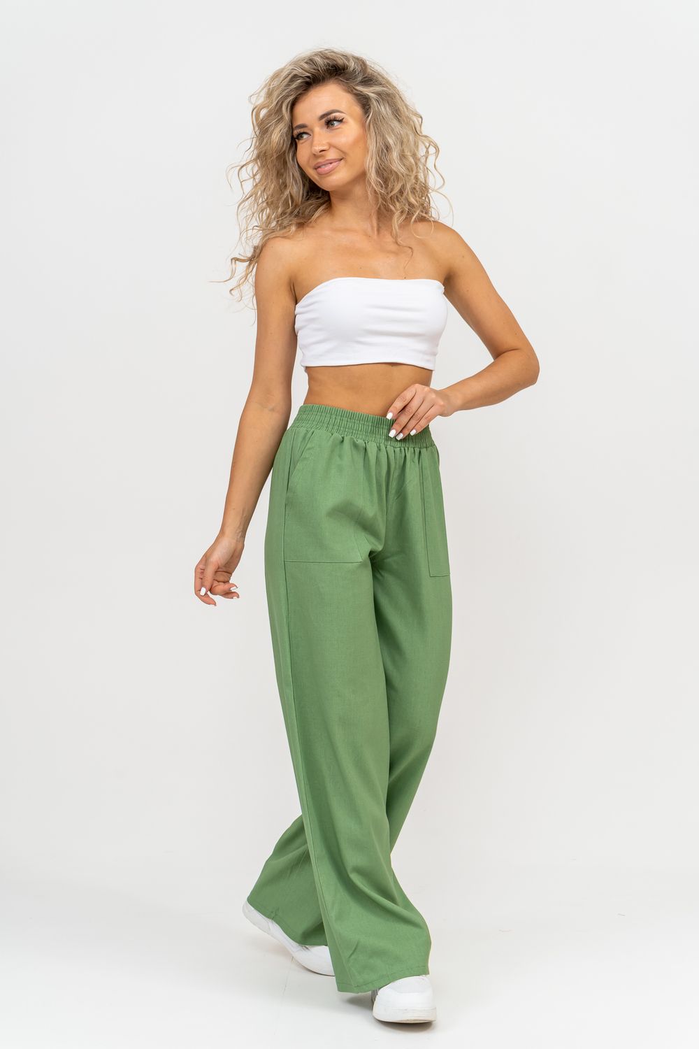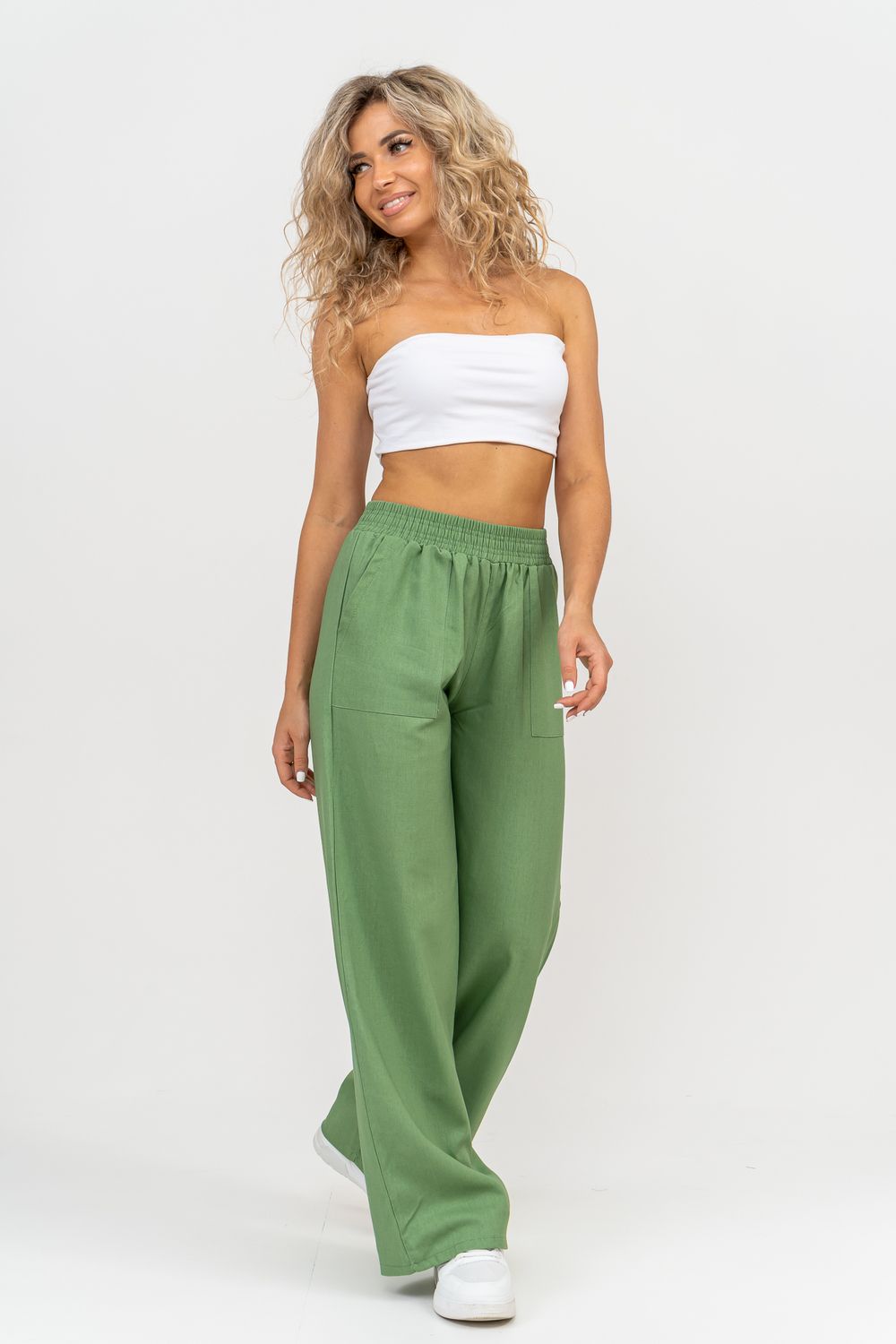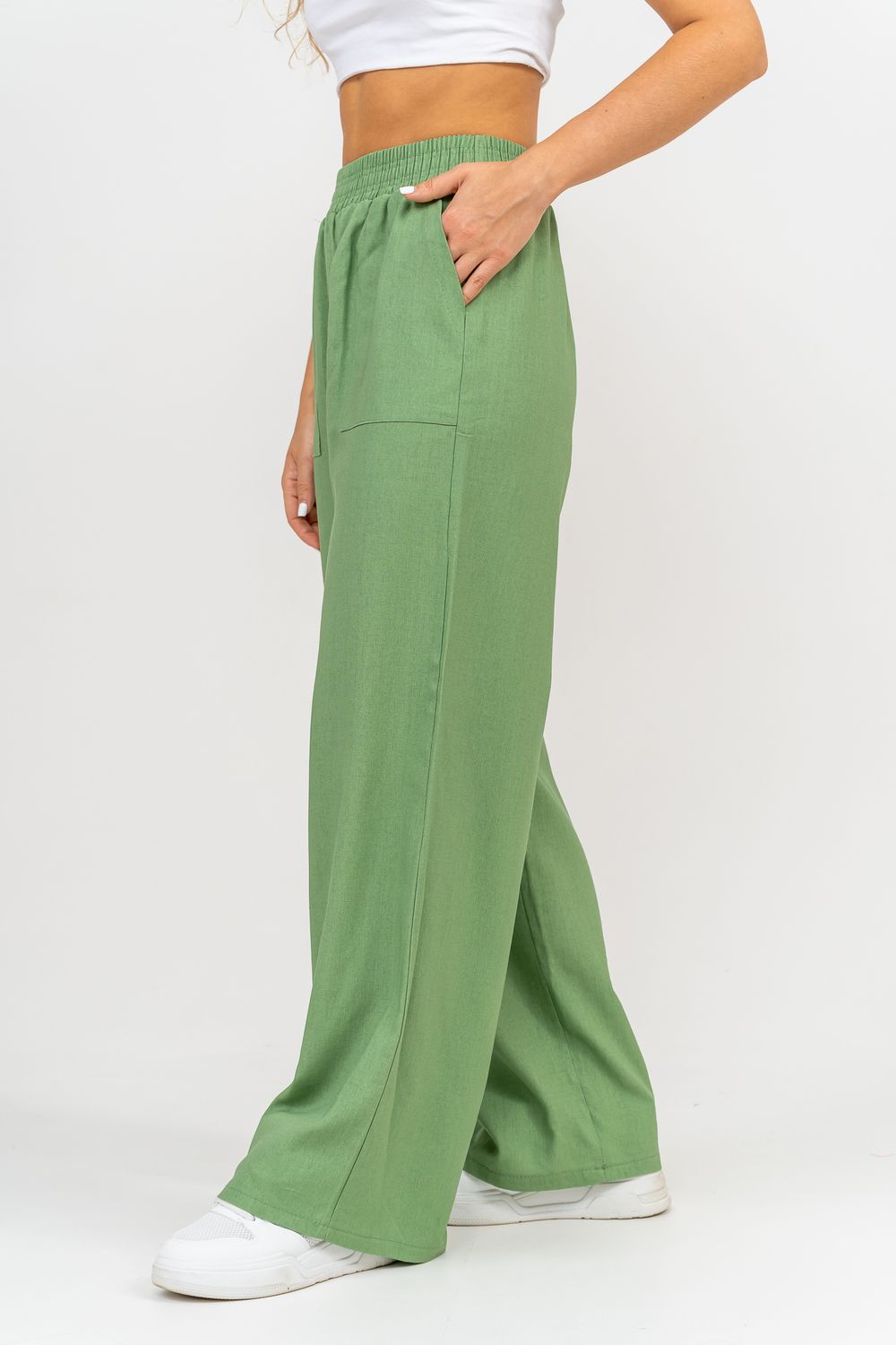 Стильные и современные женские летние брюки - палаццо выполнены из прочного, износостойкого, долговечного и приятного к телу материала. Это экологичный материал, обладающий отличной гигроскопичностью и воздухопроницаемостью. Одежда из ткани, в состав которой входит лён, способствует естественной терморегуляции тела и отлично подходит для летнего сезона и жаркого климата. Спереди брюк настрочены два вместительных накладных кармана. Пояс выполнен на специализированной поясной машине. Это качественная и современная обработка, при которой Ваш пояс не деформируется со временем, при стирке и не даёт резинке скрутиться. Льняные брюки - это универсальная вещь, они подойдут для работы в офисе, для школы, прогулок, на праздник или для дома. Особый шарм брюки приобретают во время отпуска, отдыха на море, на курорте или пляже. Брюки - палаццо с завышенной посадкой красиво подчеркивают талию и линию бедра, создавая лаконичный и стильный образ. Брюки такого плана подходят под разные стили - casual, спортивный, неформальный, пляжный морской, бохо и конечно более строгие варианты - классика, деловой офисный стиль. Длинные брюки на резинке - идеальный вариант для современной женщины, которая много времени проводит на работе. Базовая популярная модель позволяет чувствовать себя удобно и комфортно в течении всего рабочего дня. Лёгкие и свободные брюки с карманами из премиум ткани отлично подходят для жаркого лета, пляжа, вечеринки, танцев или домашнего отдыха. Элегантные брюки помогут создать красивые вечерние образы, а также помогут выглядеть эффектно на праздничной фотосессии или выпускном.