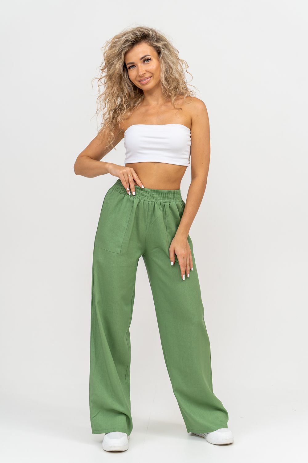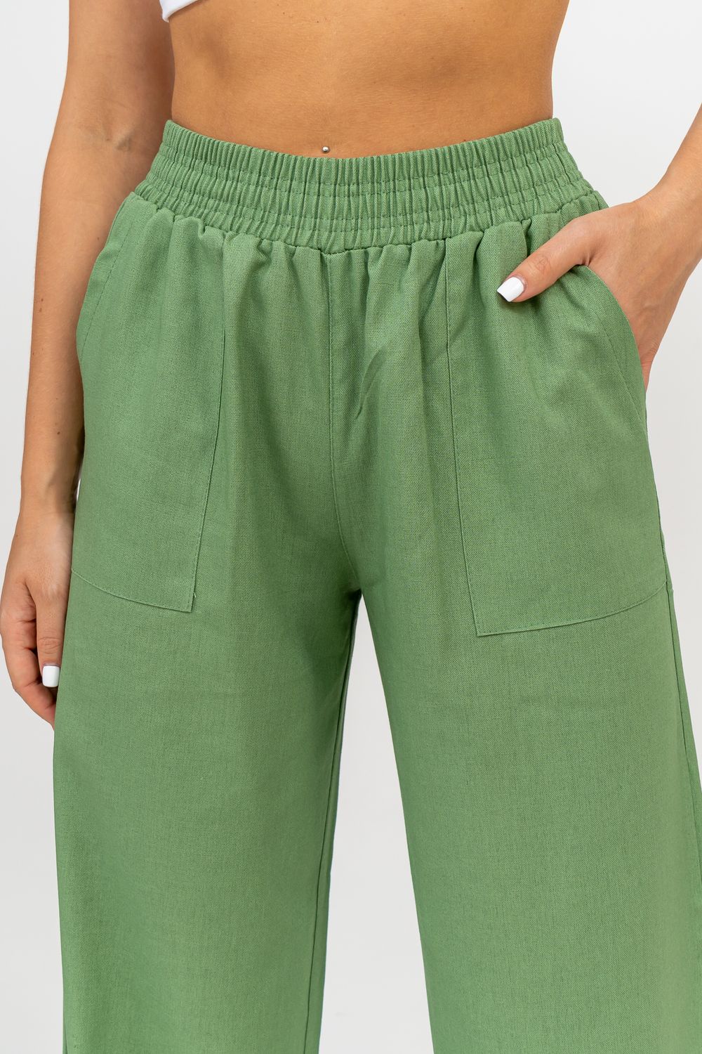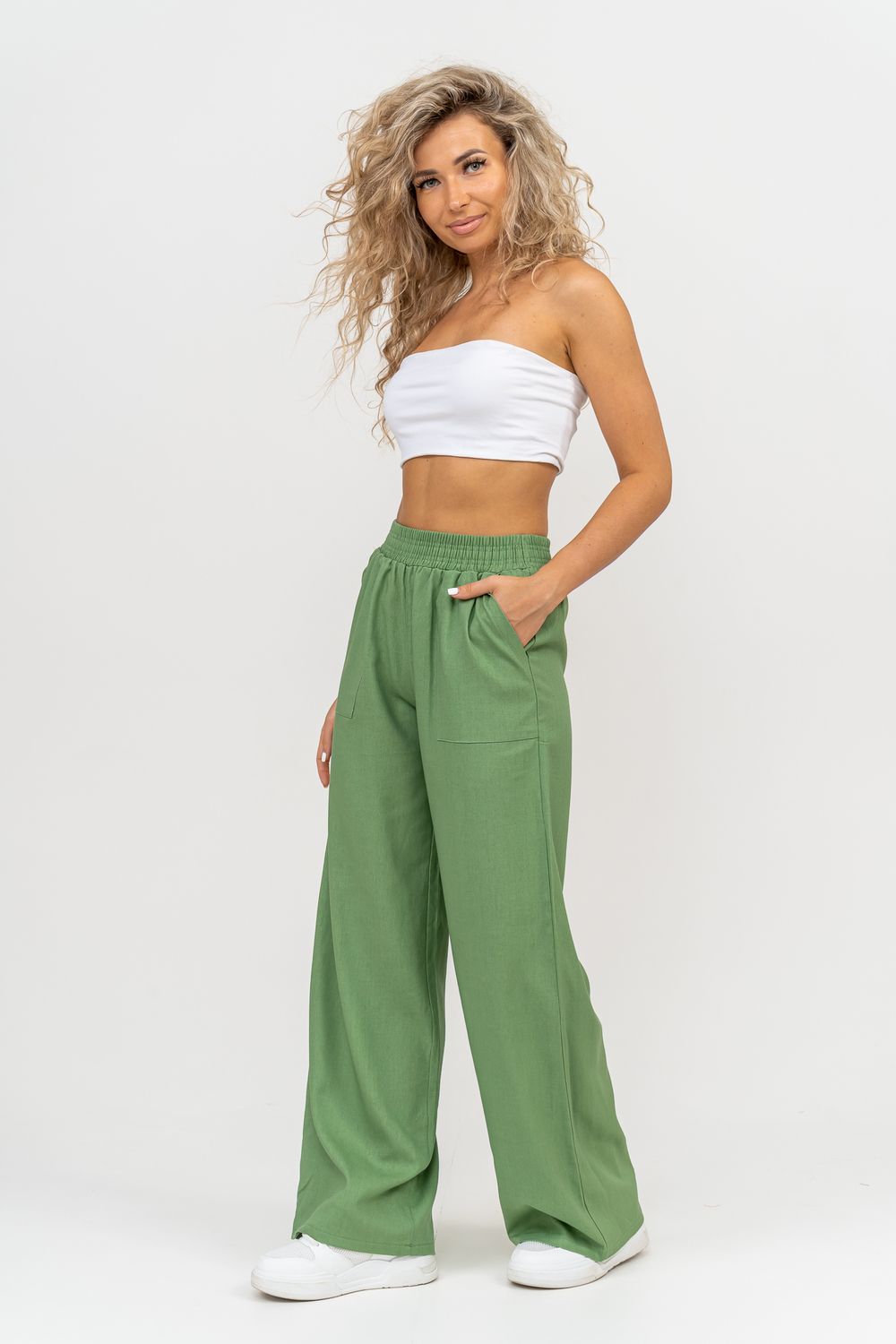 Стильные и современные женские летние брюки - палаццо выполнены из прочного, износостойкого, долговечного и приятного к телу материала. Это экологичный материал, обладающий отличной гигроскопичностью и воздухопроницаемостью. Одежда из ткани, в состав которой входит лён, способствует естественной терморегуляции тела и отлично подходит для летнего сезона и жаркого климата. Спереди брюк настрочены два вместительных накладных кармана. Пояс выполнен на специализированной поясной машине. Это качественная и современная обработка, при которой Ваш пояс не деформируется со временем, при стирке и не даёт резинке скрутиться. Льняные брюки - это универсальная вещь, они подойдут для работы в офисе, для школы, прогулок, на праздник или для дома. Особый шарм брюки приобретают во время отпуска, отдыха на море, на курорте или пляже. Брюки - палаццо с завышенной посадкой красиво подчеркивают талию и линию бедра, создавая лаконичный и стильный образ. Брюки такого плана подходят под разные стили - casual, спортивный, неформальный, пляжный морской, бохо и конечно более строгие варианты - классика, деловой офисный стиль. Длинные брюки на резинке - идеальный вариант для современной женщины, которая много времени проводит на работе. Базовая популярная модель позволяет чувствовать себя удобно и комфортно в течении всего рабочего дня. Лёгкие и свободные брюки с карманами из премиум ткани отлично подходят для жаркого лета, пляжа, вечеринки, танцев или домашнего отдыха. Элегантные брюки помогут создать красивые вечерние образы, а также помогут выглядеть эффектно на праздничной фотосессии или выпускном.