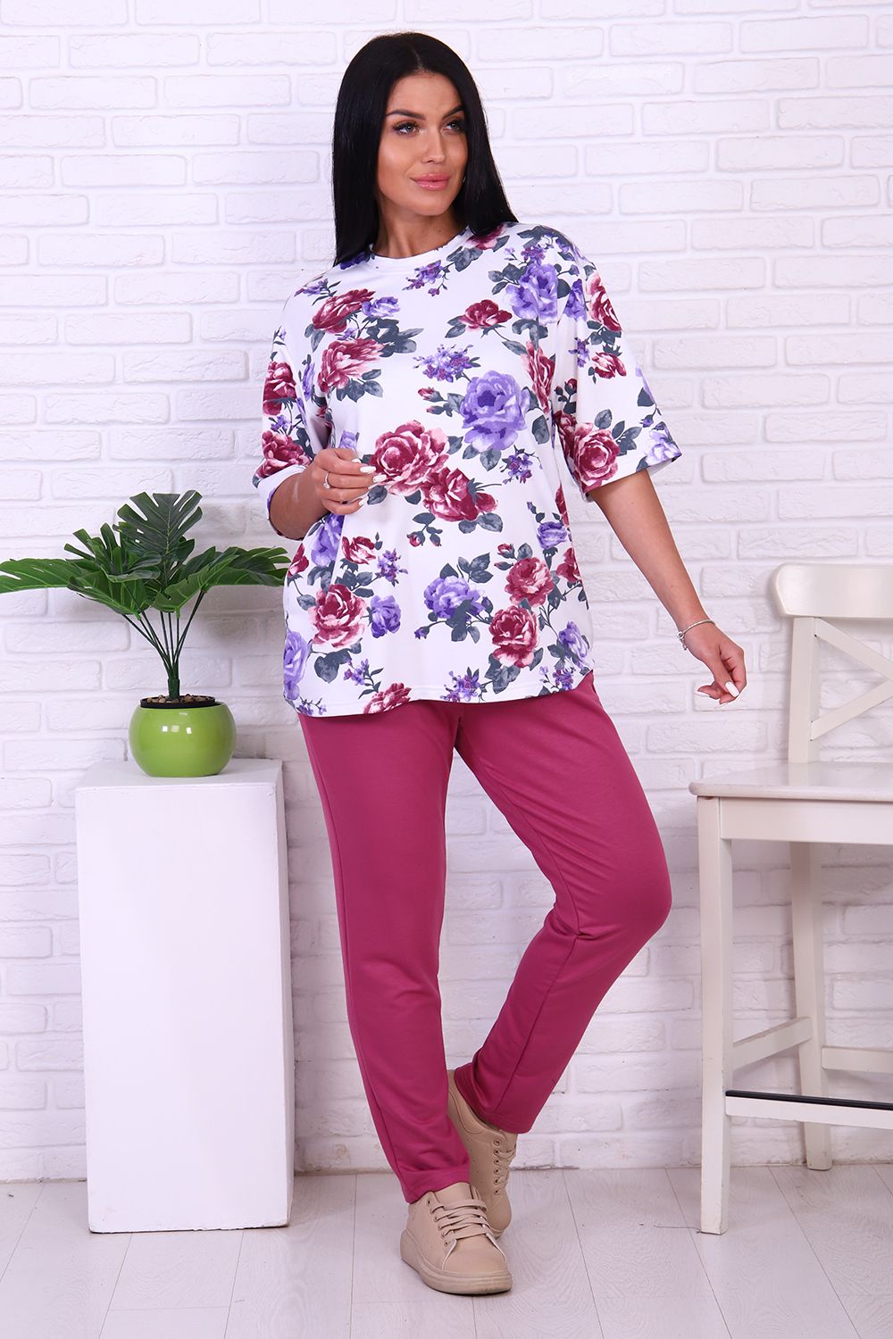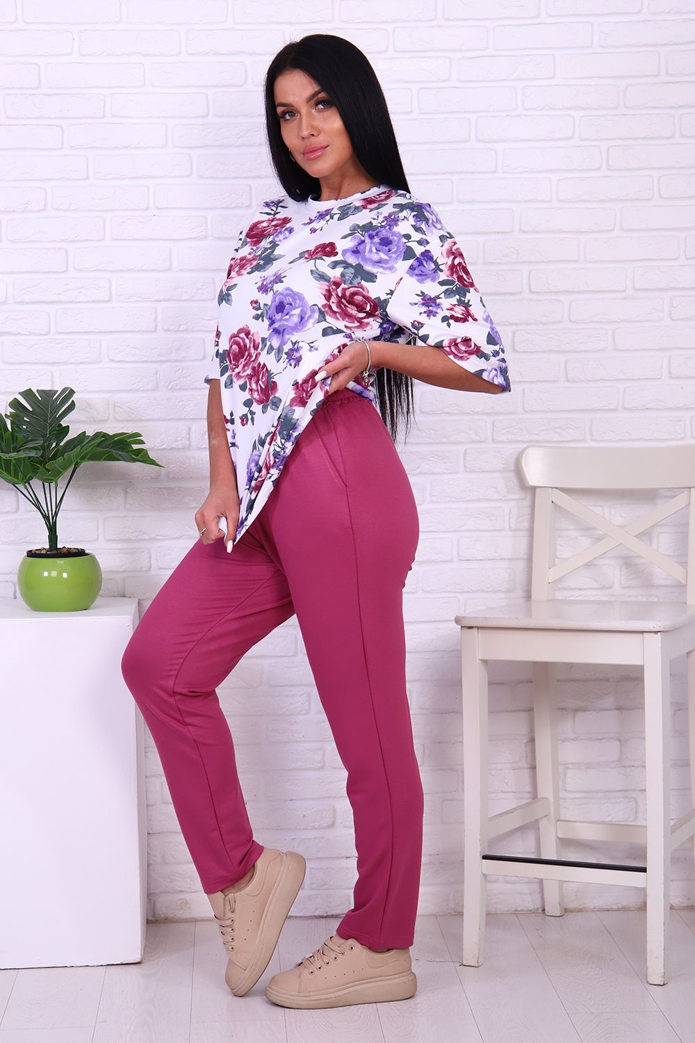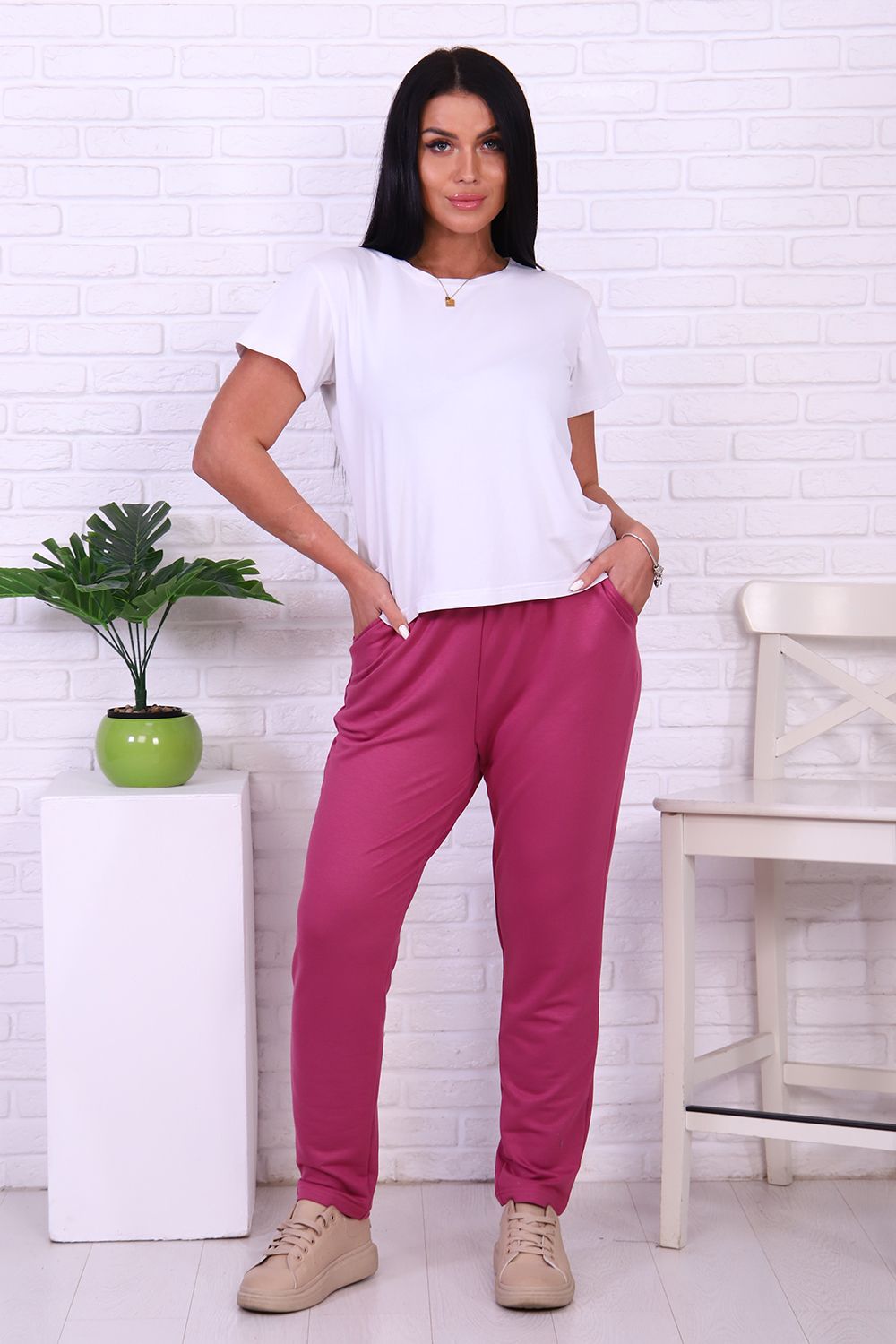 Брюки 47074 - брусника