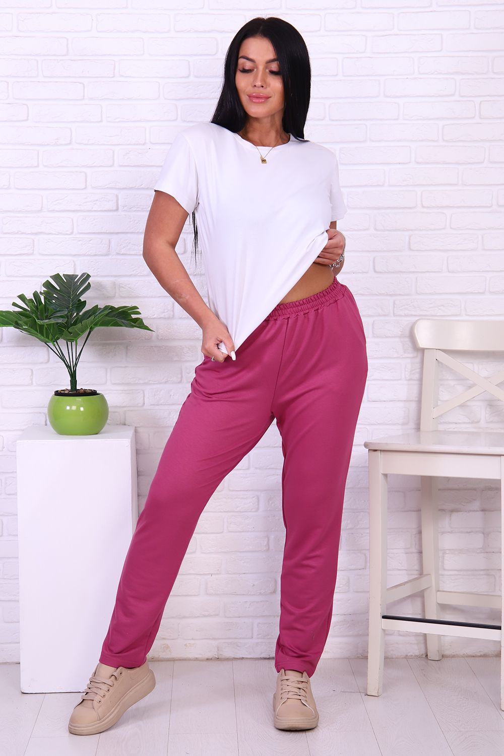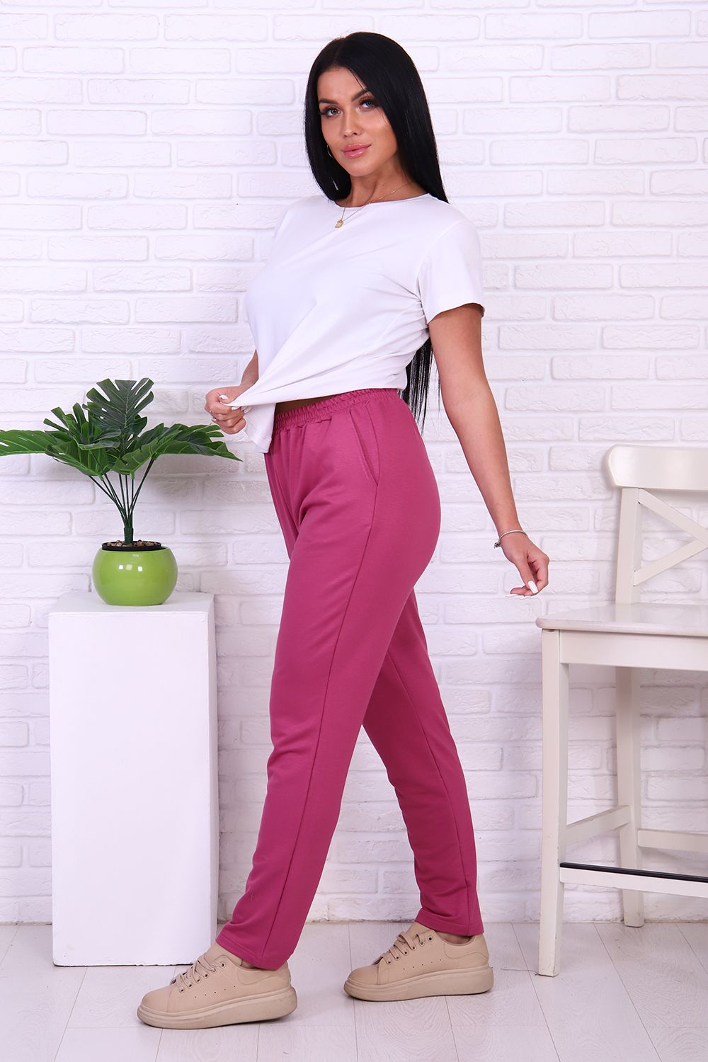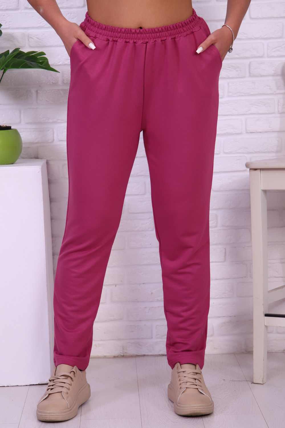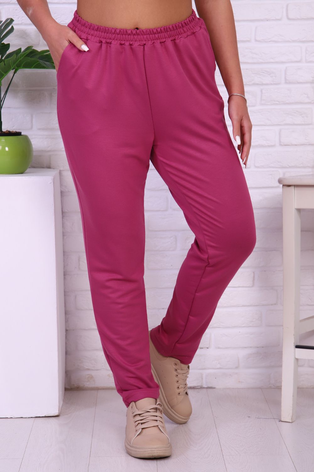 Брюки женские на резинке с карманами, прямые