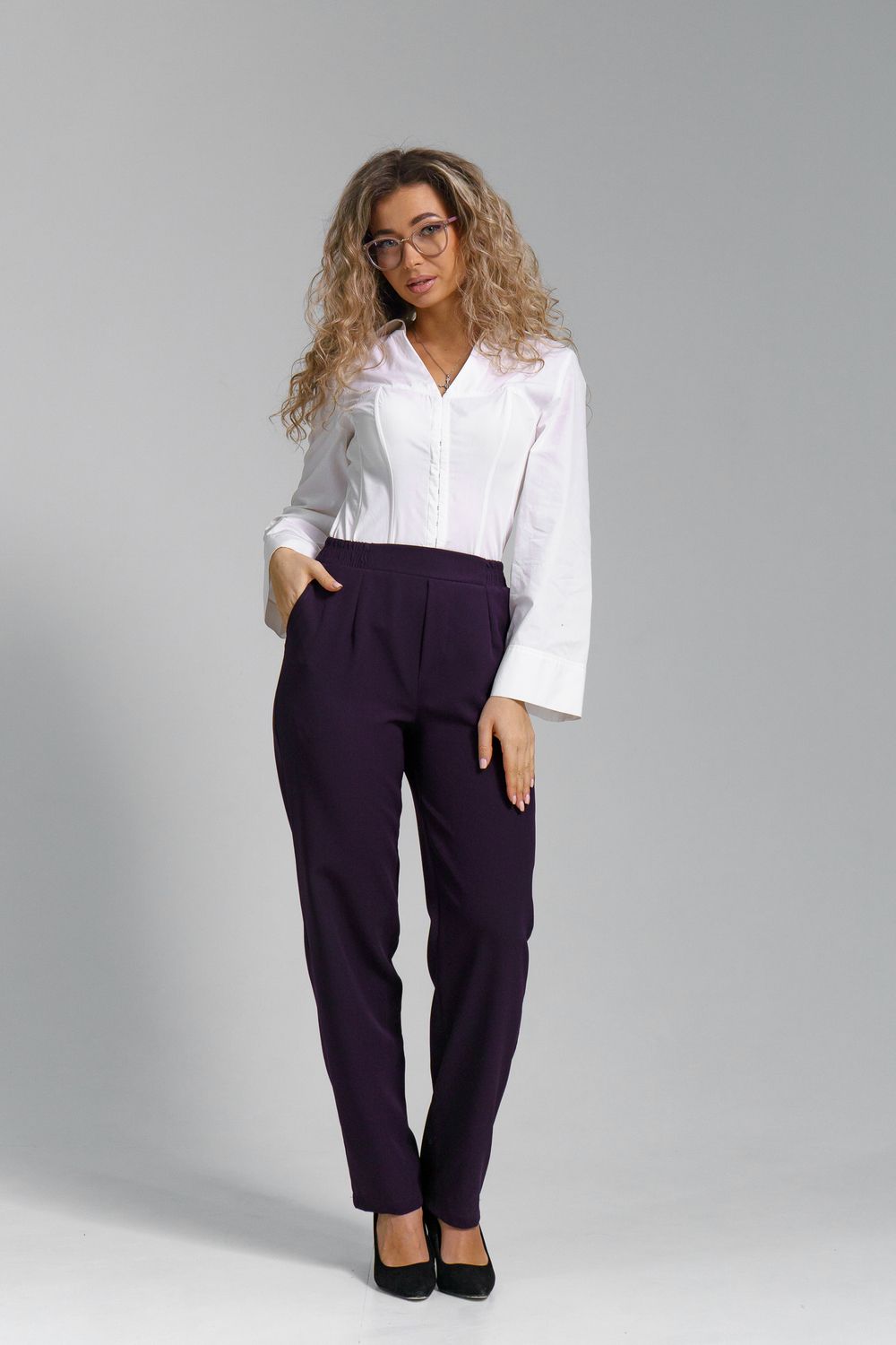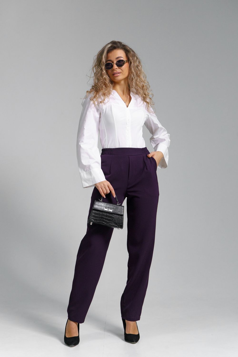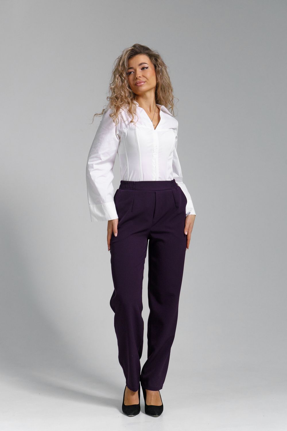 Женские классические брюки на резинке подчеркнут женственность и элегантность фигуры и станут незаменимым элементом базового гардероба. Брюки прямые выполнены из качественной, плотной, приятной на ощупь костюмной ткани, которая не деформируется после стирки, не вытягивается и не скатывается при активном образе жизни. Брюки с высокой посадкой и эластичной резинкой на поясе обеспечат Вам идеальный силуэт, подчеркнут все достоинства фигуры и создадут максимальный комфорт в движении. Пояс выполнен на специализированной поясной машине. На карманах стоят усиленные закрепки. Прямые брюки красиво оформлены и за счет удачного фасона невероятно стройнят. Женские брюки с карманами представлены до большого размера - плюс сайз, plus size. Благодаря своему крою и выверенному лекалу подойдут как стройным, так и полным женщинам, беременным девушкам или молодым мамам. Брюки бананы идеальны для создания строгих офисных луков и стильных повседневных, для школы и работы, а также праздничных вечерних образов. Данная модель выгодно подчеркнет Ваши достоинства и в домашней обстановке, удивите своих близких стильными домашними образами. Однотонные цвета этих брюк гармонично сочетаются с любым верхом. Благодаря качественному материалу и модным цветам этого сезона, они будут радовать Вас всегда и создавать безупречный образ в любое время года. Проявите свой стиль и модный вкус, выбрав наш товар.