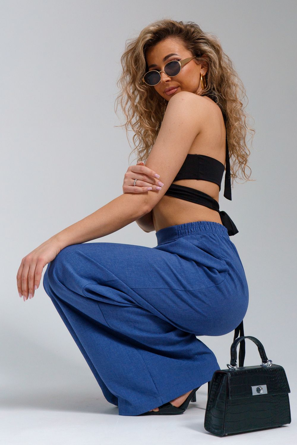 Брюки-палаццо – мастхэв базового женского гардероба. Модель выполнена из качественной льняной ткани. Материал прочный, приятный на ощупь, хорошо струится и дышит. Изделие представлено в классических модных цветах. Широкий крой со складками и высокой талией создает красивый силуэт и обеспечивает удобную посадку, на любой тип фигуры. Пояс выполнен на специализированной поясной машине, что добавляет изделию качество на долгое время и эстетичность. На брюках имеются боковые карманы с усиленными закрепками на закрепочной машине. На модели представлен 46 размер - фигура соответствует параметрам размера. УХОД ЗА ИЗДЕЛИЕМ: бережная стирка при максимальной температуре 30ºС, не отбеливать, машинная сушка запрещена, глажение при 110ºС, профессиональная сухая чистка, стирать вывернутым наизнанку, глажение с использованием специальной сетки, стирать с изделиями похожих цветов . Брюки такого плана идеально впишутся в городской стиль, элегантность и комфорт, женственные силуэты и мягкие линии, расслабленные, нарочито небрежные образы, стильные и комфортные. Широкие брюки со складками – модная одежда для женщин на любой случай жизни. Подойдут для стильных повседневных луков, офисных аутфитов, нарядных вечерних образов и прогулок.
