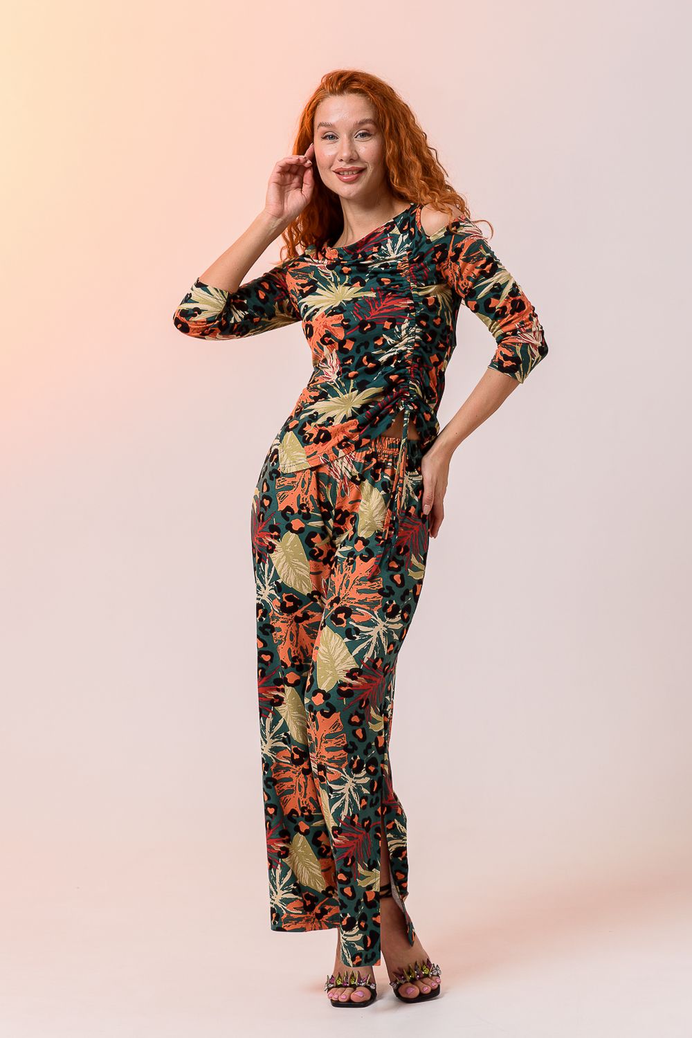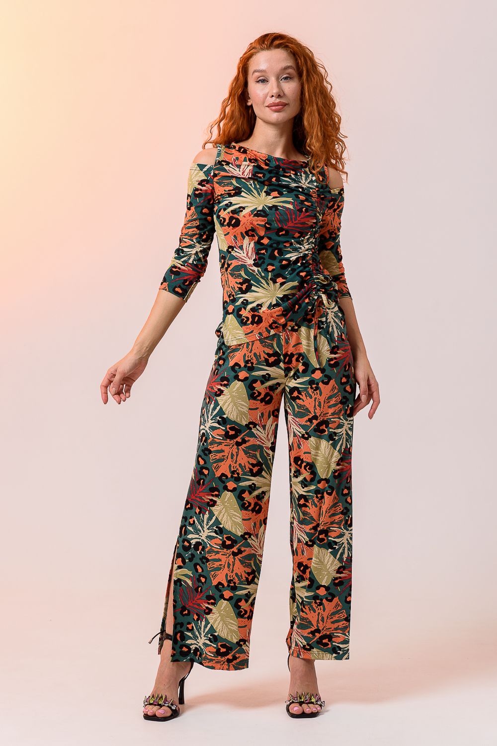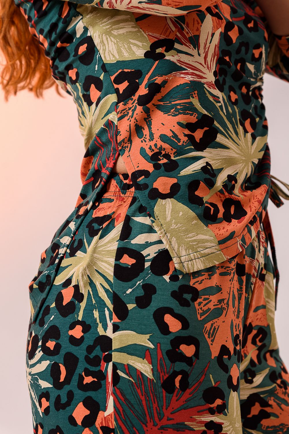Брюки 7411 - листья на зелёном
