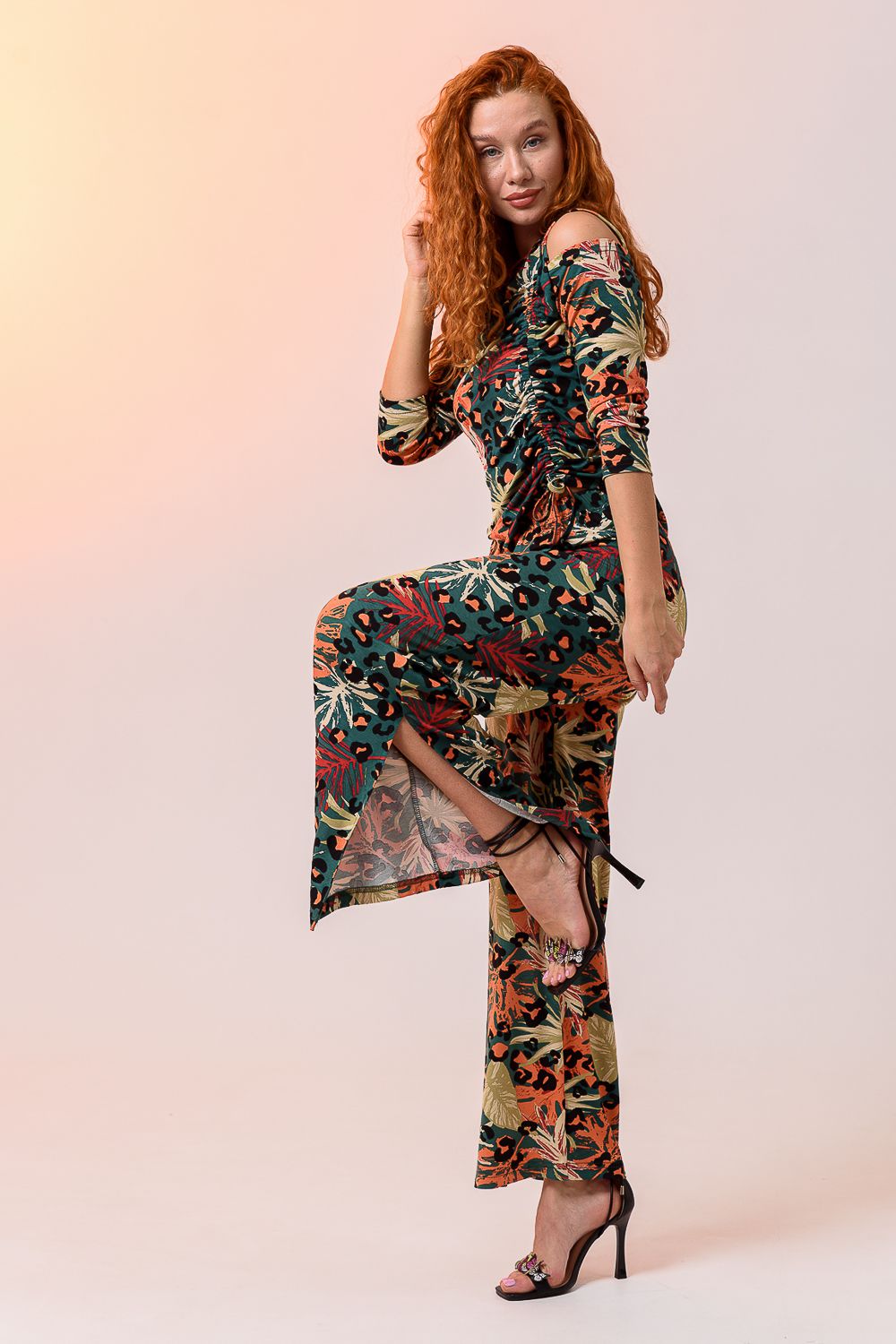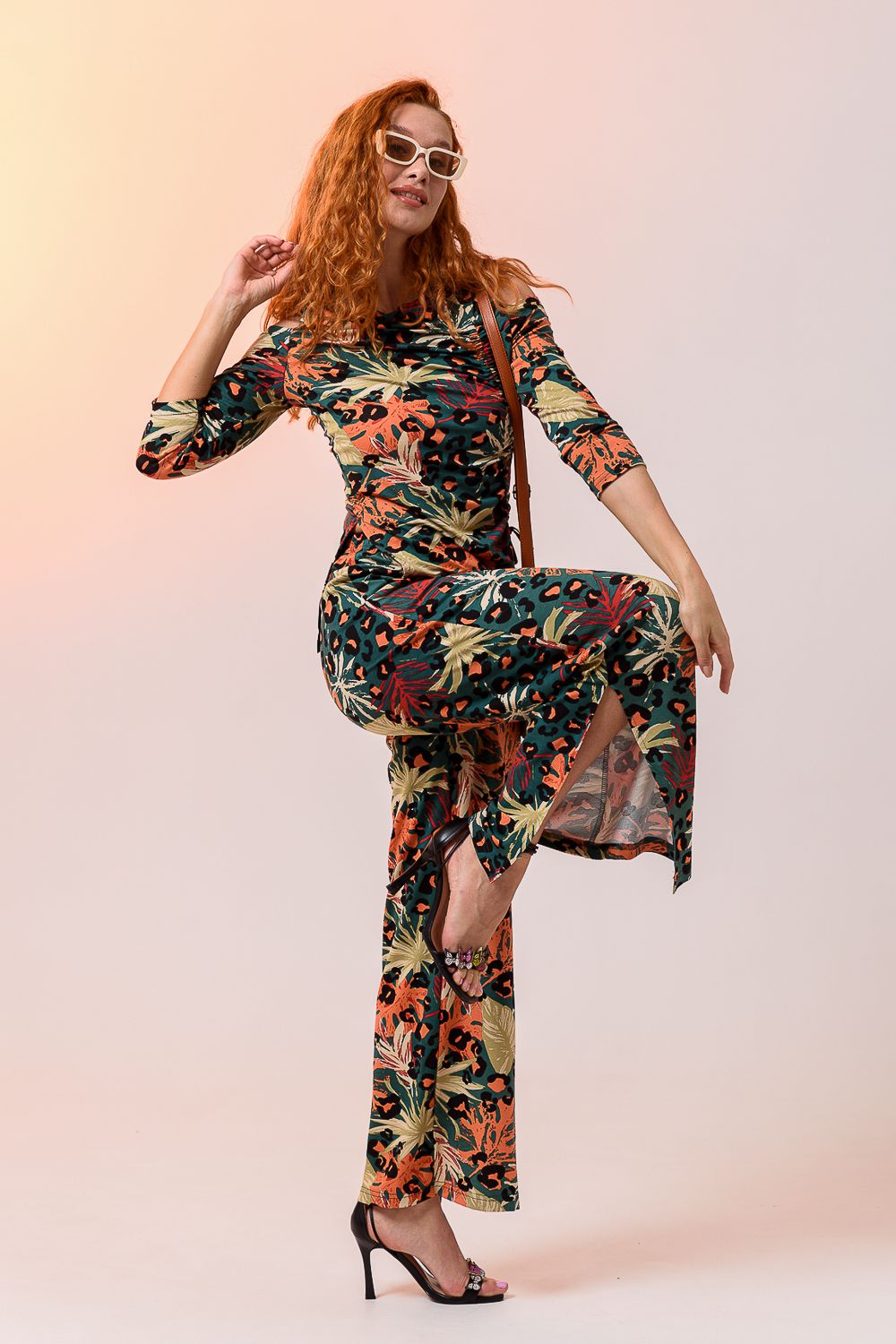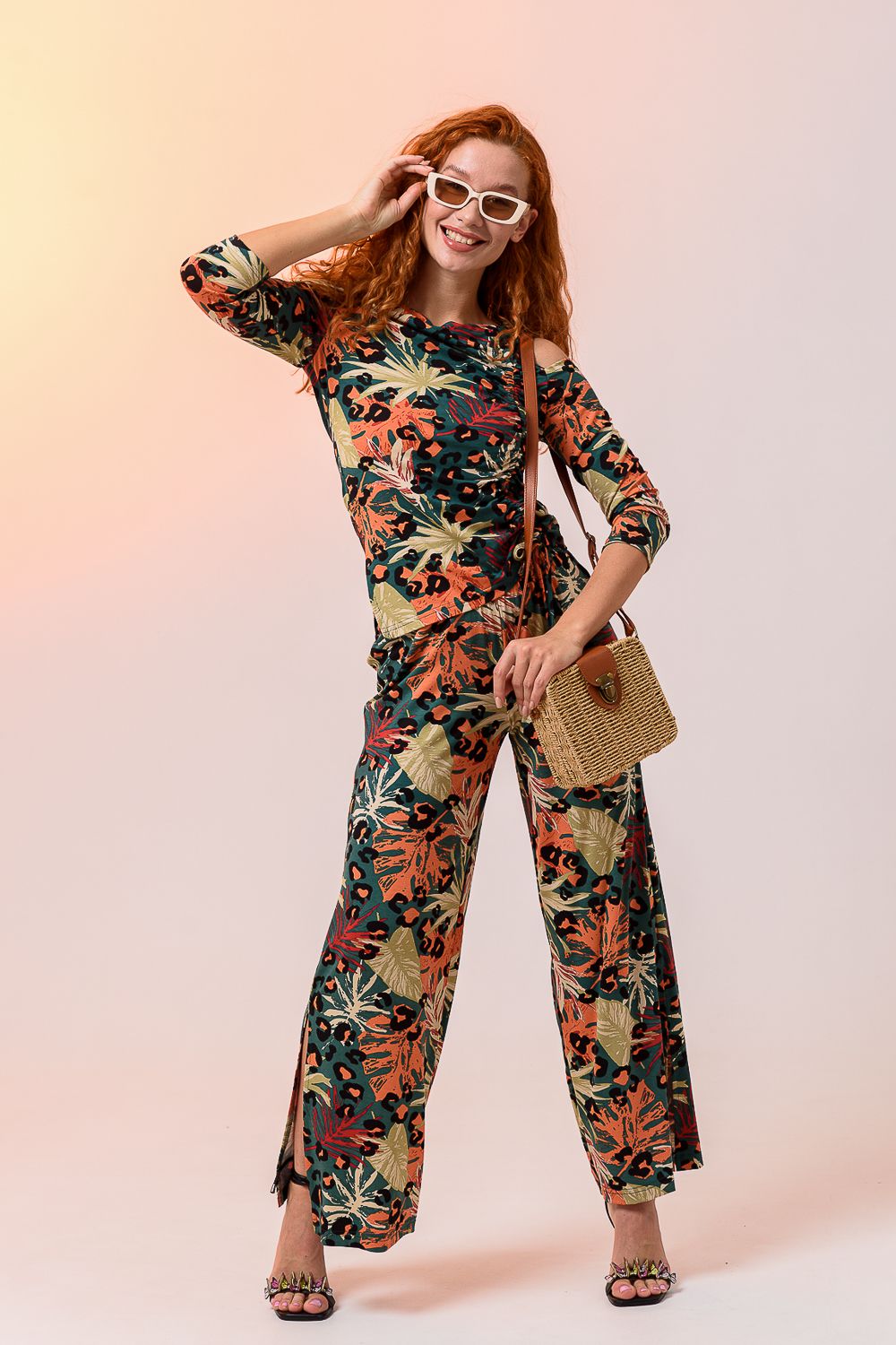 Брюки 7411 - листья на зелёном