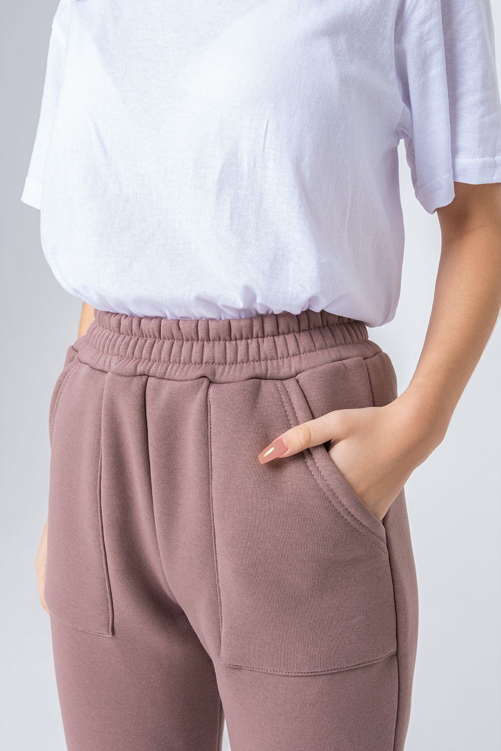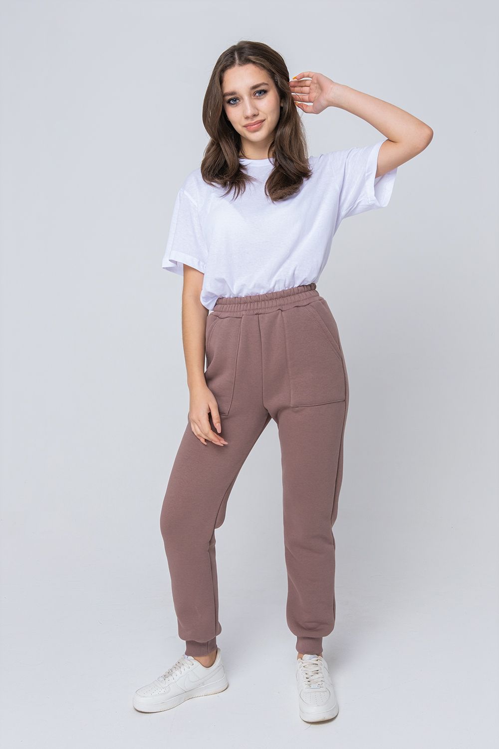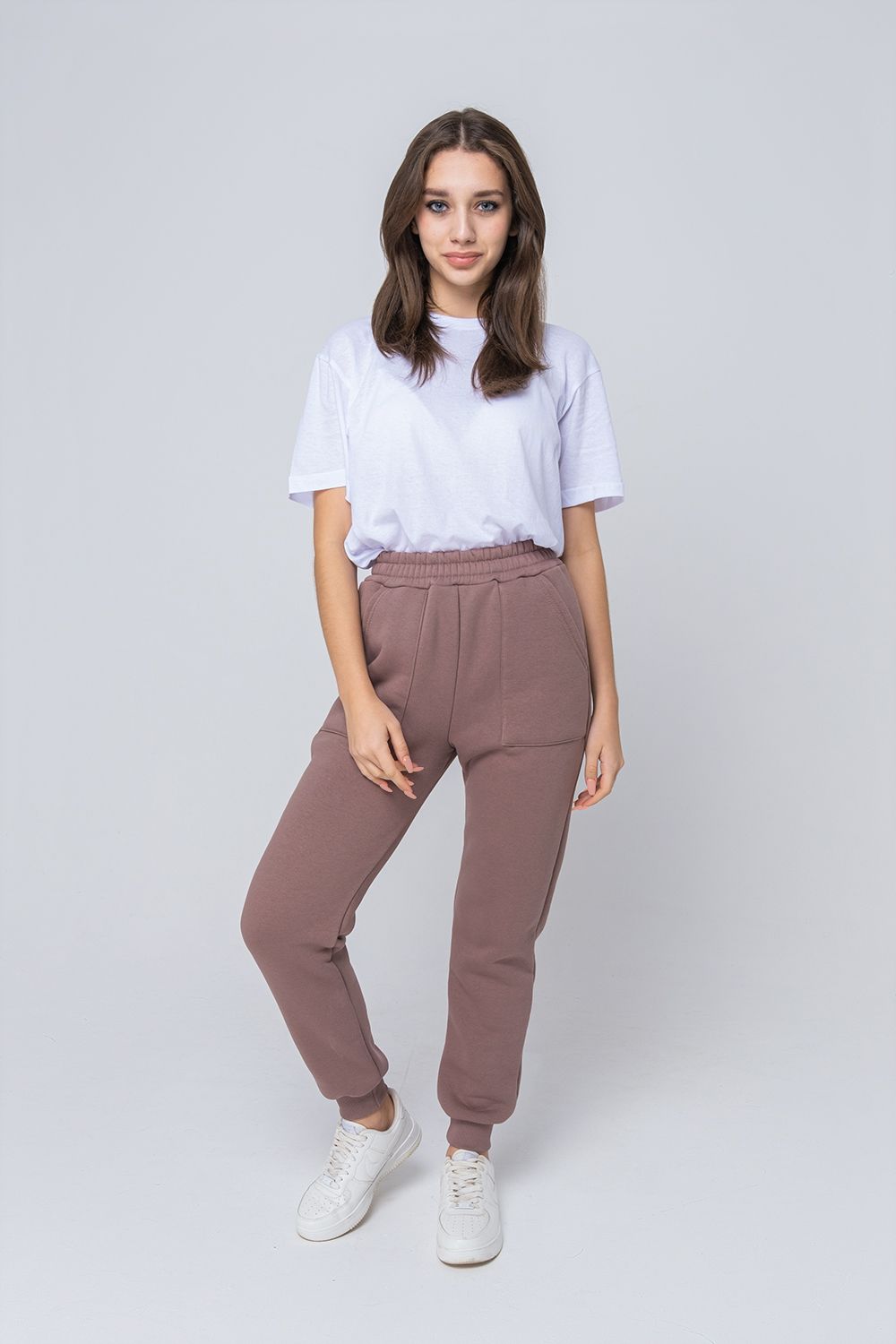 Брюки утепленные, на поясе, свободные, с боковыми накладными карманами, на эластичном манжете по низу.