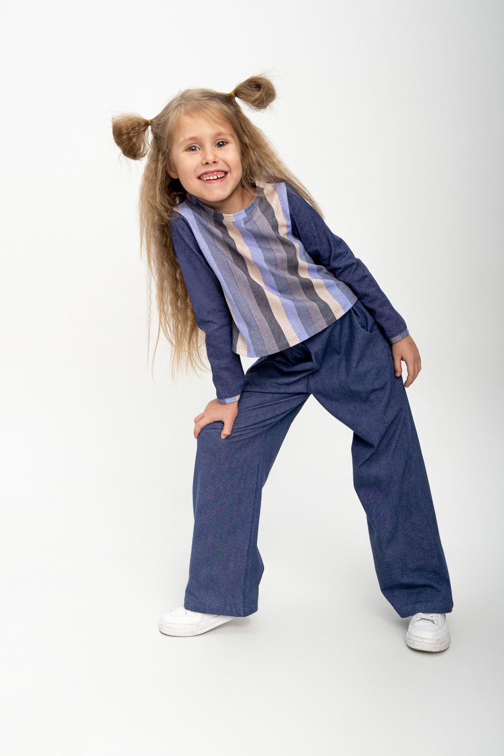 Брюки выполнены из кулирки. Это поможет вашему ребенку выглядеть стильно и в то же время не забывать о комфорте. Свободный крой исключит скованность из движений, а качество пошива оставит приятные воспоминания. Брюки можно сочетать как со свитшотами, так и с футболками.