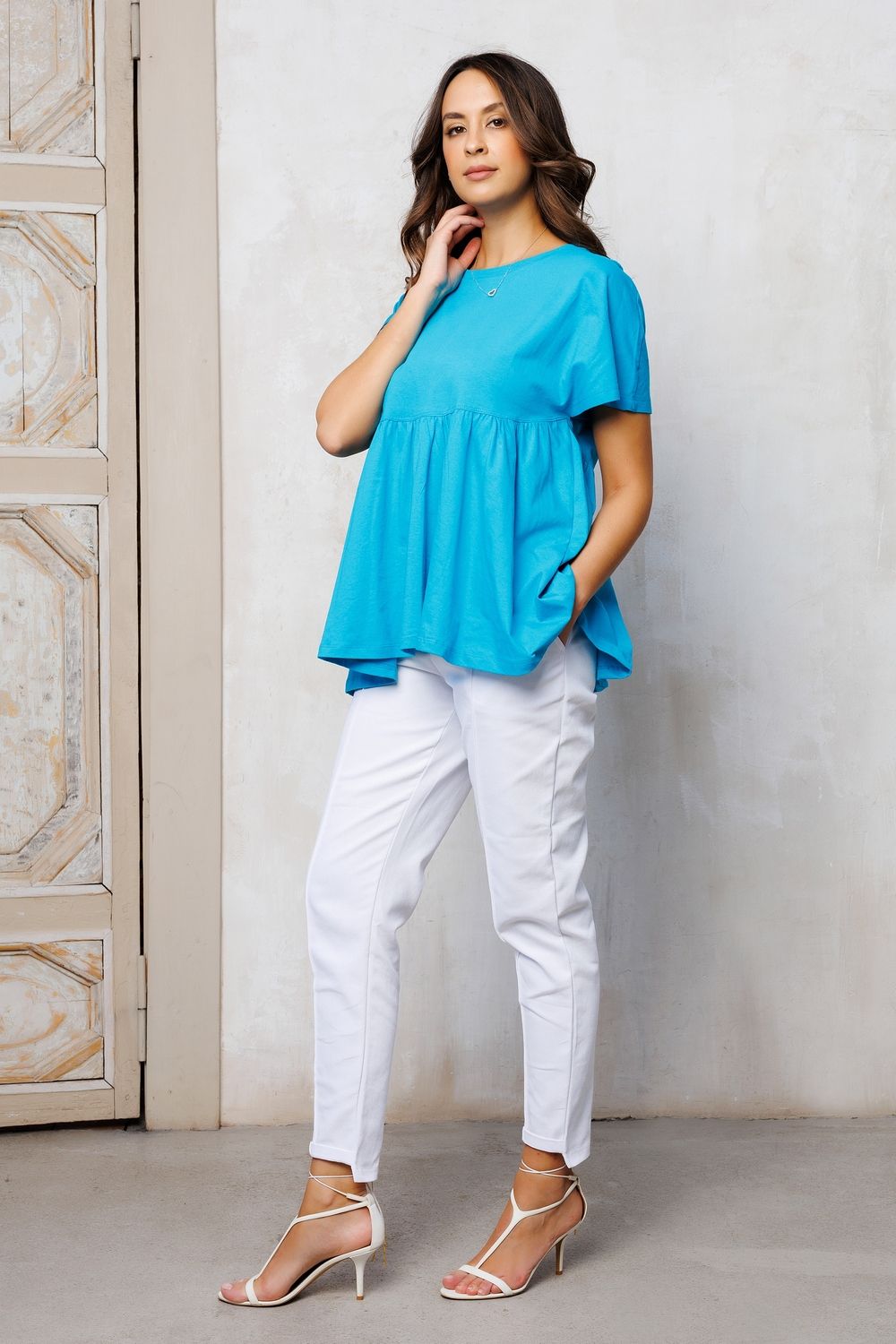 Брюки джинсовые с карманами 344 - белый