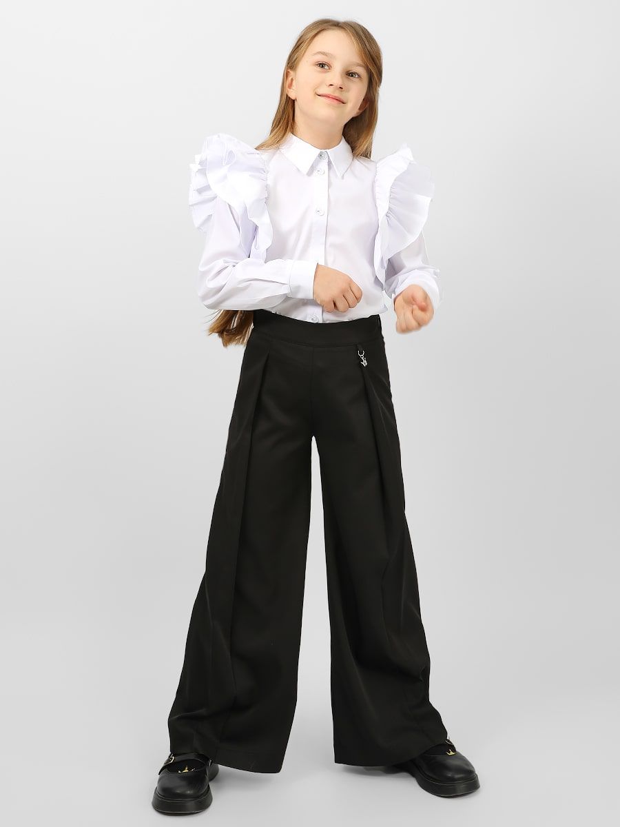 Стильные брюки палаццо для девочки. Пояс сзади на широкой, эластичной резинке, сбоку на молнии. Брюки прекрасно сочетаются с любым верхом, и подойдут для любого мероприятия.