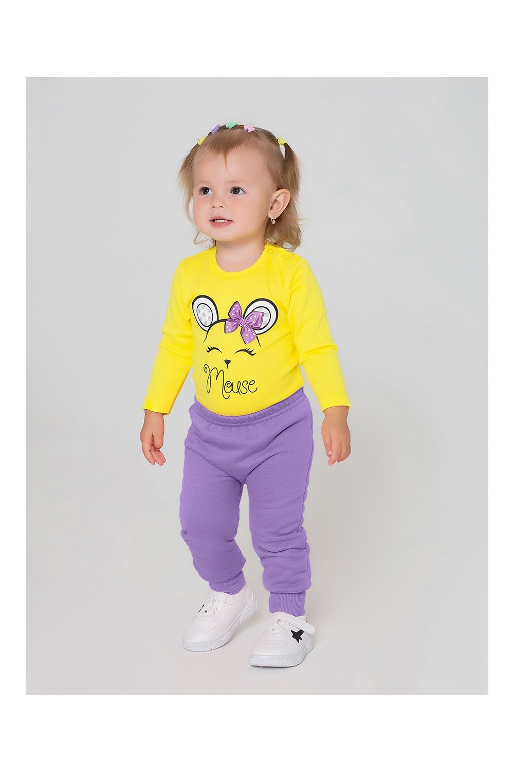 Брюки из коллекции "Пинки" для новорожденных и малышей, выполнены из мягкого футера 3-х нитка петля. Модель – пояс на резинке, по низу штанин эластичные манжеты. Принт, нанесённый методом шелкографии на ткани. Подходит для прогулки, а также для спортивного и повседневного образа.