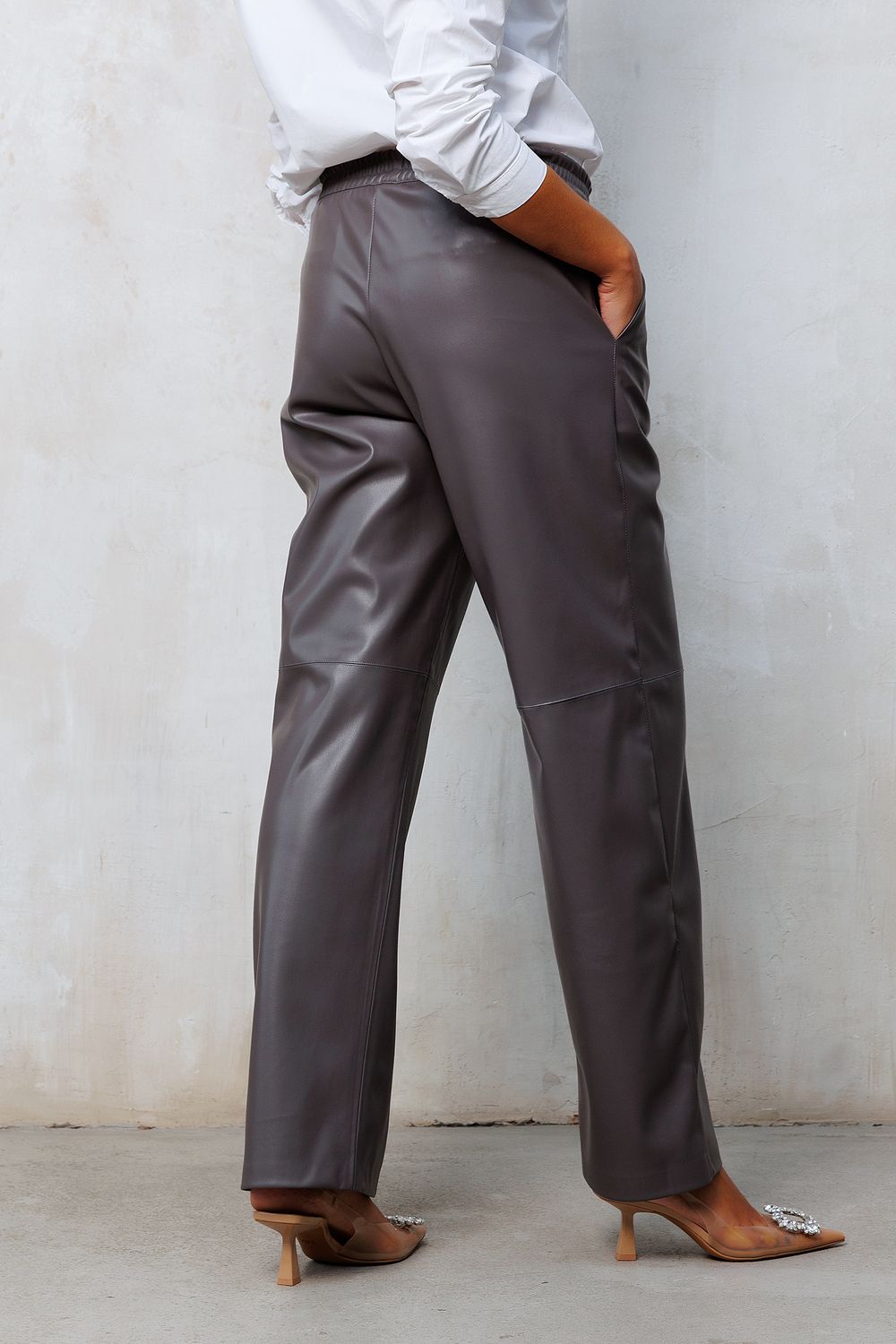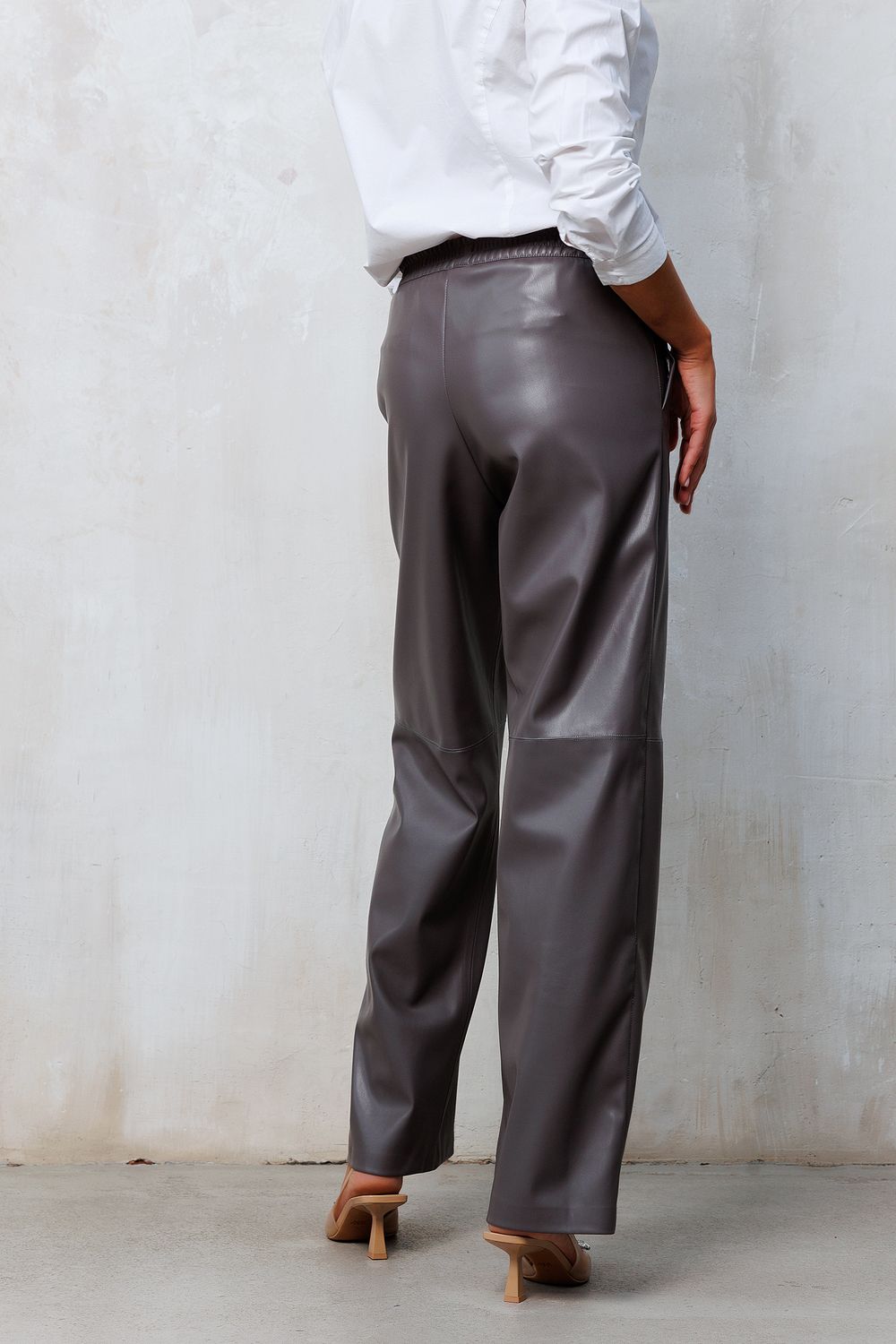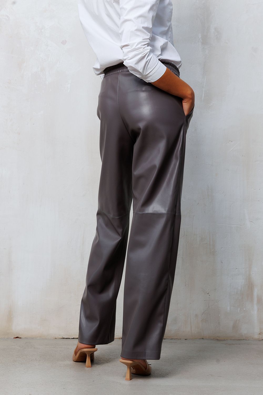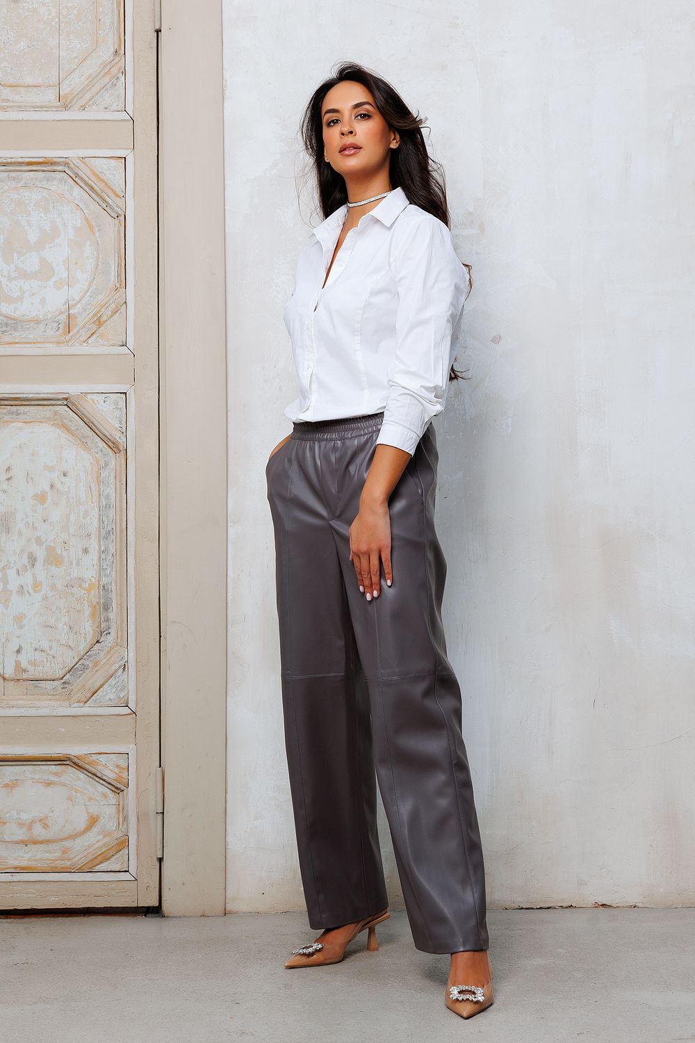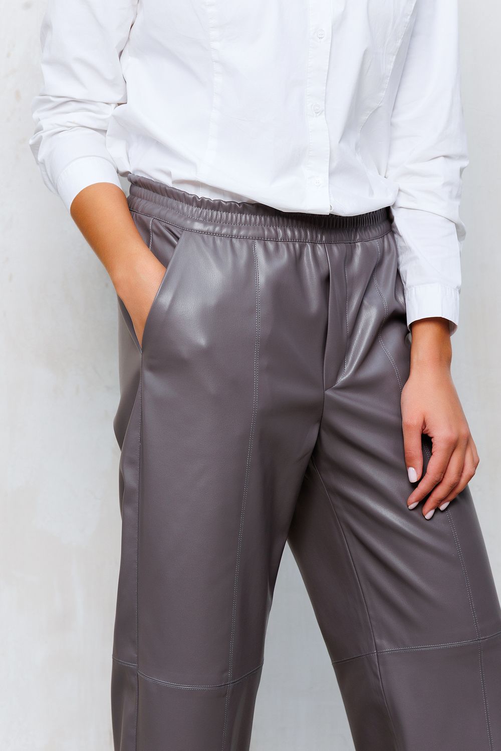 Кожаные модные штаны на резинке утягивают силуэт, подчеркивая все достоинства фигуры и скрывая недостатки. Они создают идеально пропорциональный и элегантный силуэт, который никого не оставит равнодушным. Крой этих солидных брюк даёт возможность насладиться свободой движений, не чувствуя дискомфорта.