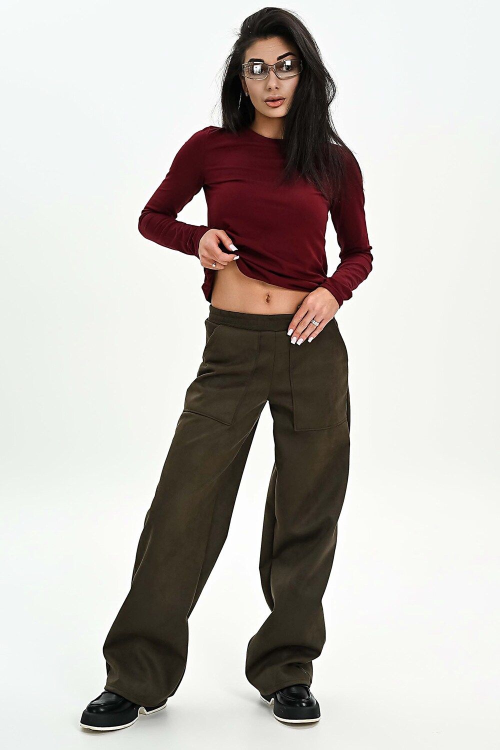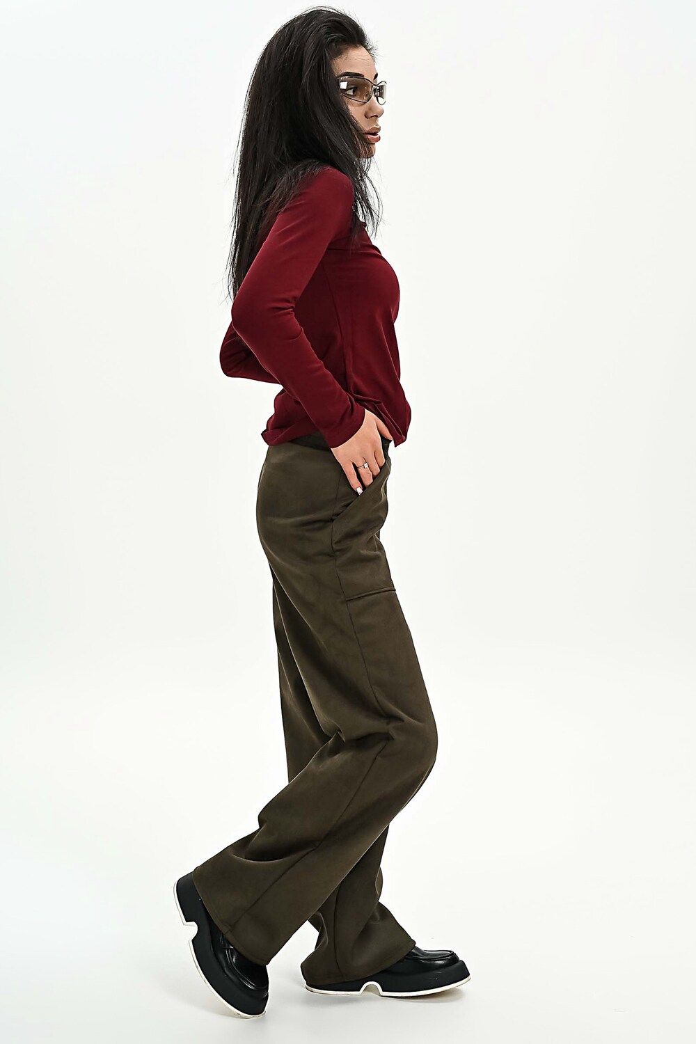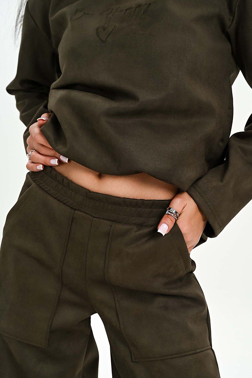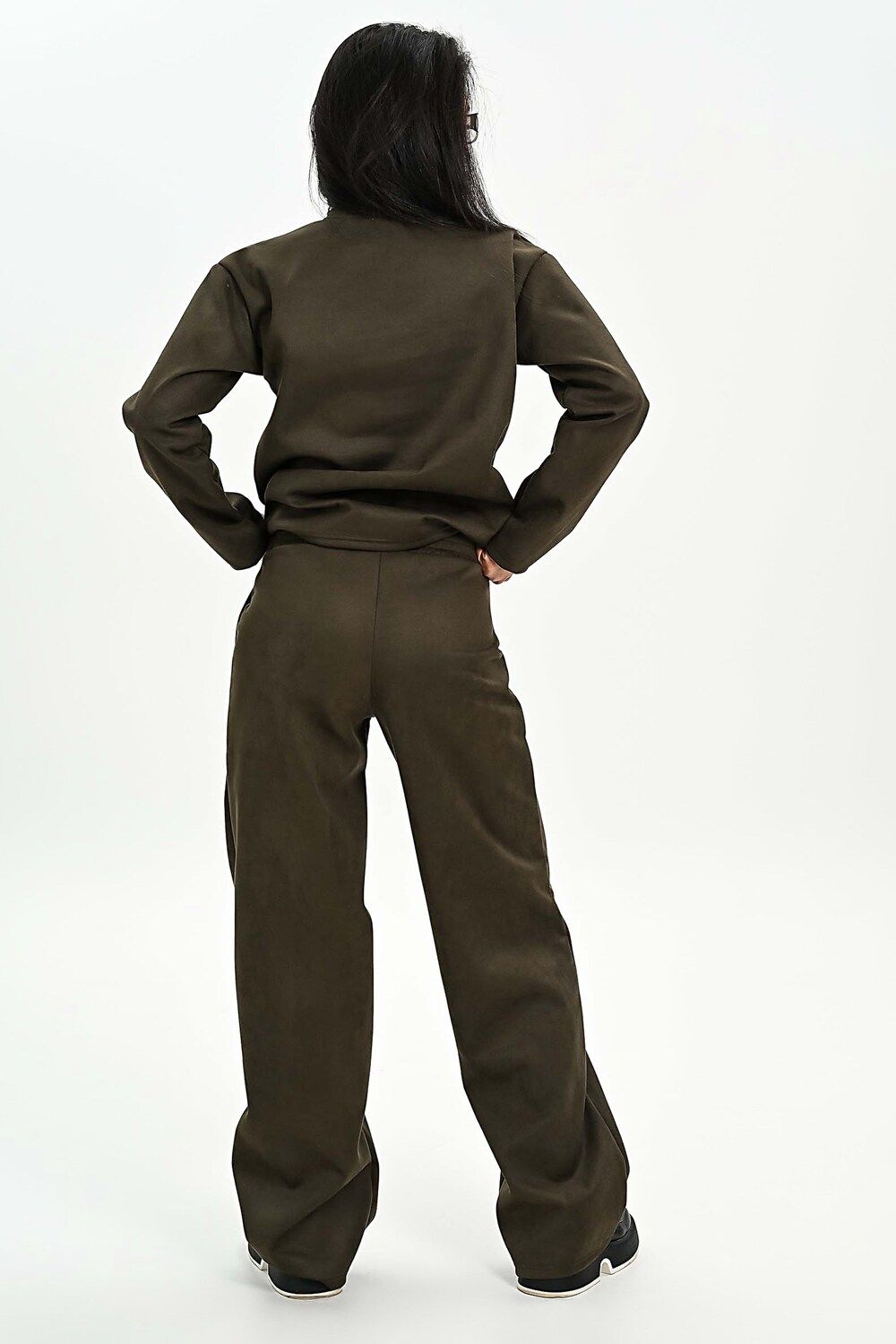 Брюки из мягкой эко замши - хаки