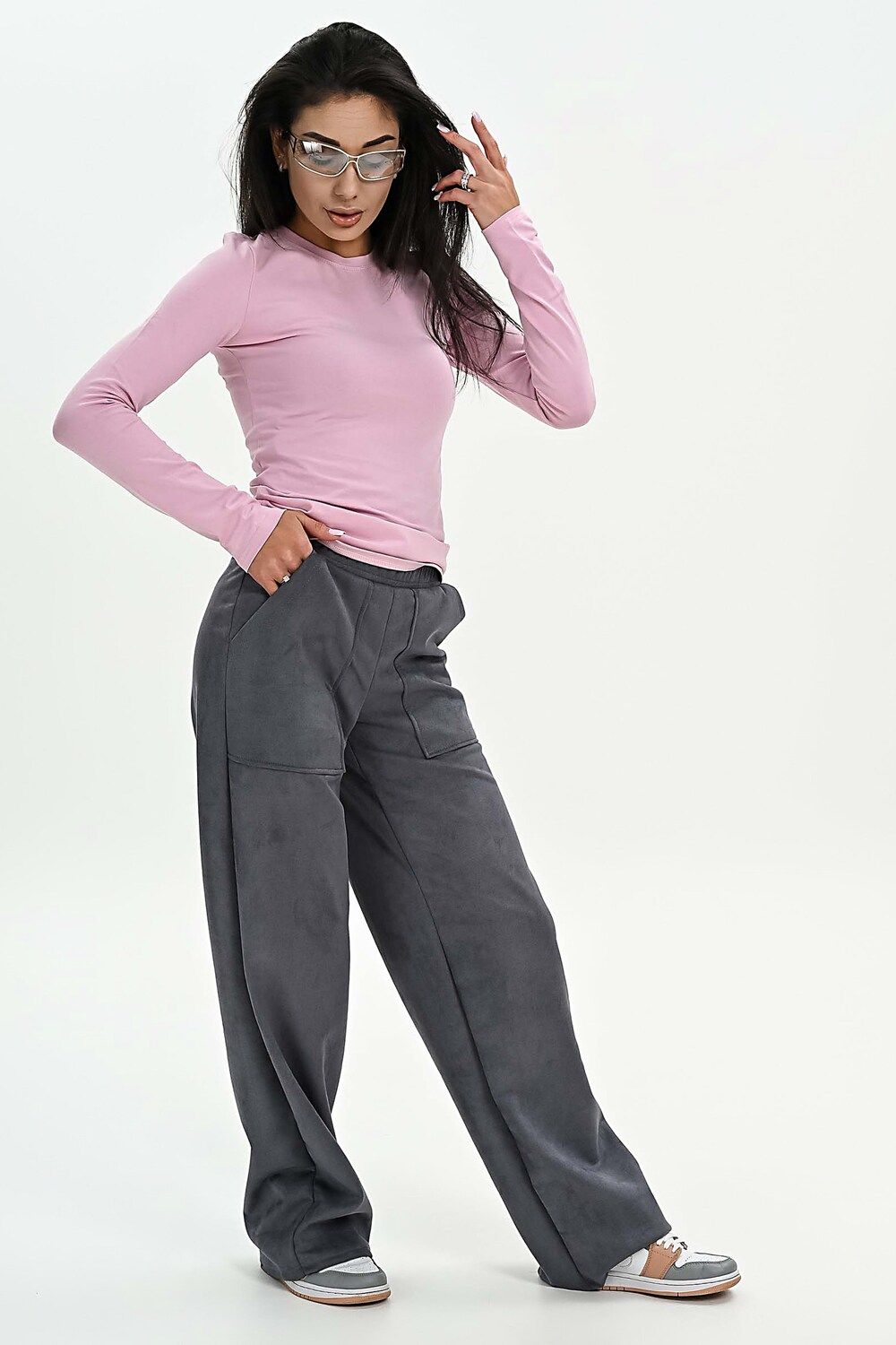 Брюки из мягкой эко замши - серый