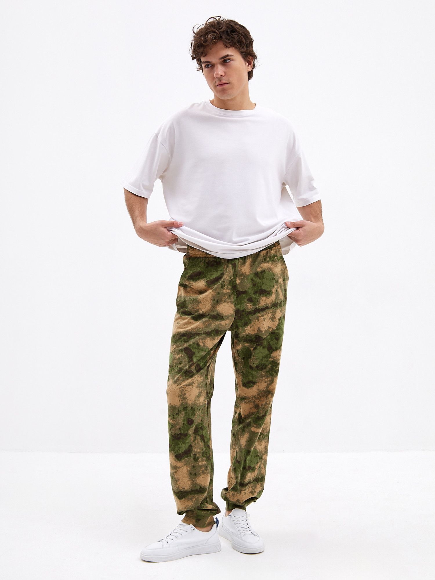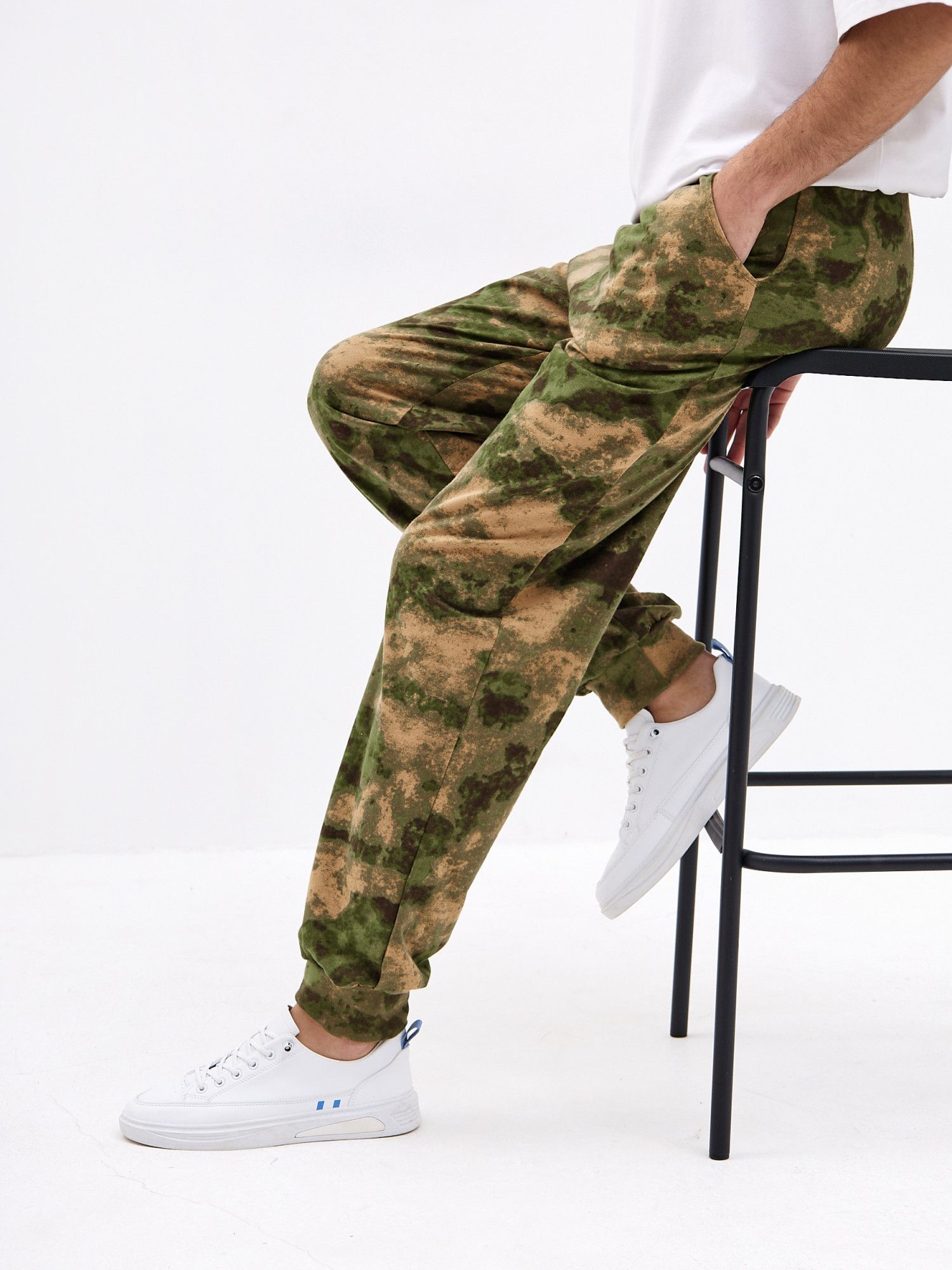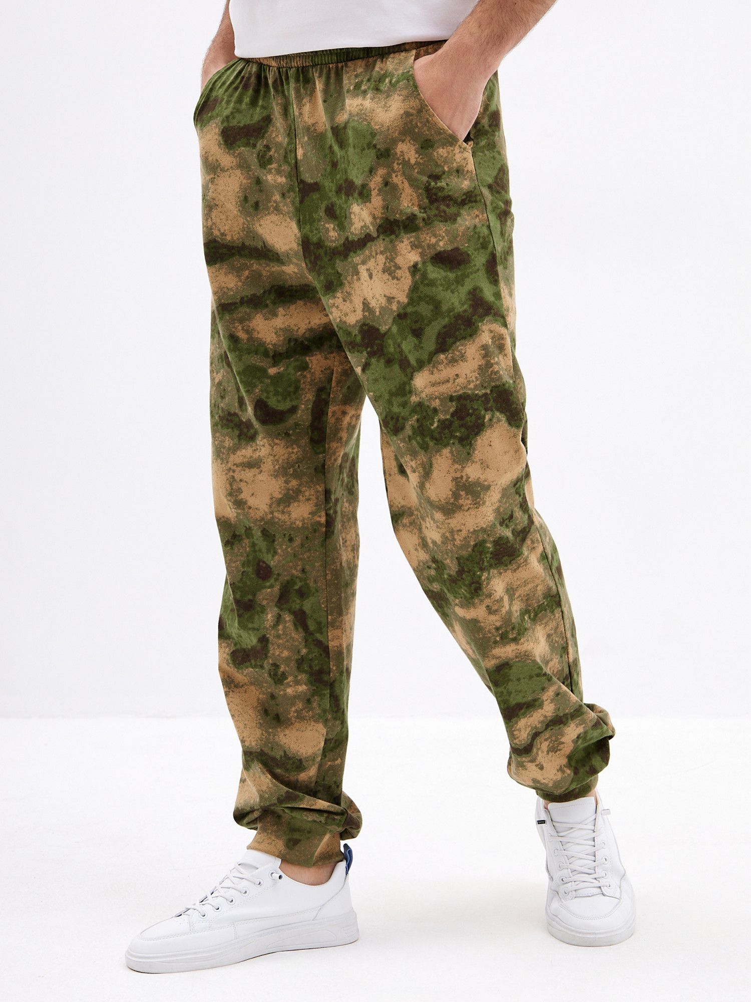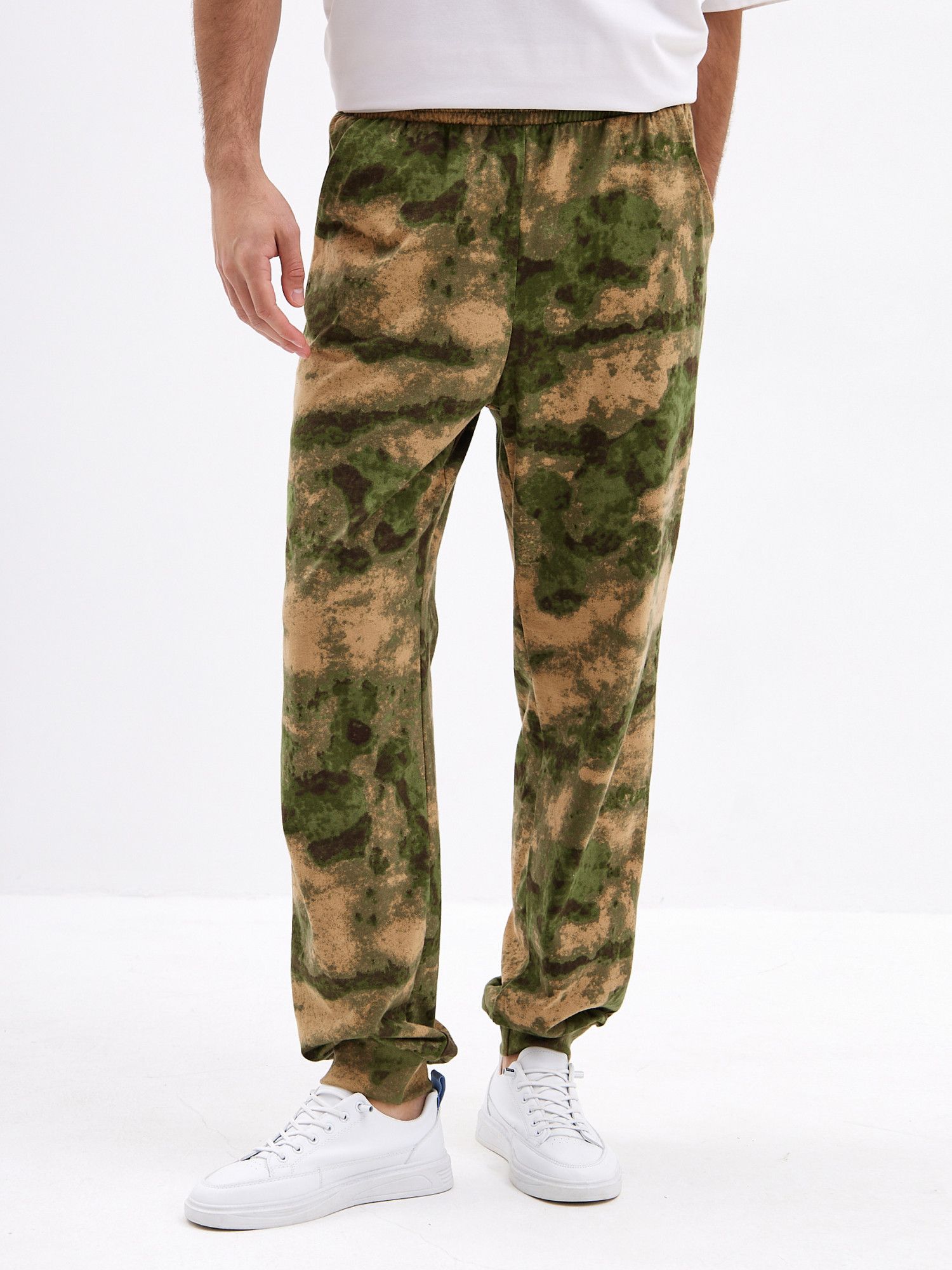 Хорошо сочетаются с Футболкой 'Манчестер' арт. Ф-37 и толстовкой 'Манчестер' арт.ТМ-15 Трикотажные брюки с камуфляжным принтом отлично подойдут для поездок на дачу или в качестве удобной домашней одежды. Брюки свободного кроя не сковывают движений и позволяют с комфортом заниматься домашними делами или активным отдыхом. Две пары карманов помогут взять с собой нужные мелочи, а удобная резинка на штанинах не позволяет им задираться. Мужские трикотажные брюки из натурального хлопка с эластичной резинкой на поясе - отличное дополнение к базовому гардеробу. Брюки камуфляж с двумя комфортными карманами для разного рода мелочей. Джоггеры камуфляж с манжетой внизу из рибаны в цвет ткани очень практичны,так как брюки оказываются зафиксированы на ноге и не задираются. .Брюки хаки обеспечивает полную свободу движений и комфорт на занятиях и активном отдыхе.Подойдут для повседневного использования, прогулок, поездок на отдых.Будут вас радовать долгое время