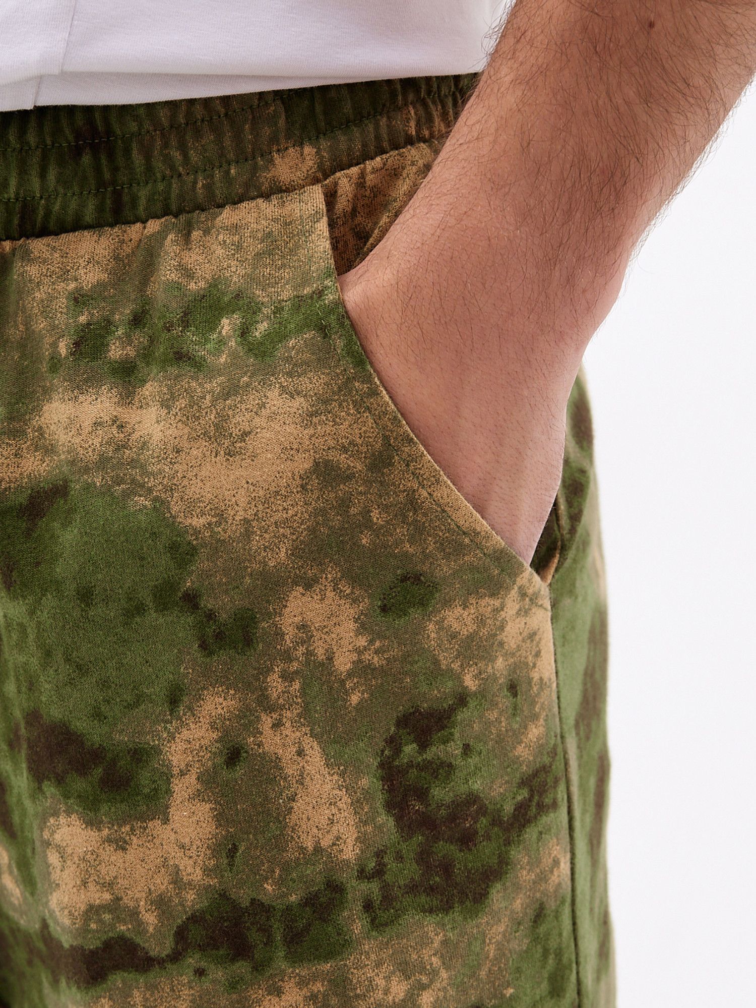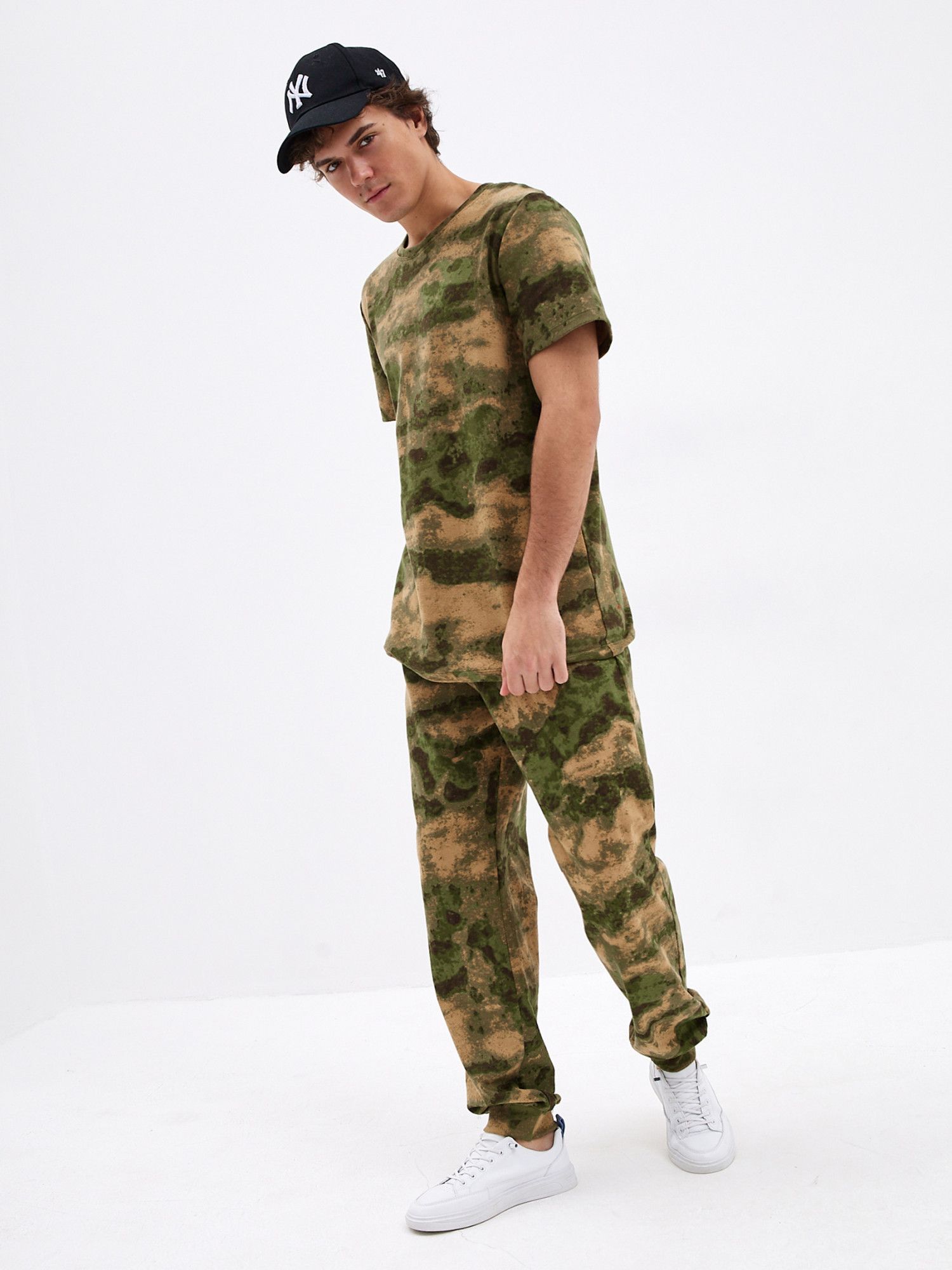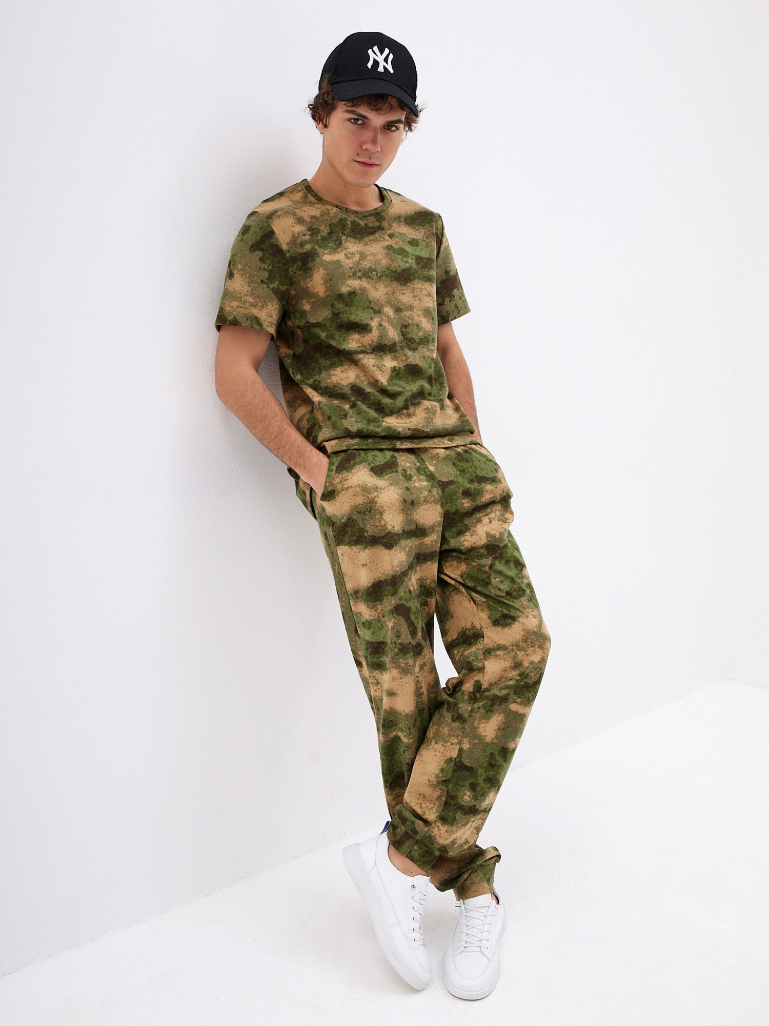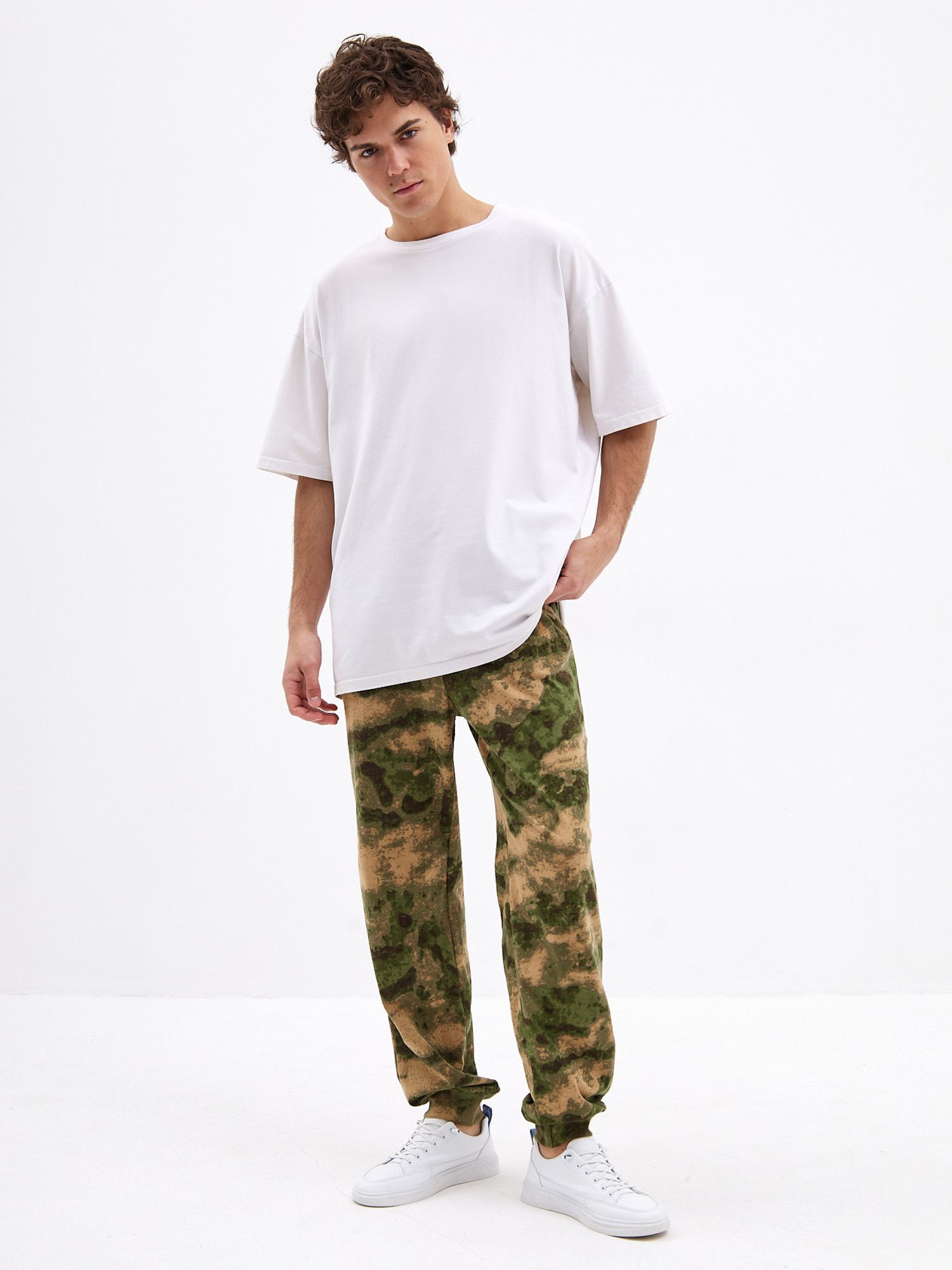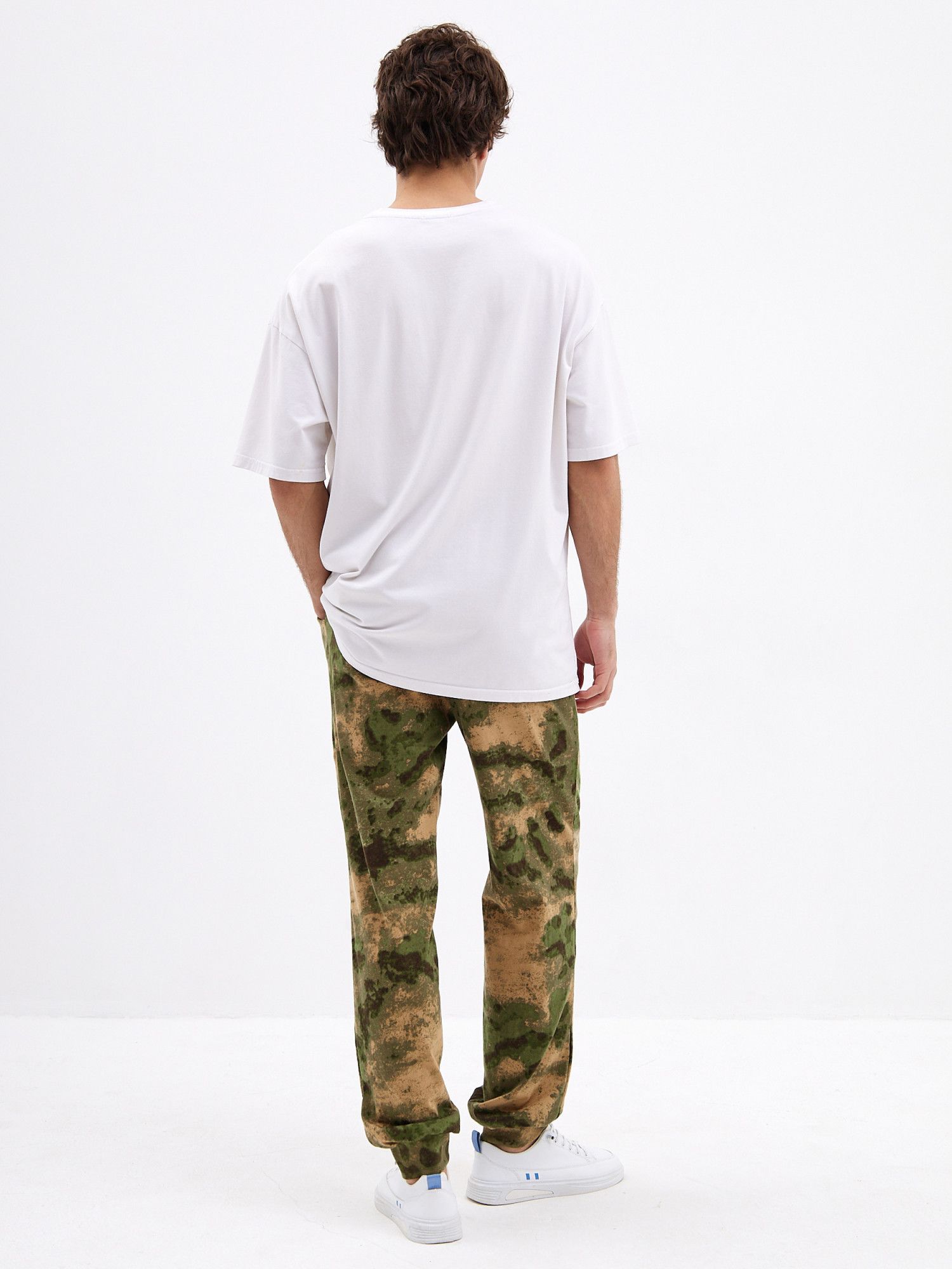 Хорошо сочетаются с Футболкой 'Манчестер' арт. Ф-37 и толстовкой 'Манчестер' арт.ТМ-15 Трикотажные брюки с камуфляжным принтом отлично подойдут для поездок на дачу или в качестве удобной домашней одежды. Брюки свободного кроя не сковывают движений и позволяют с комфортом заниматься домашними делами или активным отдыхом. Две пары карманов помогут взять с собой нужные мелочи, а удобная резинка на штанинах не позволяет им задираться. Мужские трикотажные брюки из натурального хлопка с эластичной резинкой на поясе - отличное дополнение к базовому гардеробу. Брюки камуфляж с двумя комфортными карманами для разного рода мелочей. Джоггеры камуфляж с манжетой внизу из рибаны в цвет ткани очень практичны,так как брюки оказываются зафиксированы на ноге и не задираются. .Брюки хаки обеспечивает полную свободу движений и комфорт на занятиях и активном отдыхе.Подойдут для повседневного использования, прогулок, поездок на отдых.Будут вас радовать долгое время