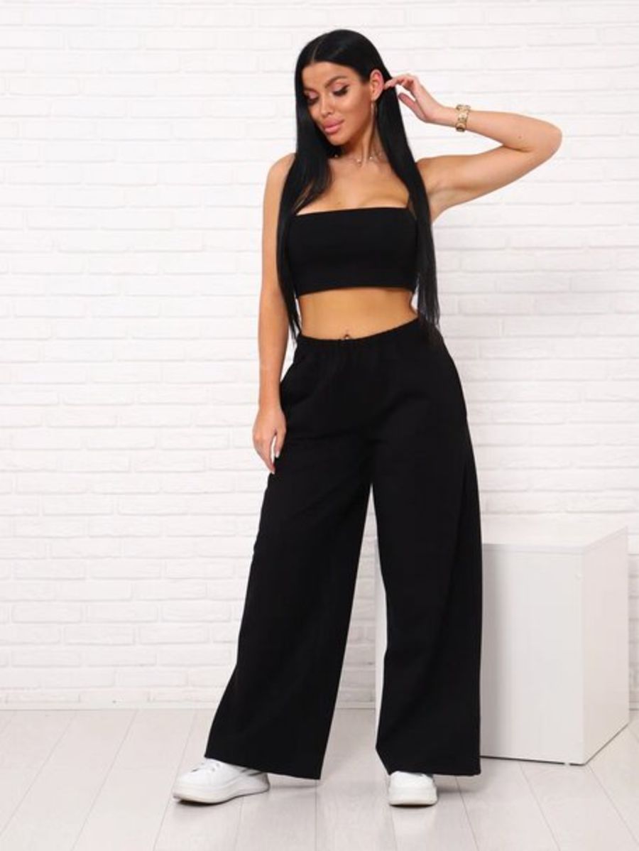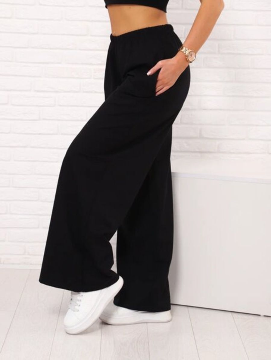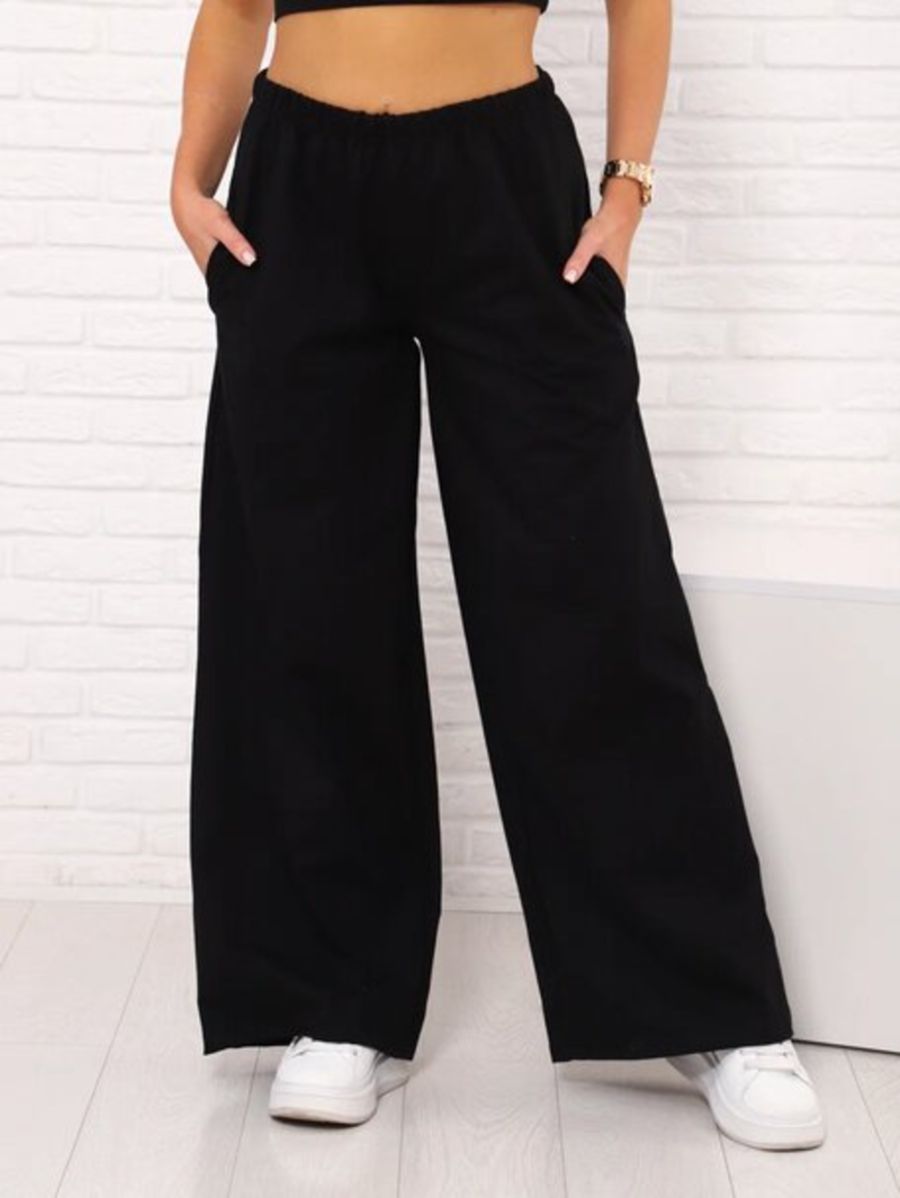 Брюки палаццо на резинке, Арт. 812 - черный