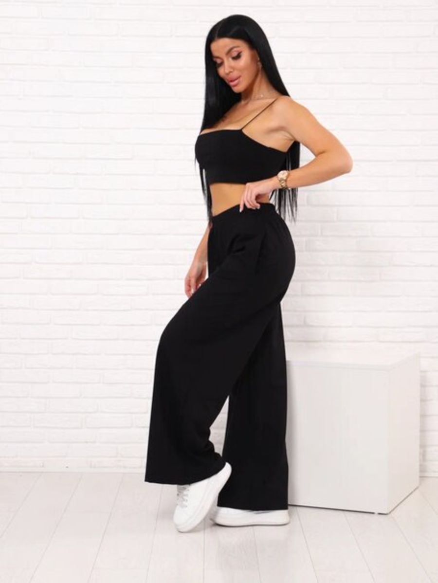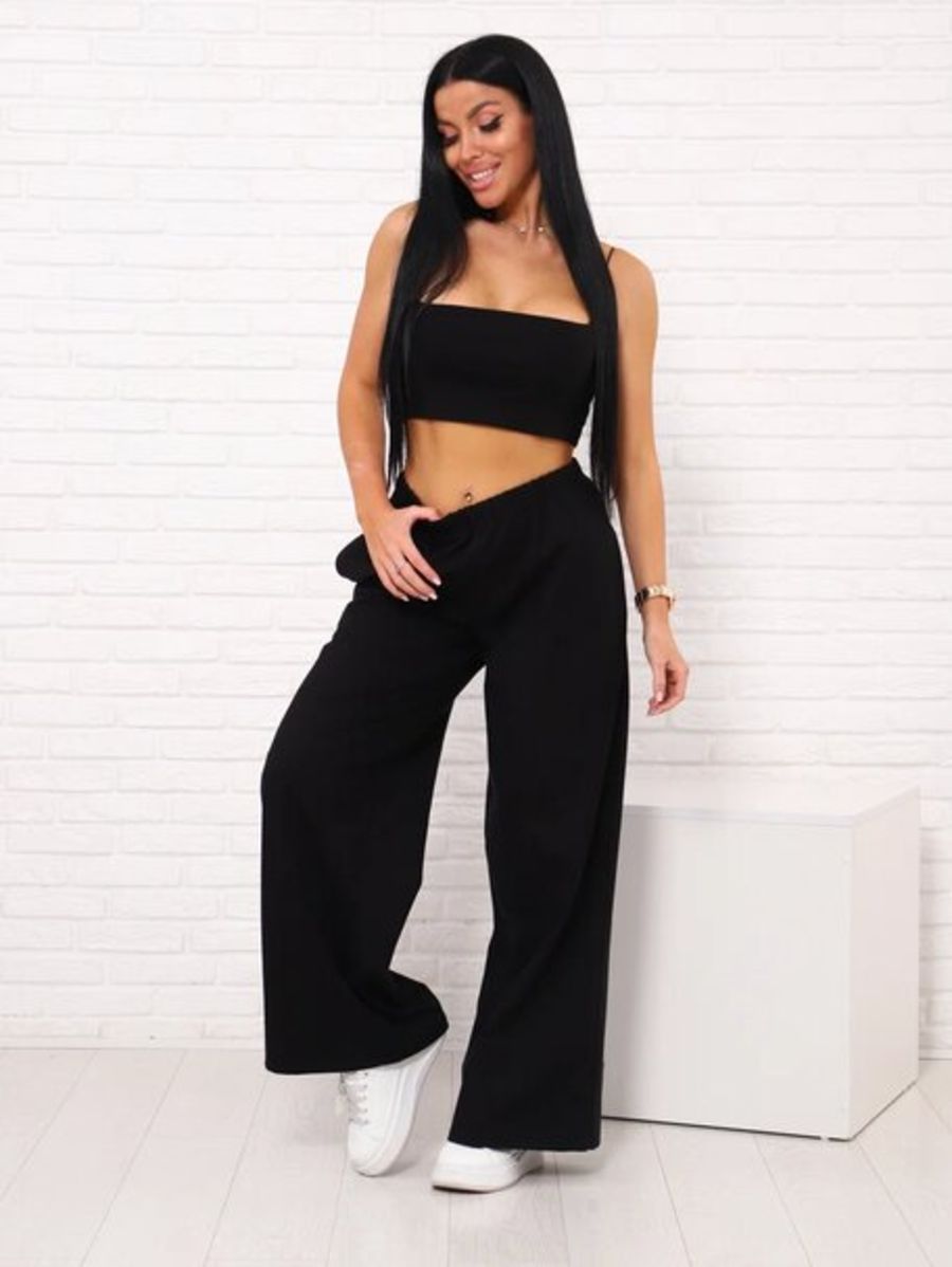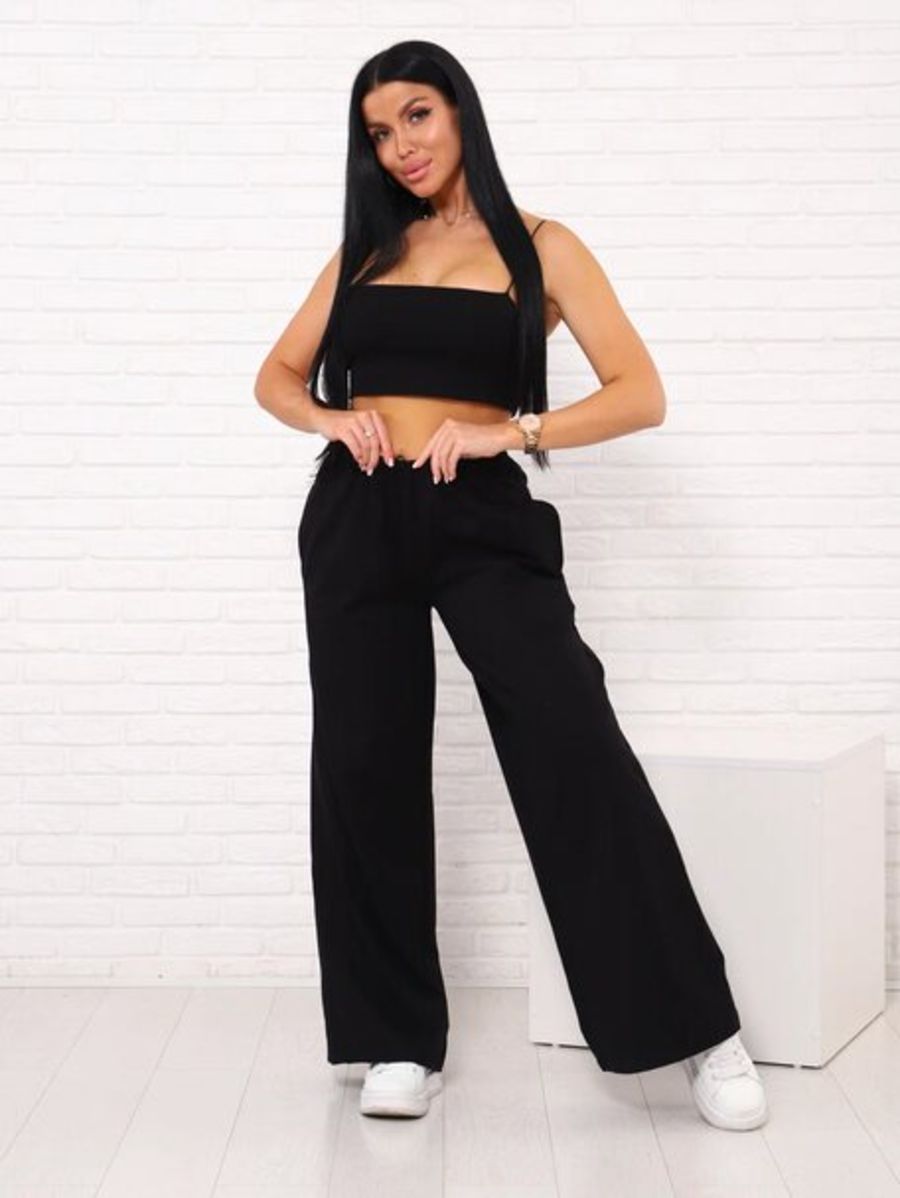 Брюки палаццо на резинке, Арт. 812 - черный