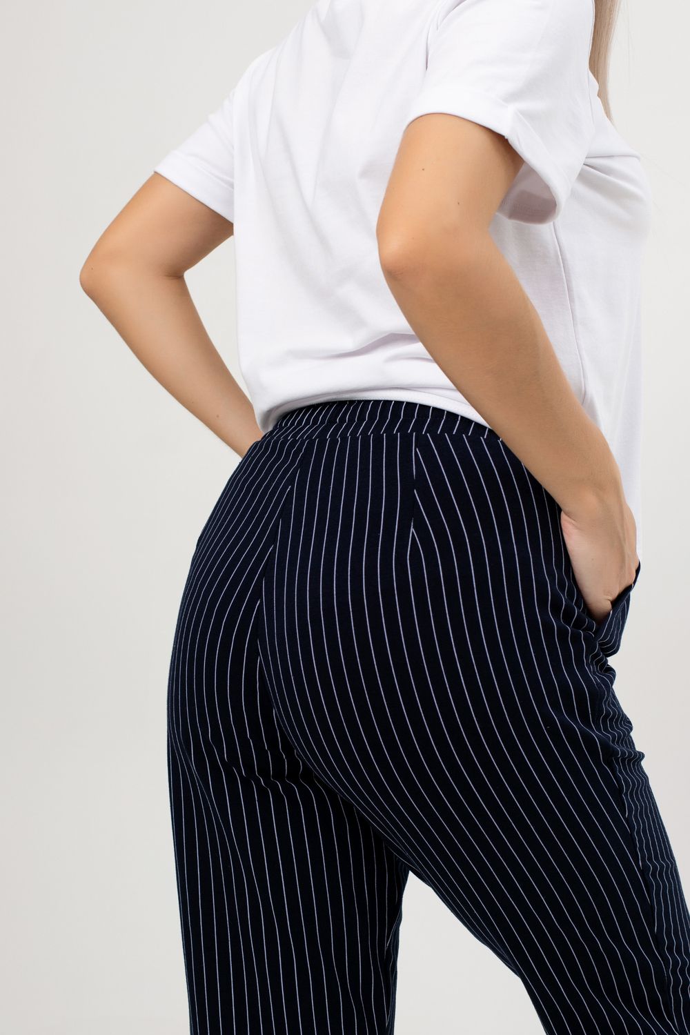 Брюки Силуэт полоска - темно-синий/голубая полоска