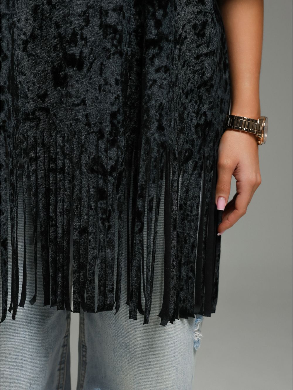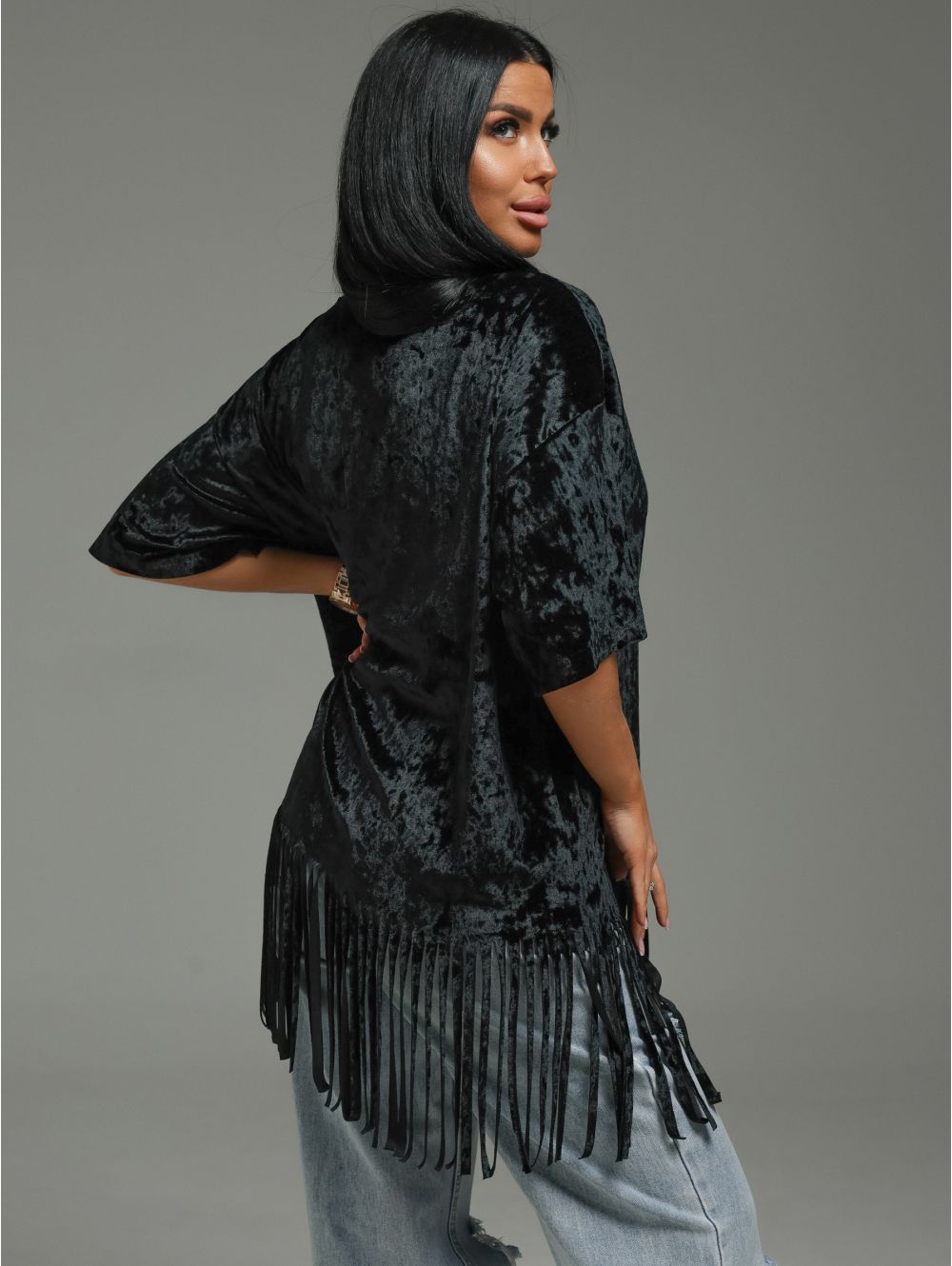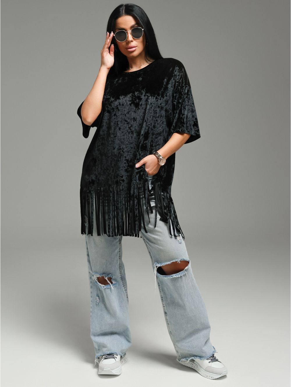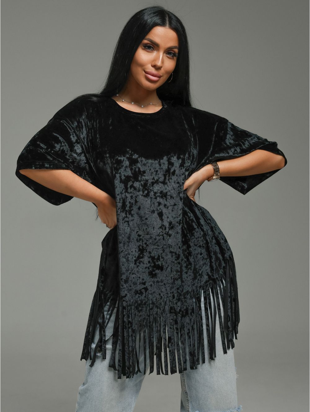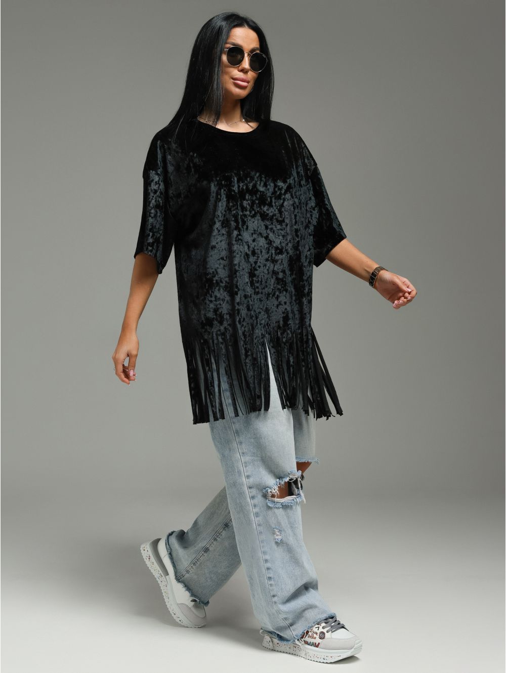 Футболка oversize с коротким втачным рукавом. По низу футболки бахрома.