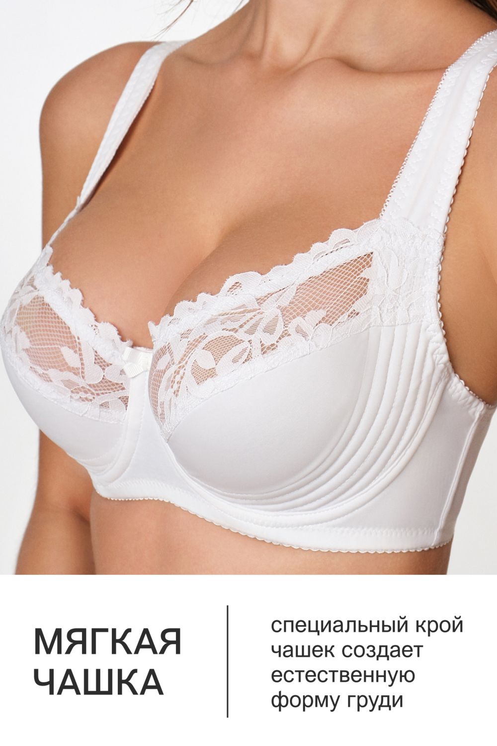 Бюстгальтер создан для поддержки груди больших размеров. Модель оснащена косточками, которые фиксируют форму, и регулируемой спинкой для точной настройки по фигуре. Чаши из дышащего материала с декоративными элементами из кружева обеспечивают комфорт в течение дня.
