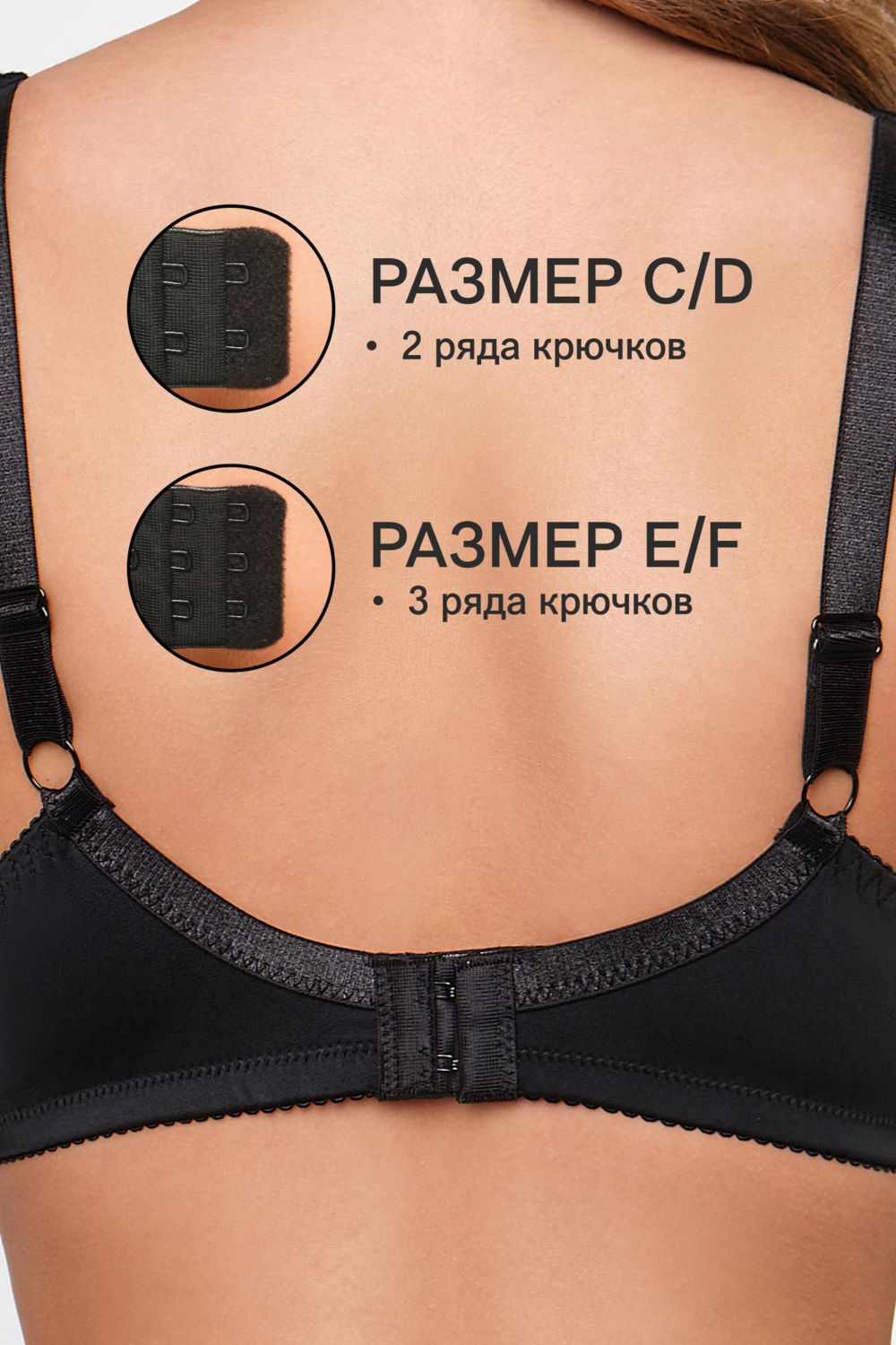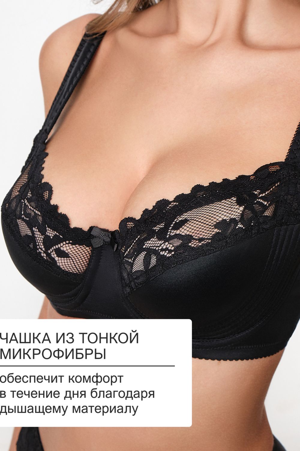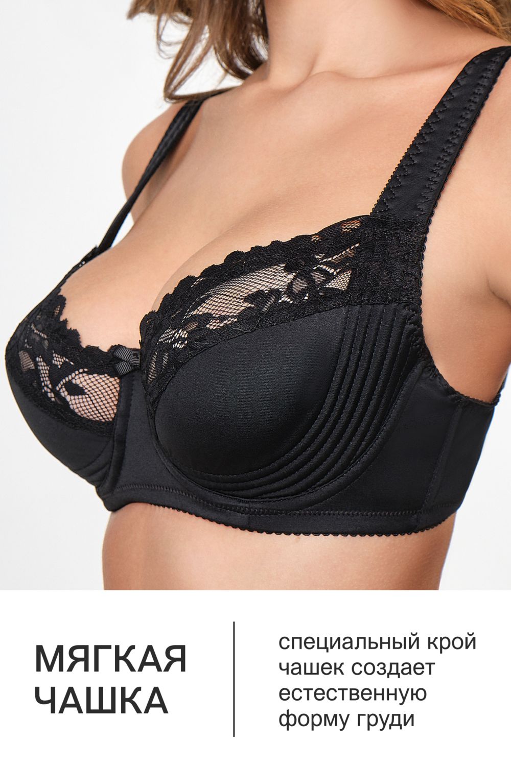 Бюстгальтер создан для поддержки груди больших размеров. Модель оснащена косточками, которые фиксируют форму, и регулируемой спинкой для точной настройки по фигуре. Чаши из дышащего материала с декоративными элементами из кружева обеспечивают комфорт в течение дня.