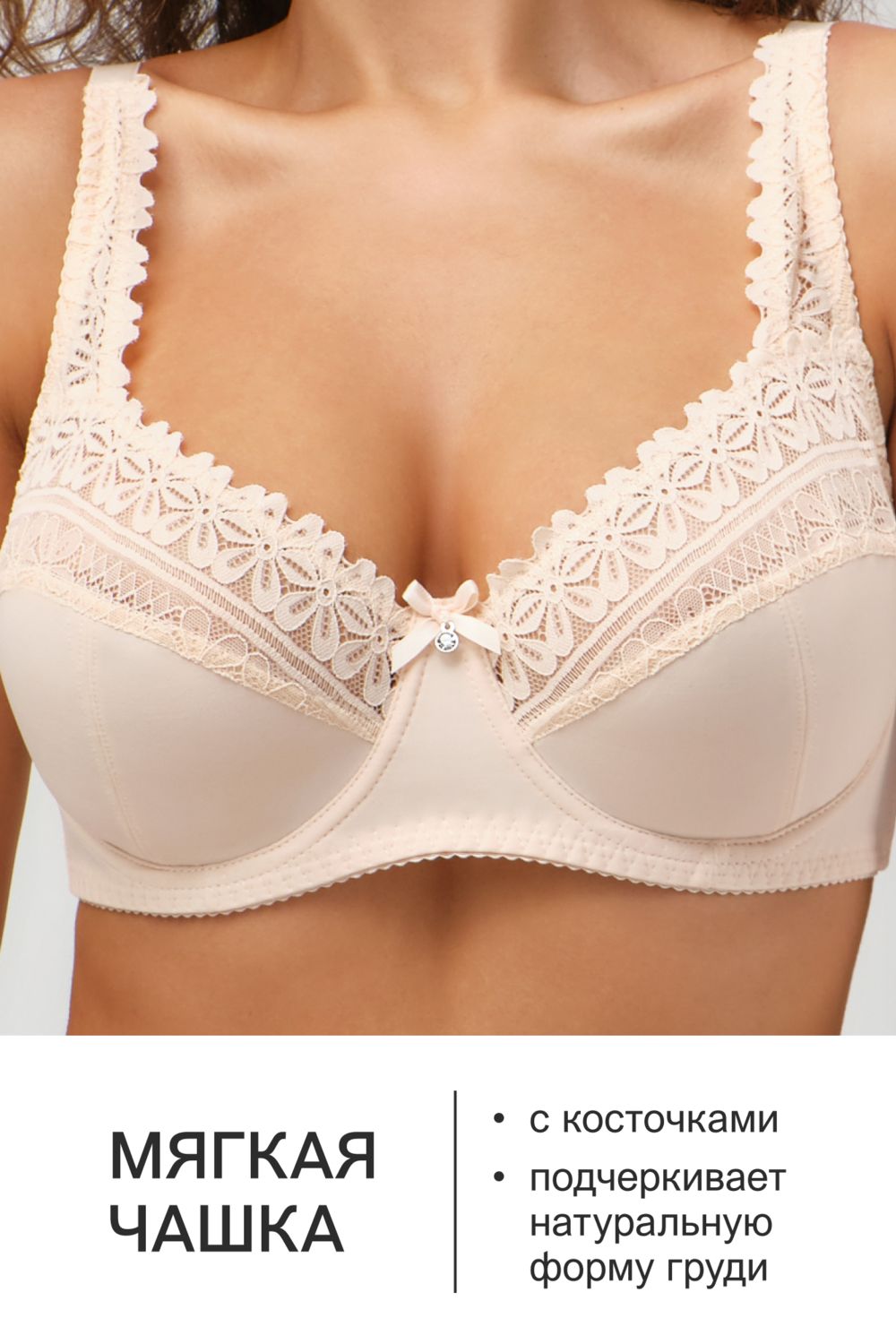 Бюстгальтер Pino 1539 OIRO кружевной 1 шт - бежевый