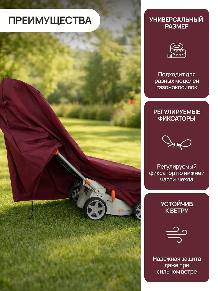 Чехол для газонокосилки — практичный уличный чехол для техники, который обеспечивает надежную защиту, удобное хранение и долговечность вашей садовой техники.