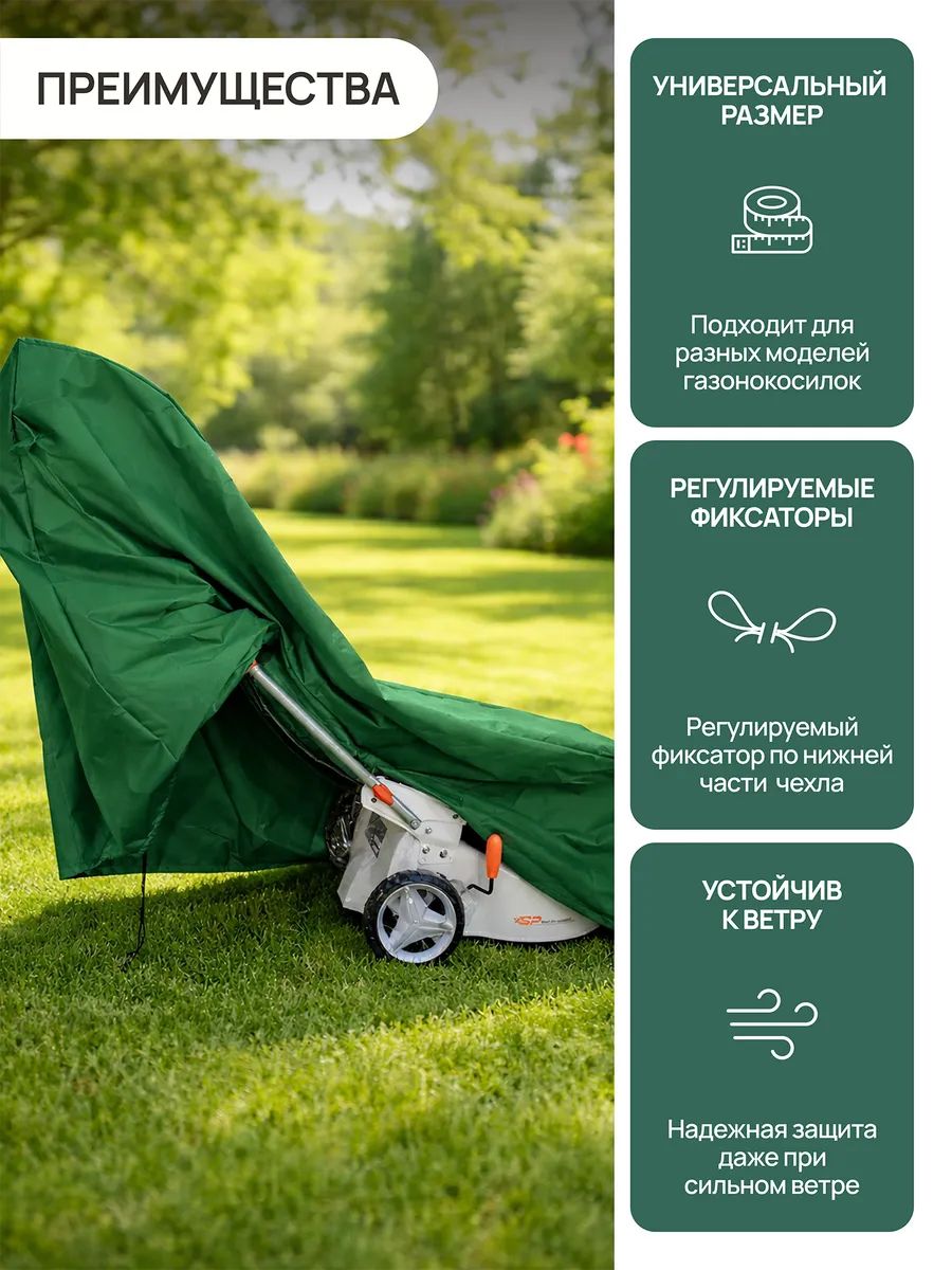 Чехол для газонокосилки — практичный уличный чехол для техники, который обеспечивает надежную защиту, удобное хранение и долговечность вашей садовой техники.
