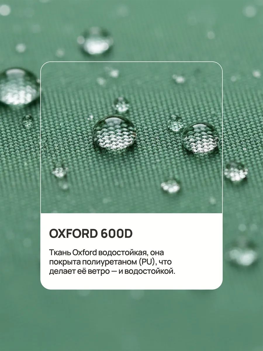 Он изготовлен из прочной ткани Oxford 600D которая не выгорает на солнце и сохраняет форму при длительном использовании на улице. Ткань Oxford водостойкая, она покрыта полиуретаном (PU), что делает её ветро- и водостойкой. Тент для садовой техники не пропускает воду даже при сильном дожде, защищает от выгорания на солнце и сохраняет свои свойства при перепадах температур. Уличный чехол для техники эффективно предотвращает коррозию, загрязнения и преждевременный износ оборудования.