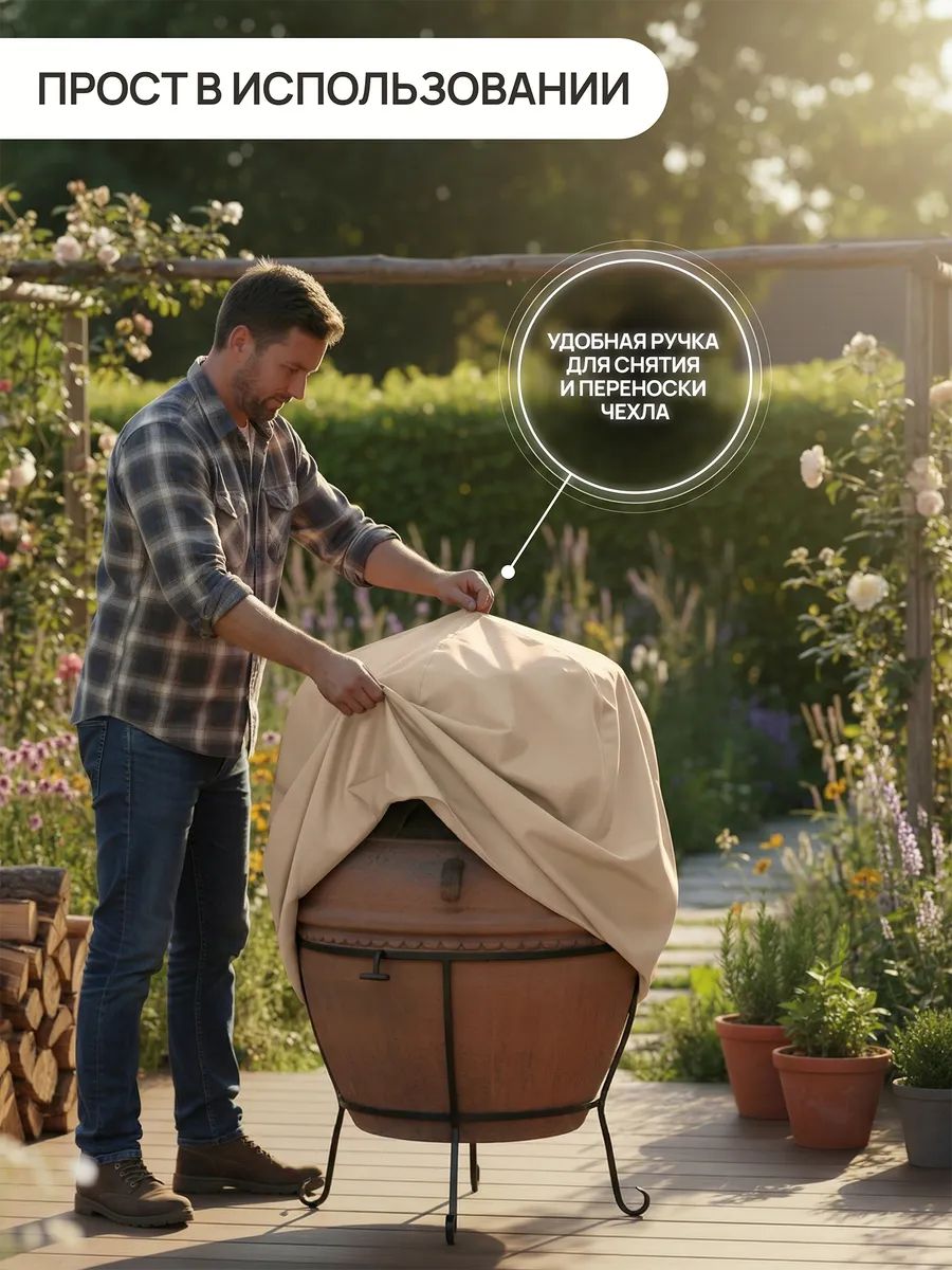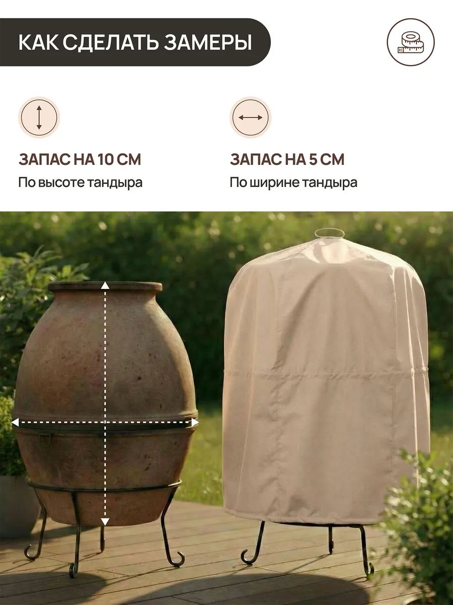 Чехол для тандыра водонепроницаемый 75х105 см — надежная защита тандыра от дождя, снега, влаги, солнца, пыли и грязи. Уличный чехол на тандыр продлевает срок службы печи, предотвращает растрескивание от влаги, образование плесени и выгорание от ультрафиолета. Тент на тандыр подходит для круглогодичного использования: летом защищает от солнца и пыли, зимой — от снега, мороза и осадков. Идеален для дачи, сада и загородного участка.