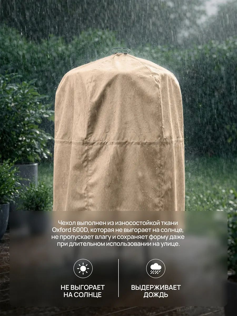 Чехол изготовлен из прочной ткани Oxford 600D которая не выгорает на солнце и сохраняет форму при длительном использовании на улице. Ткань Oxford водостойкая, она покрыта полиуретаном (PU), что делает её ветро- и водостойкой. Чехол защищает оборудование в любую погоду: от сильного дождя, снега, ветра и палящего солнца. Плотный чехол для тандыра сохраняет внешний вид и функциональность печи на долгие годы.