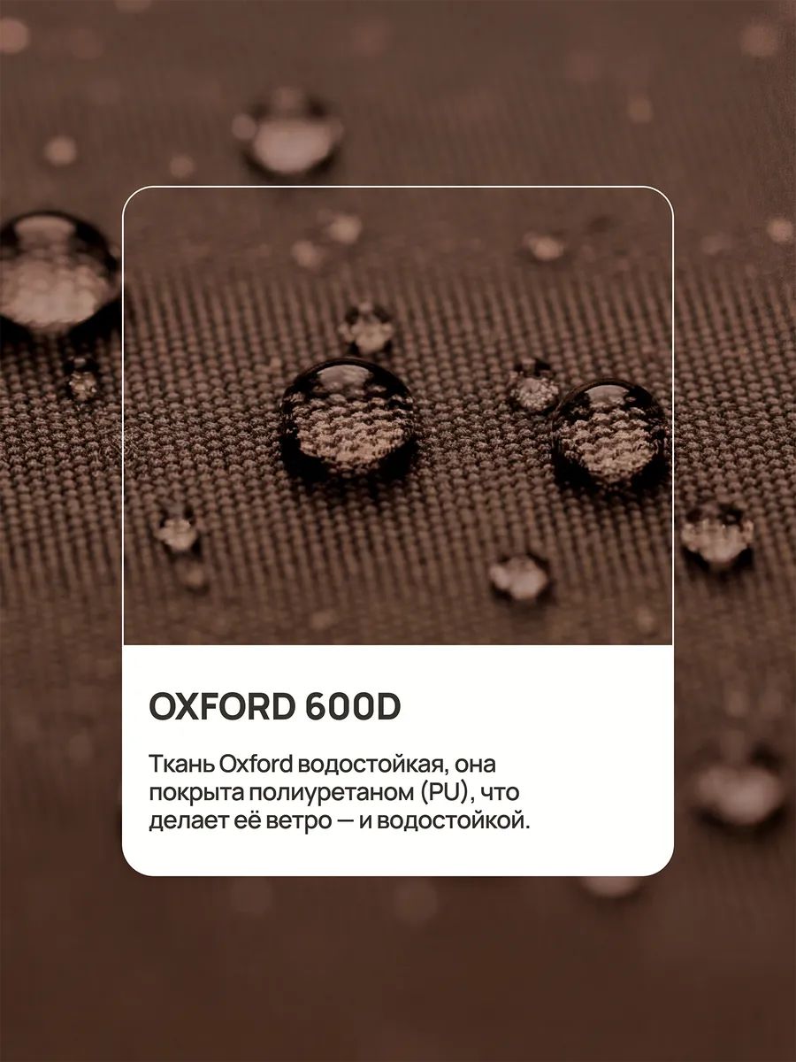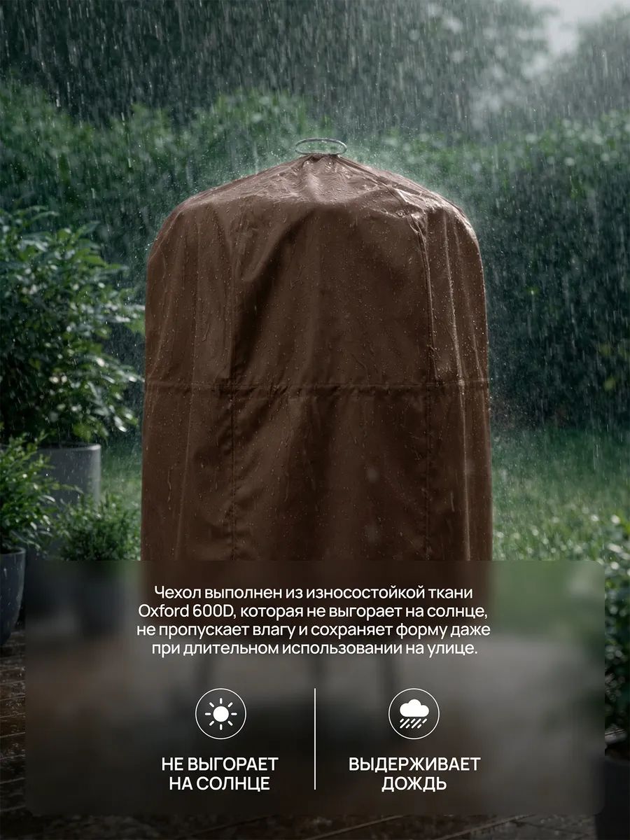 Чехол изготовлен из прочной ткани Oxford 600D которая не выгорает на солнце и сохраняет форму при длительном использовании на улице. Ткань Oxford водостойкая, она покрыта полиуретаном (PU), что делает её ветро- и водостойкой. Чехол защищает оборудование в любую погоду: от сильного дождя, снега, ветра и палящего солнца. Плотный чехол для тандыра сохраняет внешний вид и функциональность печи на долгие годы.