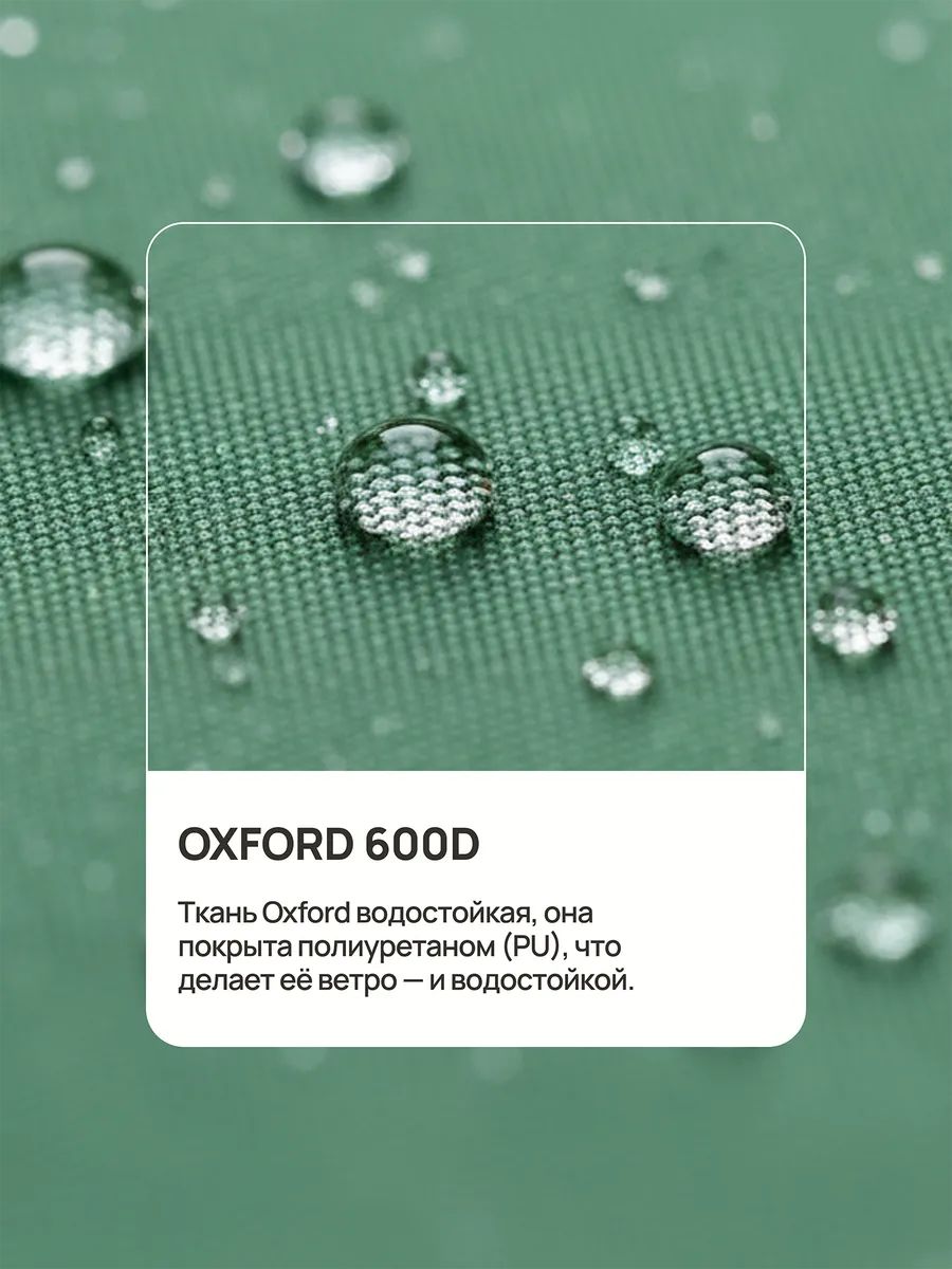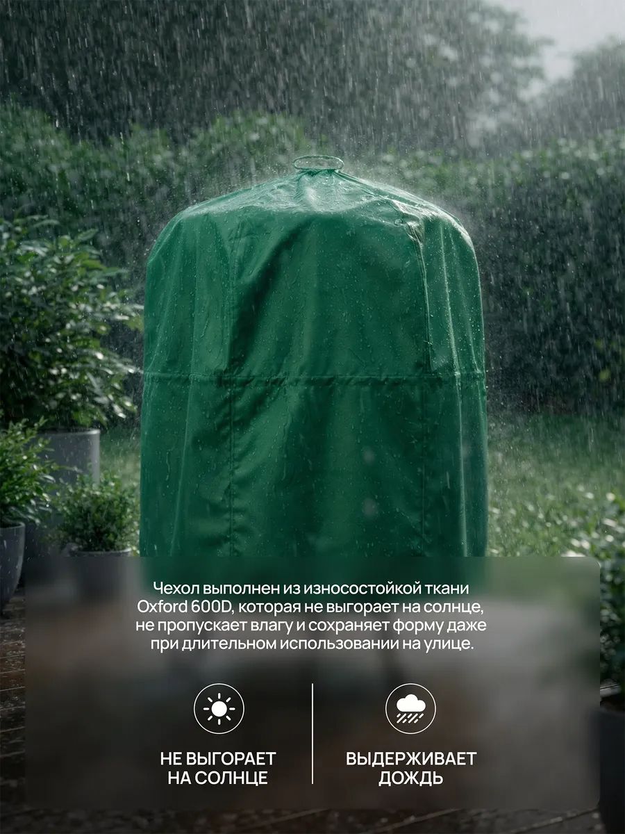Чехол изготовлен из прочной ткани Oxford 600D которая не выгорает на солнце и сохраняет форму при длительном использовании на улице. Ткань Oxford водостойкая, она покрыта полиуретаном (PU), что делает её ветро- и водостойкой. Чехол защищает оборудование в любую погоду: от сильного дождя, снега, ветра и палящего солнца. Плотный чехол для тандыра сохраняет внешний вид и функциональность печи на долгие годы.