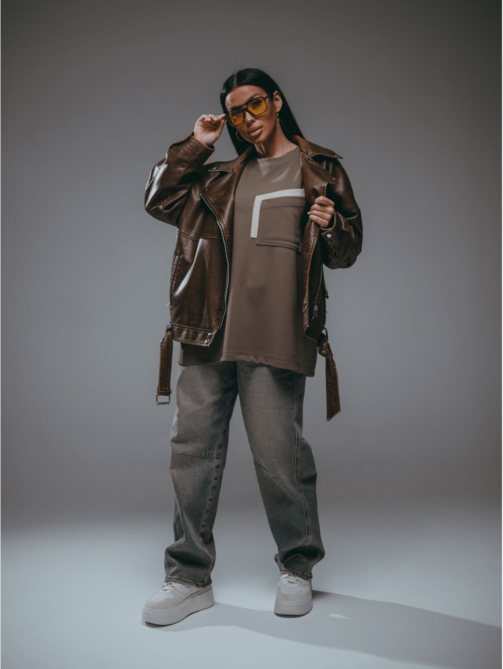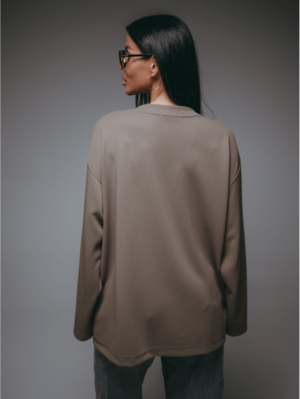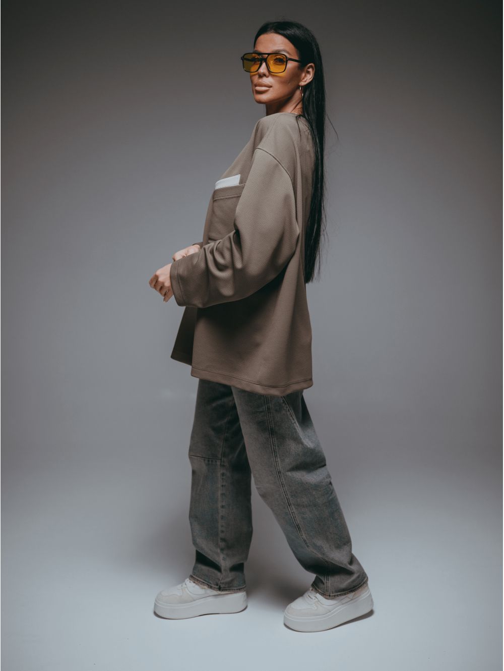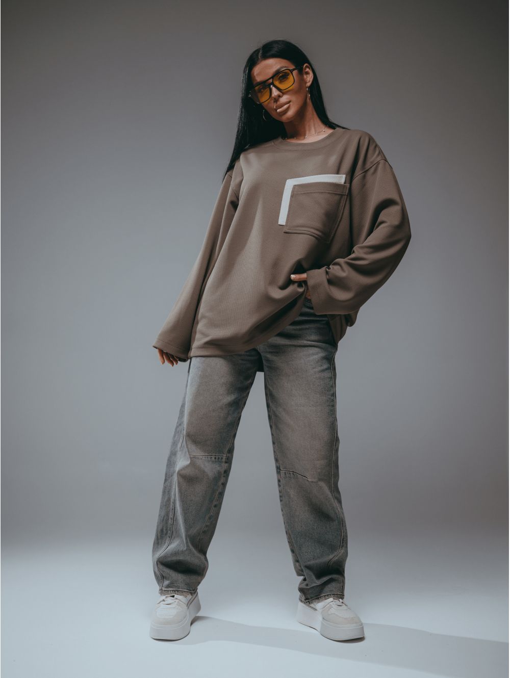 Свитшот прямой - оверсайз со спущенным плечом и длинным втачным рукавом.