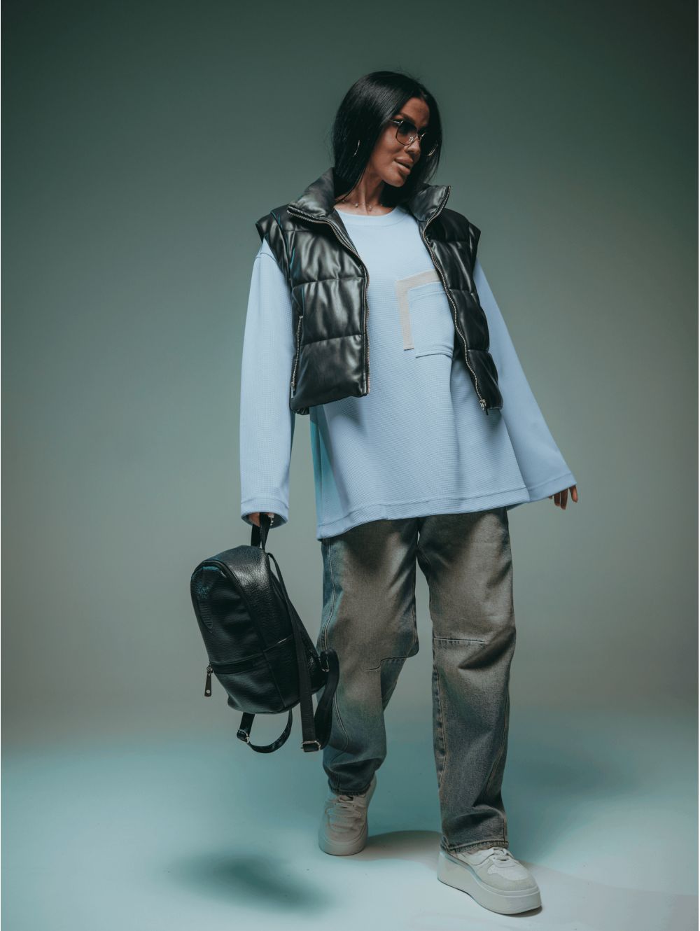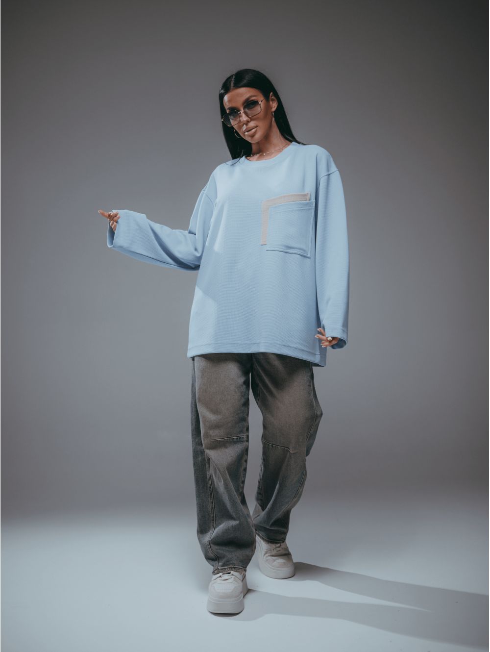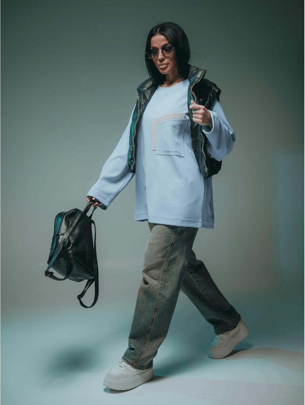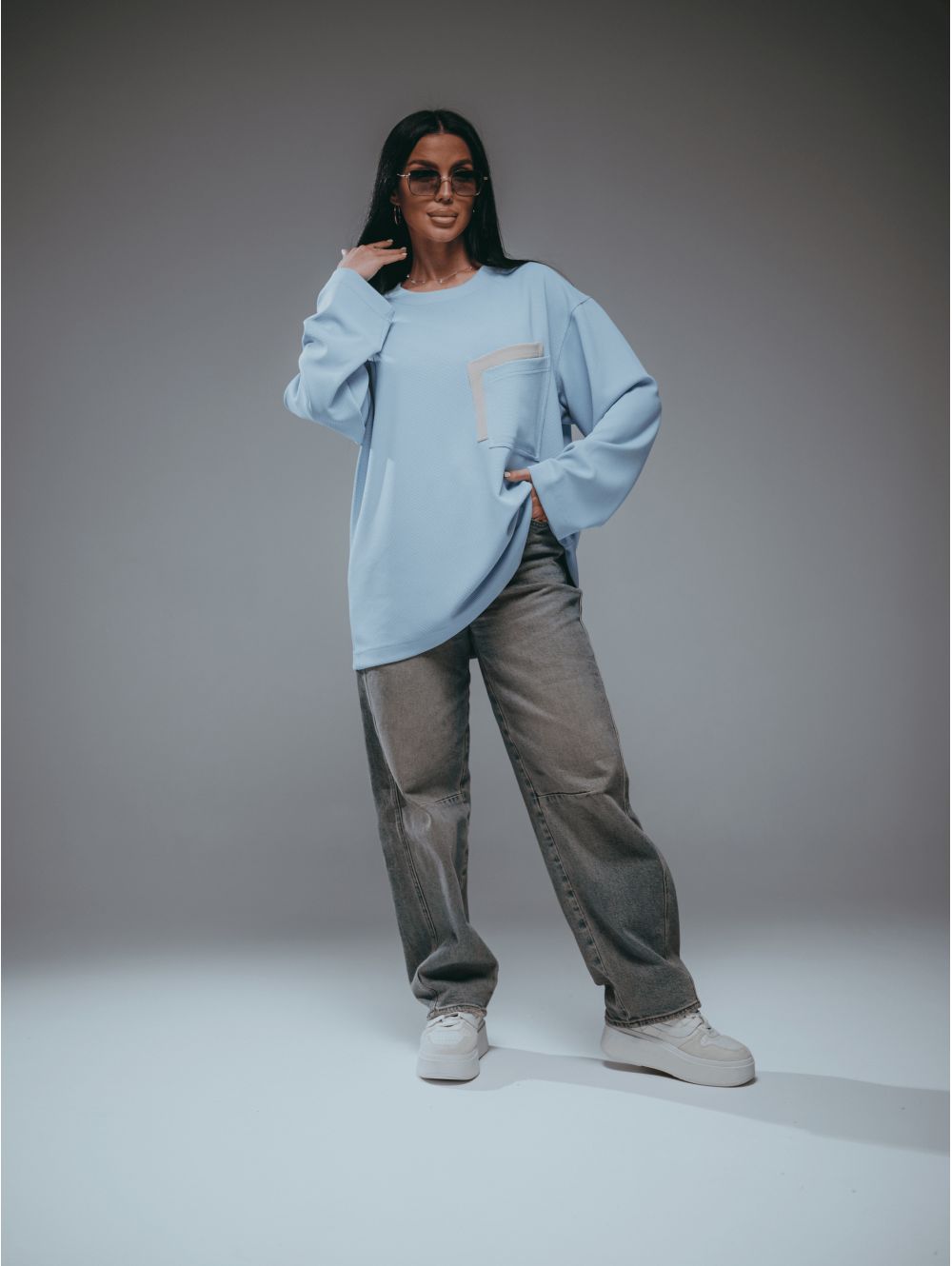 Свитшот прямой - оверсайз со спущенным плечом и длинным втачным рукавом.