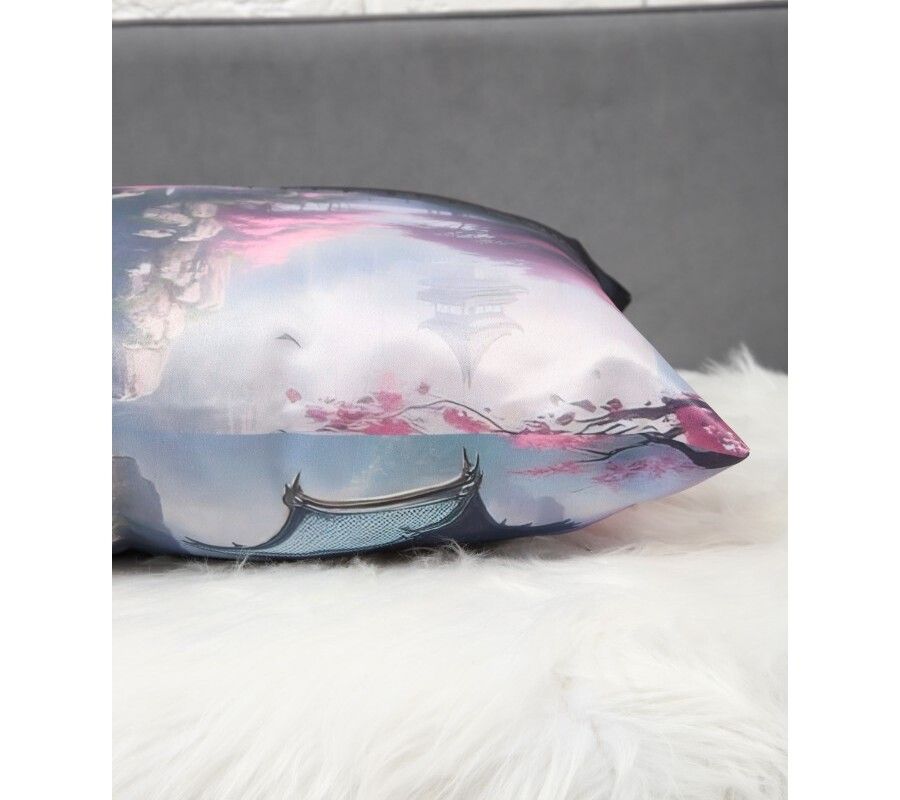Декоративная интерьерная атласная наволочка "Японский садик" на потайной молнии. Размер 40х60 см. Подходит подушка размером 40х60 см, можно купить в комплекте.