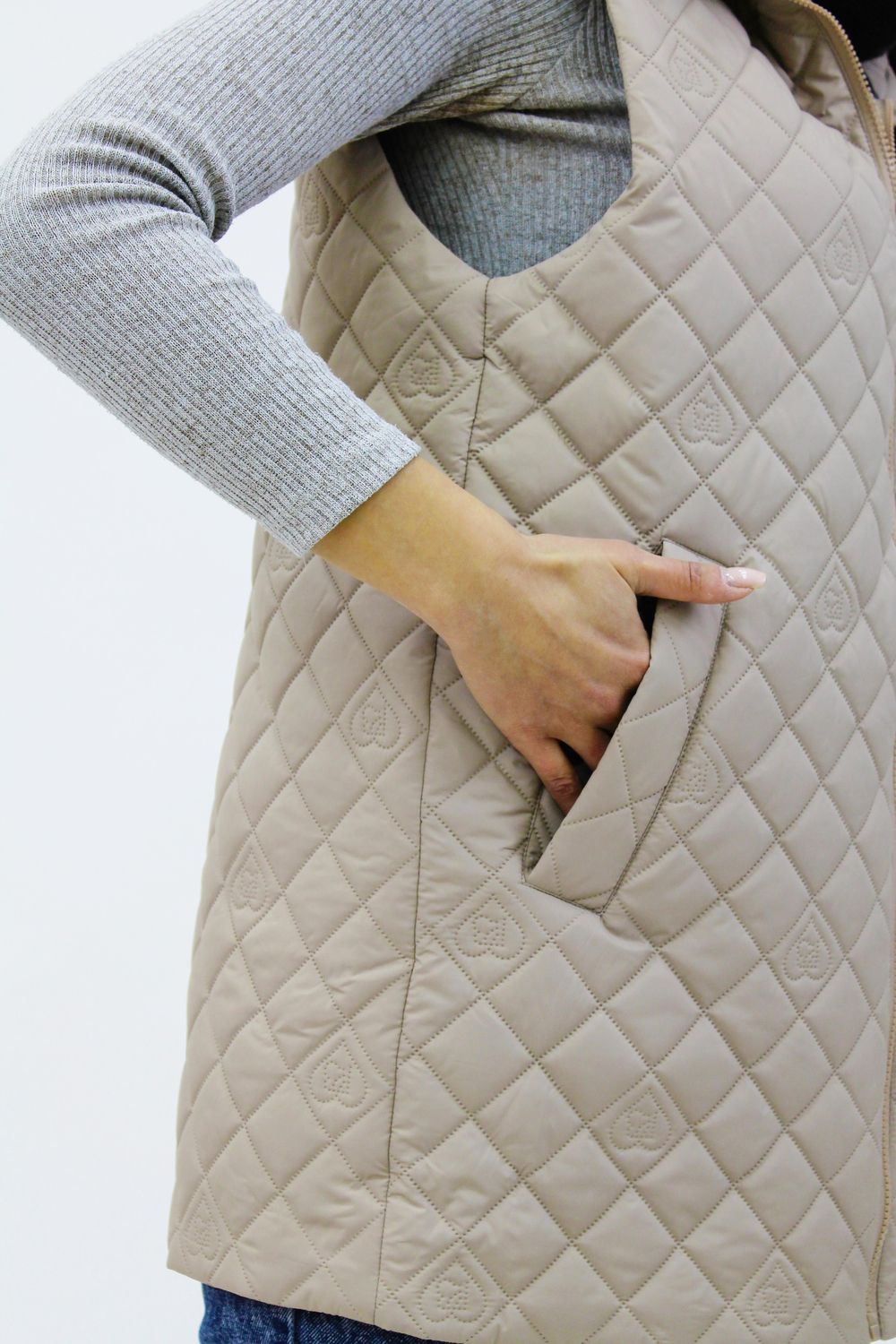 Демисезонный женский жилет Тренд весна осень 902 Ромб - бежевый