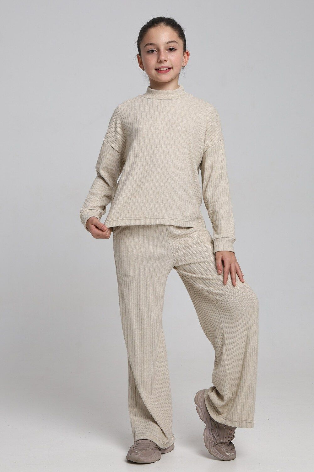 Классный детский костюм из нежной , плотной, теплой лапши ангоры. Водолазка джемпер с длинным рукавом ,брюки палаццо, с карманами.