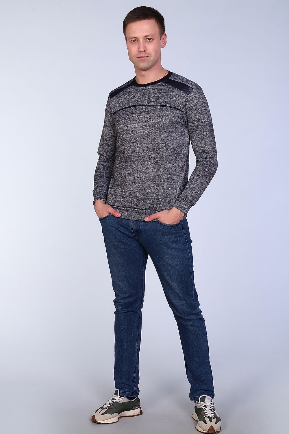 Модный и стильный мужской джемпер, длинный рукав на манжете. В плечевых швах вставки из эко-кожи. Округлый воротник, низ изделия также на манжете. Маломерит. Джемпер подходит для среднего и маленького роста. Практично и удобно.