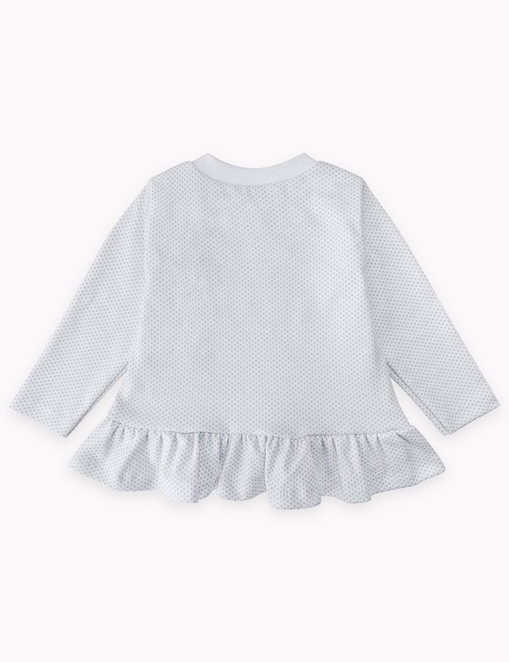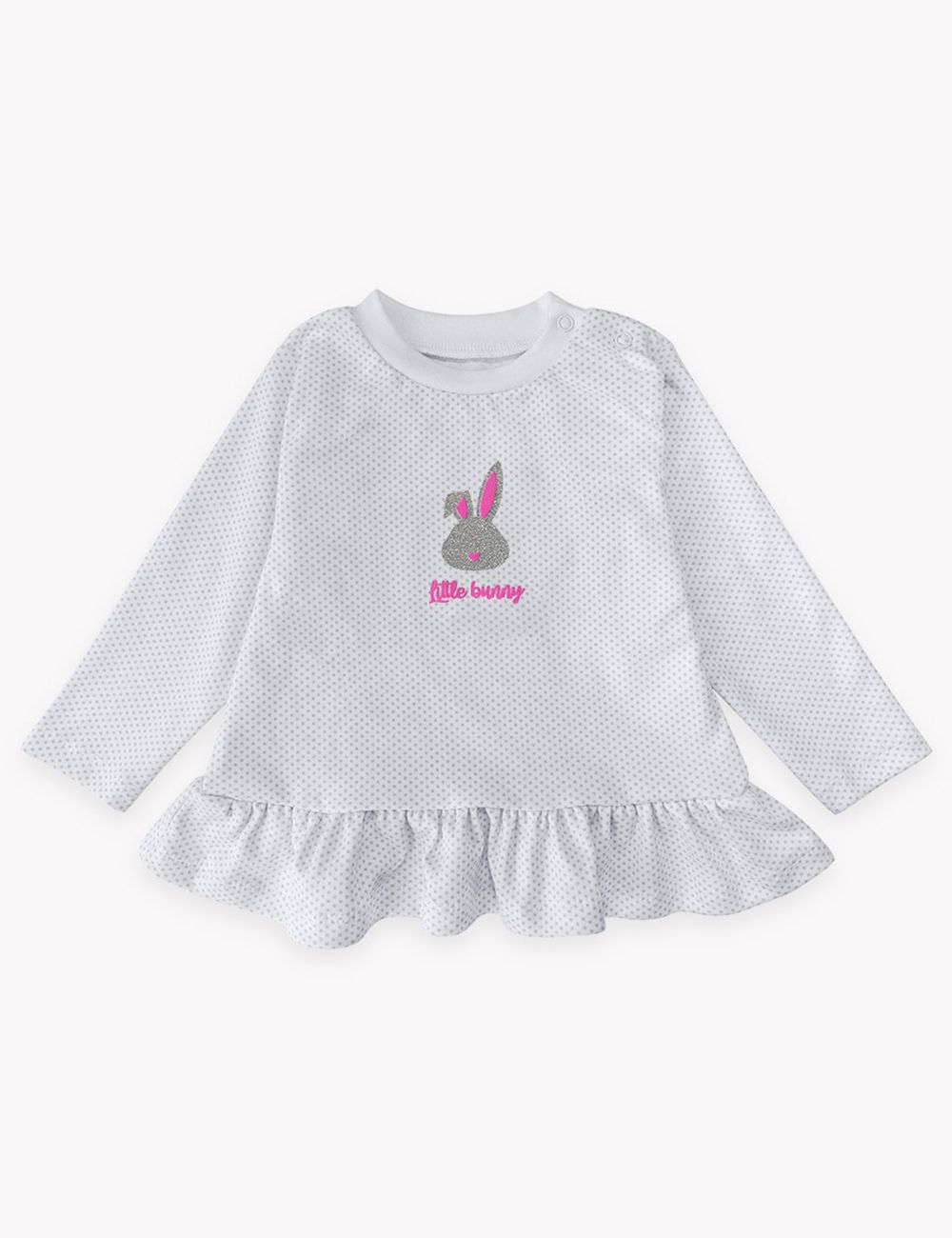 Джемпер из коллекции «Шайни» предназначен для девочек, в том числе и малышек, выполнен из интерлока (100% хлопок), материал средней плотности, нежный и эластичный, пропускает воздух и сохраняет тепло. Модель с длинным рукавом, с удобной застежкой на кнопках в плечевом шве, что позволяет легко переодевать малыша. Кнопки качественные, без труда застегиваются. Джемпер оформлен интересным принтом - шелкография на ткани. Модель будет идеально сочетаться со штанишками или лосинами из одноимённой коллекции.