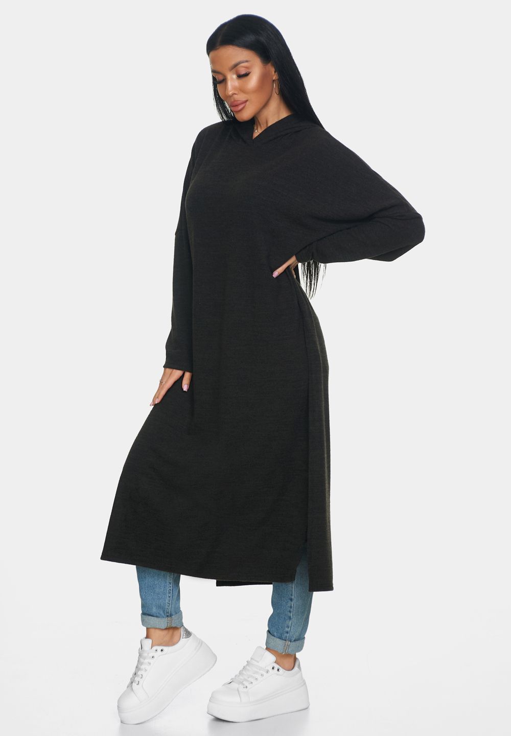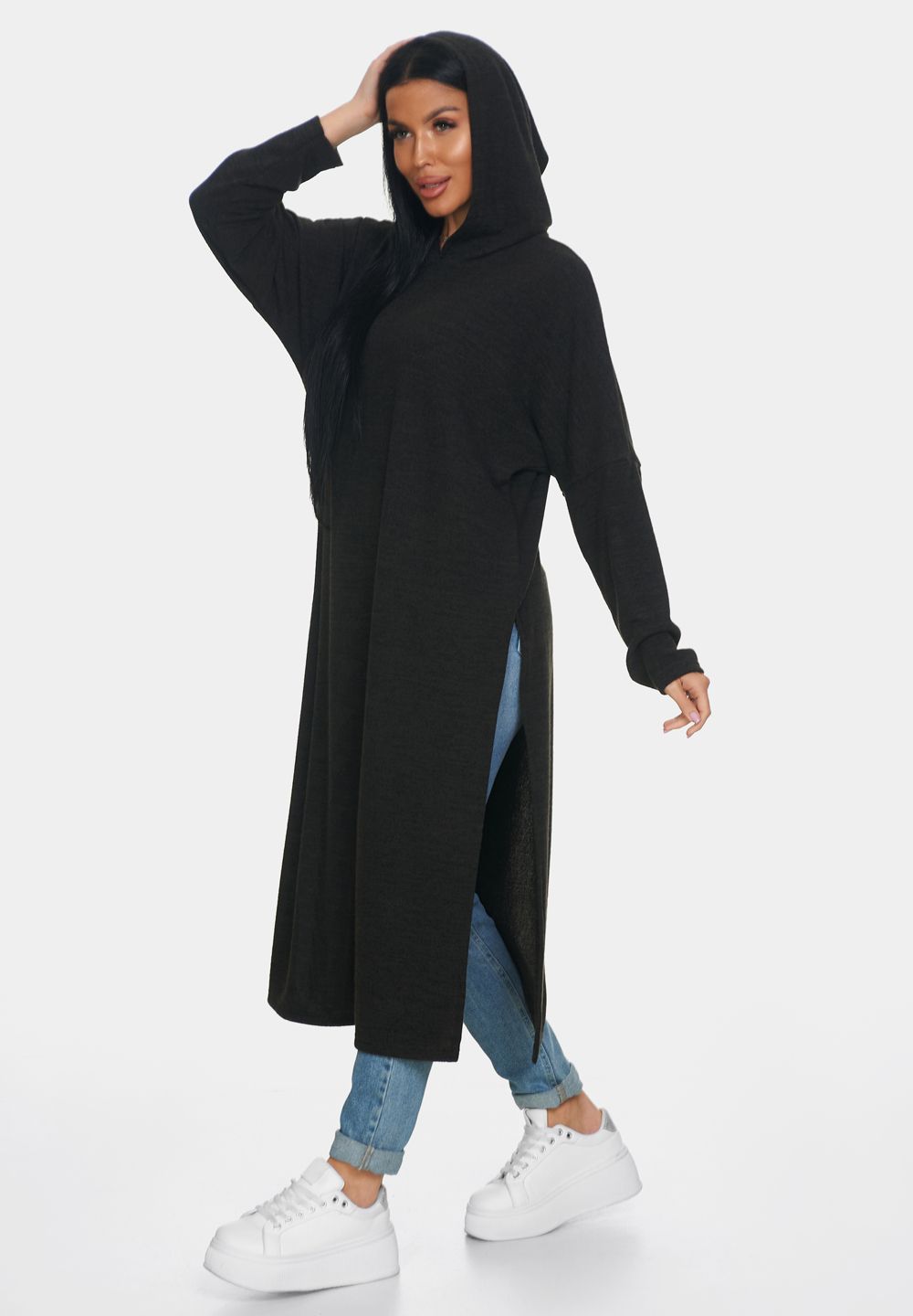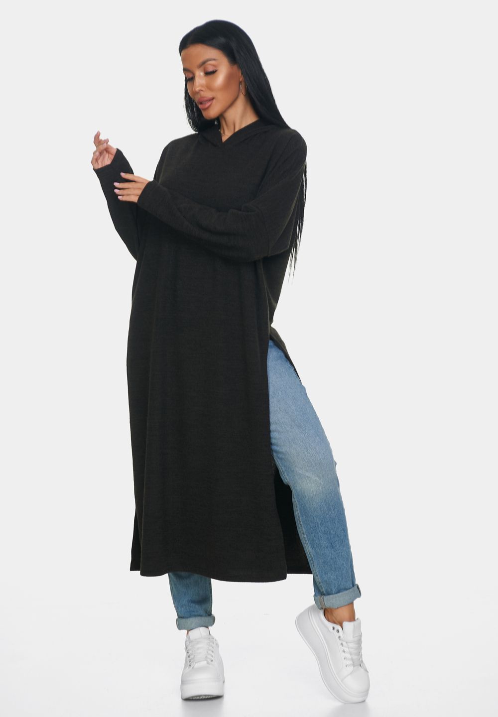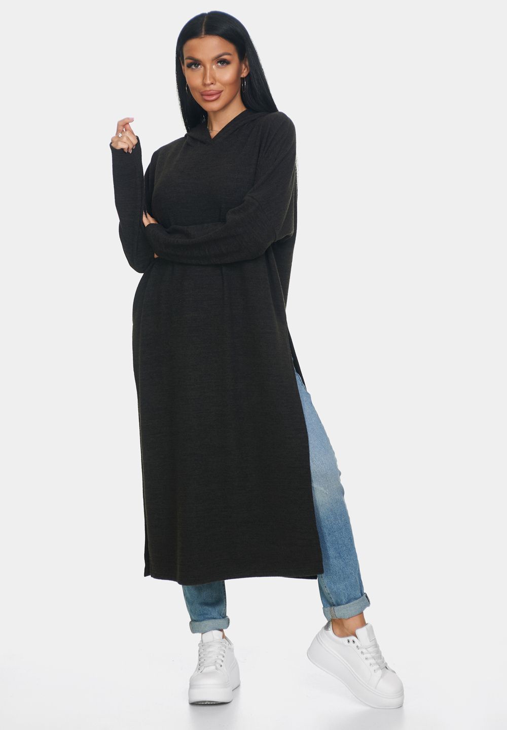 Длинная кофта женская из ангоры — это идеальная вещь для создания уютного и стильного образа. Кофта женская больших размеров отлично садится по фигуре и обеспечивает комфорт в носке благодаря мягкому и тёплому материалу, который приятно прилегает к коже. Свободный крой кофты в стиле оверсайз позволяет чувствовать себя свободно и уверенно, не ограничивая движений. Капюшон добавляет образу оригинальности и защищает от непогоды, делая джемпер женский больших размеров универсальным выбором для разных ситуаций. Разрезы по бокам придают модели динамичность и лёгкость, а также обеспечивают дополнительную вентиляцию в менее прохладный день.