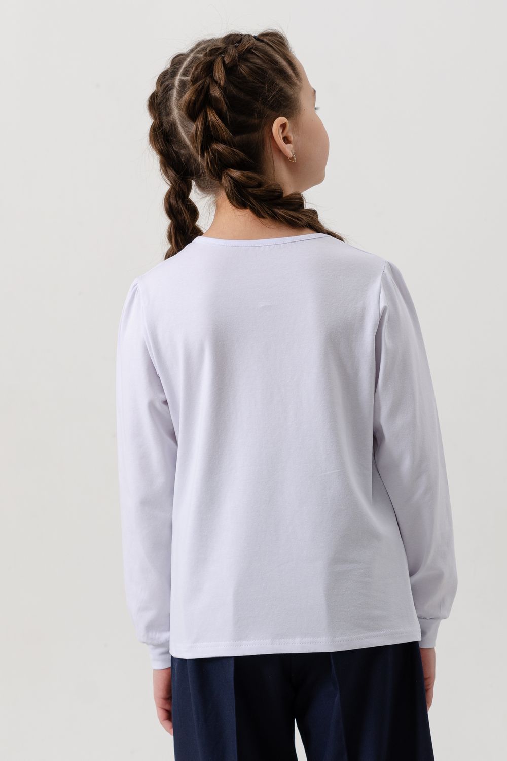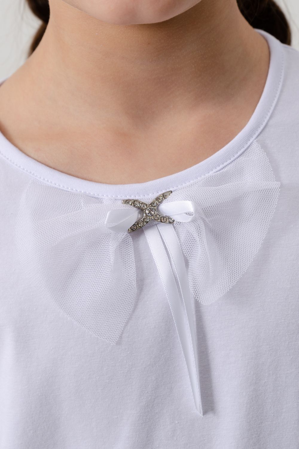 Блузка школьная для девочки с трикотажными длинными рукавами, круглым вырезом горловины, без застёжки, прилегающего силуэта, по центру переда настрочен бант из сетки, спереди прикреплен съёмный декоративный элемент, рукава на манжетах. Сшита из однотонного мягкого хлопкового трикотажного материала с добавлением в состав хлопка 92% и лайкры 8%. Школьная форма украсит и дополнит любой образ не только в школу, но и для повседневной носки, на день рождения, фотосессию и для особых случаев. Блузка отлично сидит по фигуре, движения в нем комфортные, позволяет выглядеть ребенку изящно. Хорошо смотрится в сочетании с юбками, сарафанами, брюками, со школьным костюмом, отлично сохраняют цвет и форму при активной носке и после многократных стирок. Используемый материал блузки мягкий и приятный телу, устойчив к износу, не садится, не образует катышек на поверхности, имеет эффектный внешний вид.